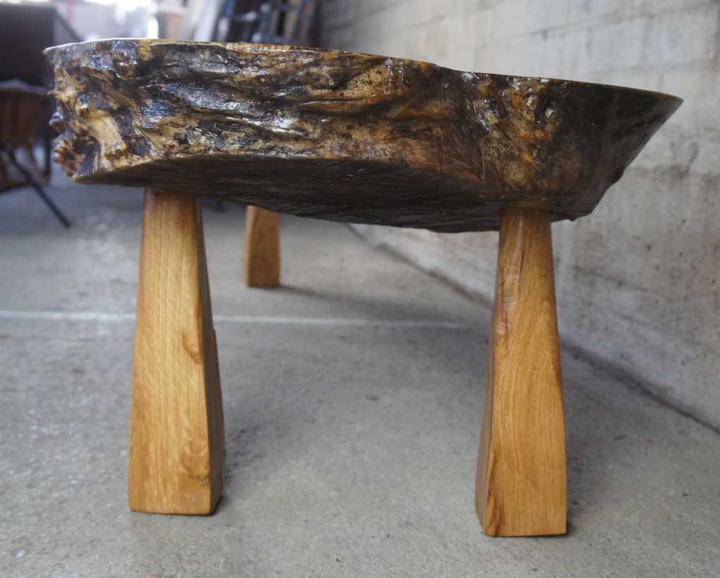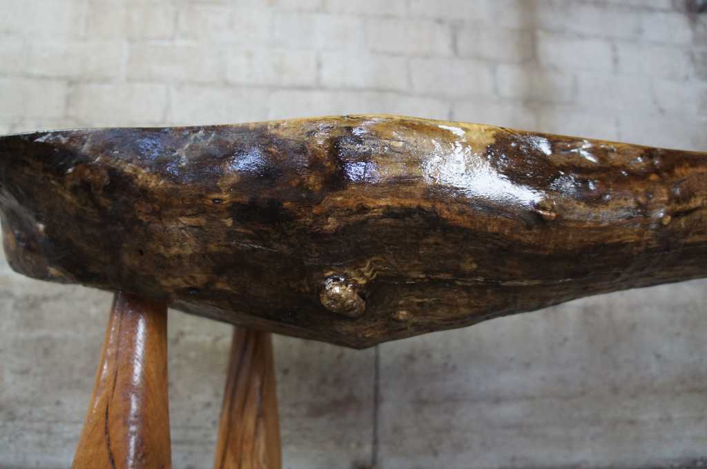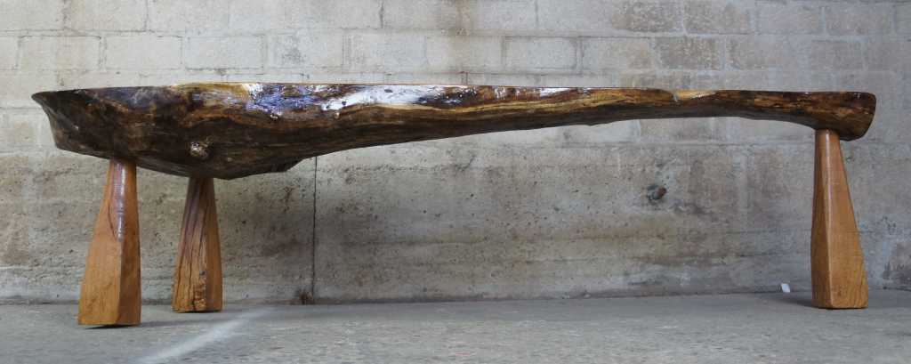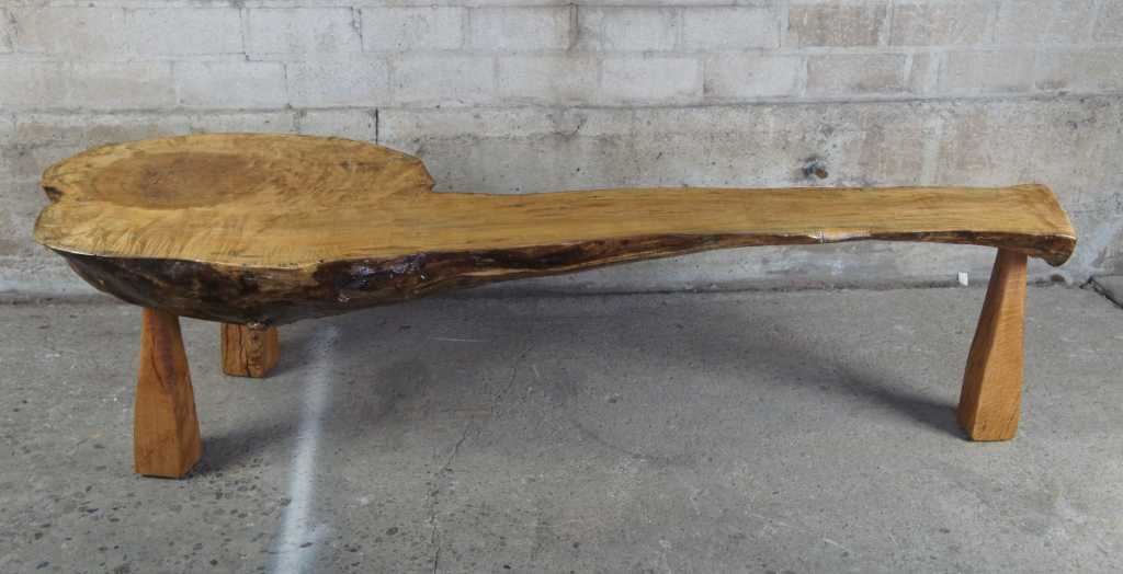 Impressive ambrosia maple slab table with arts and crafts feet. Handcrafted in Dayton Ohio by M. Baker in April 2020. May also be used as a bench.