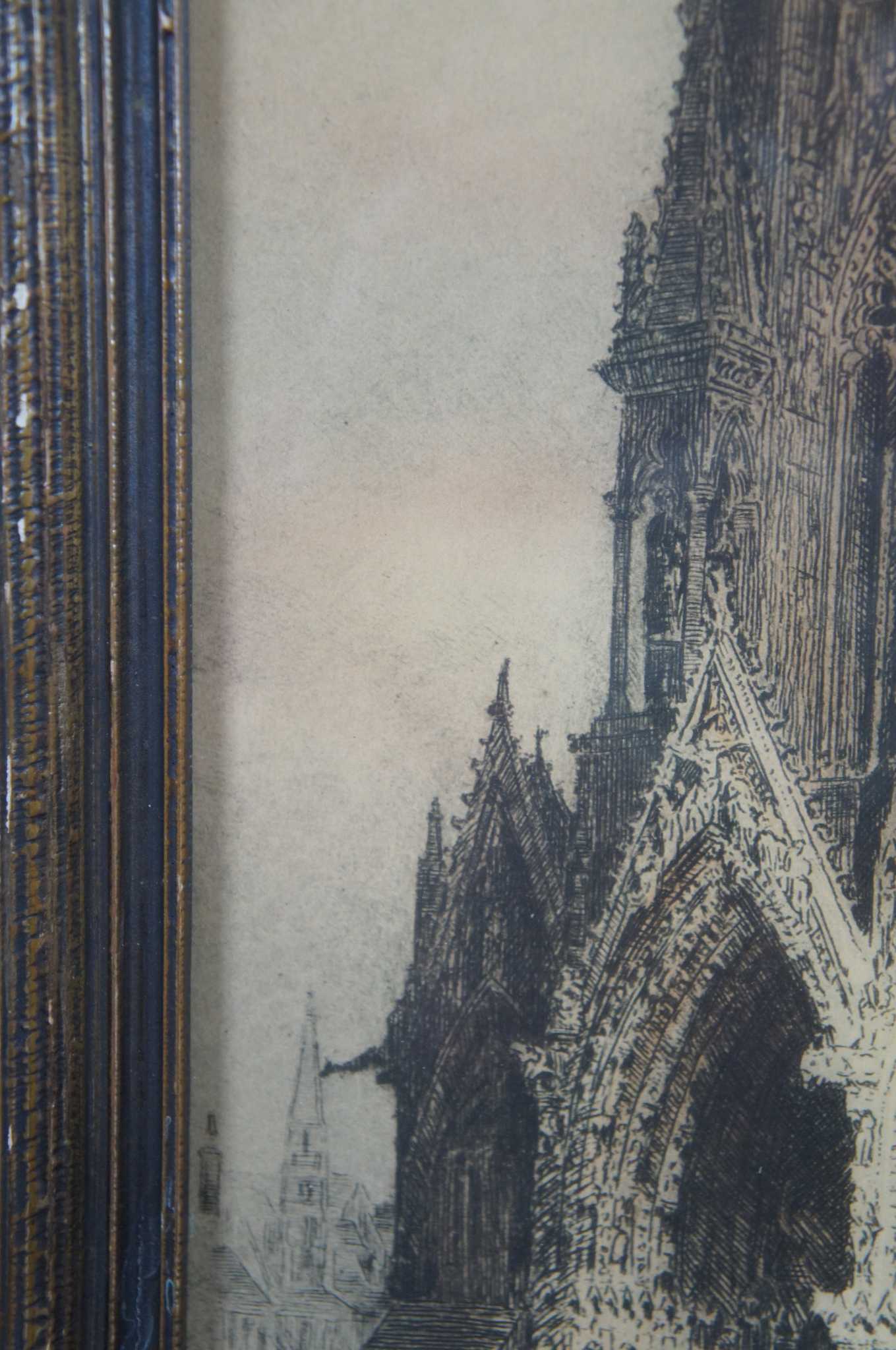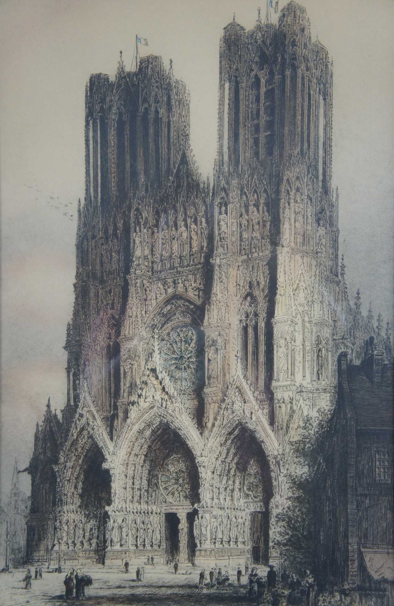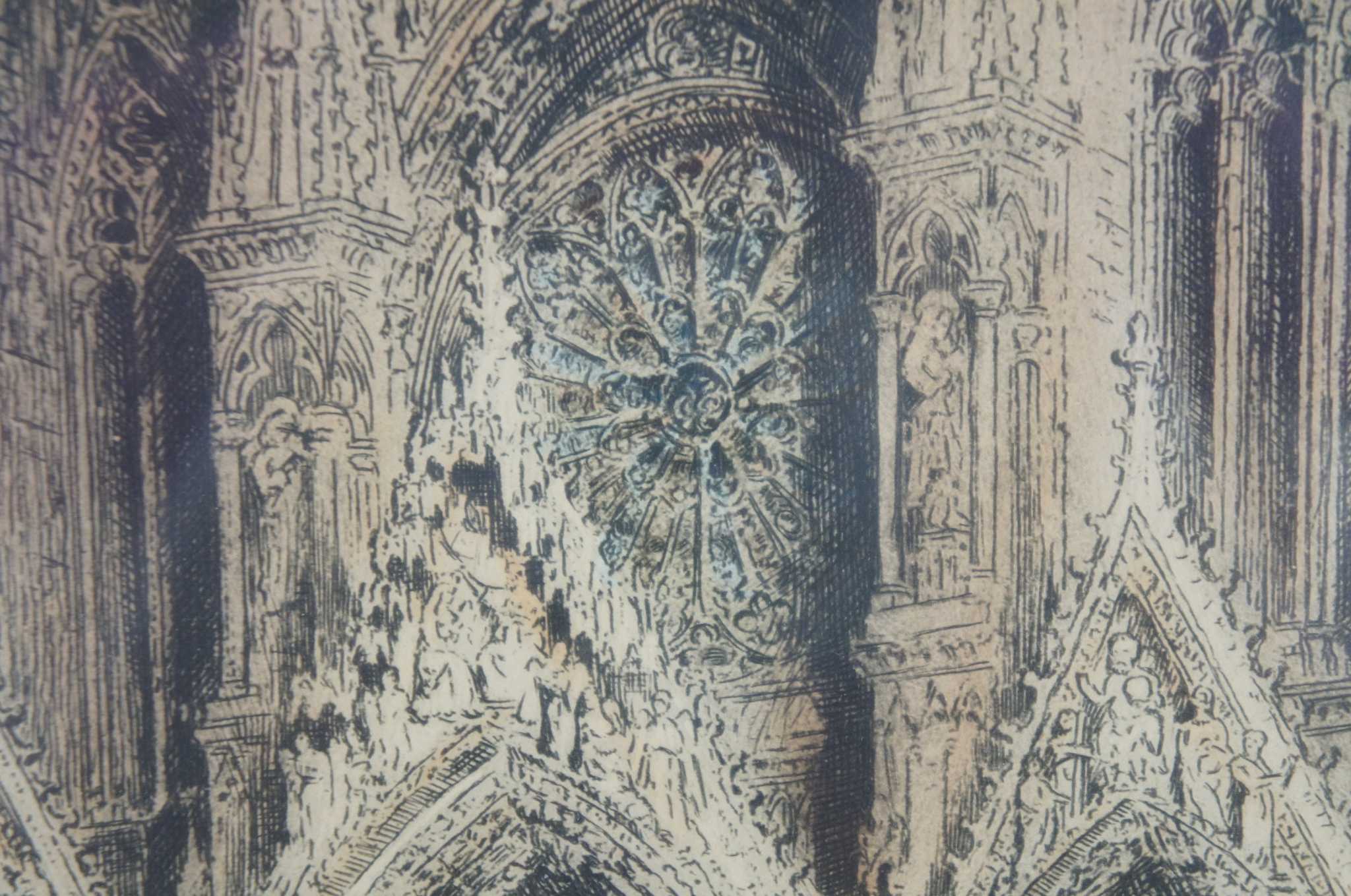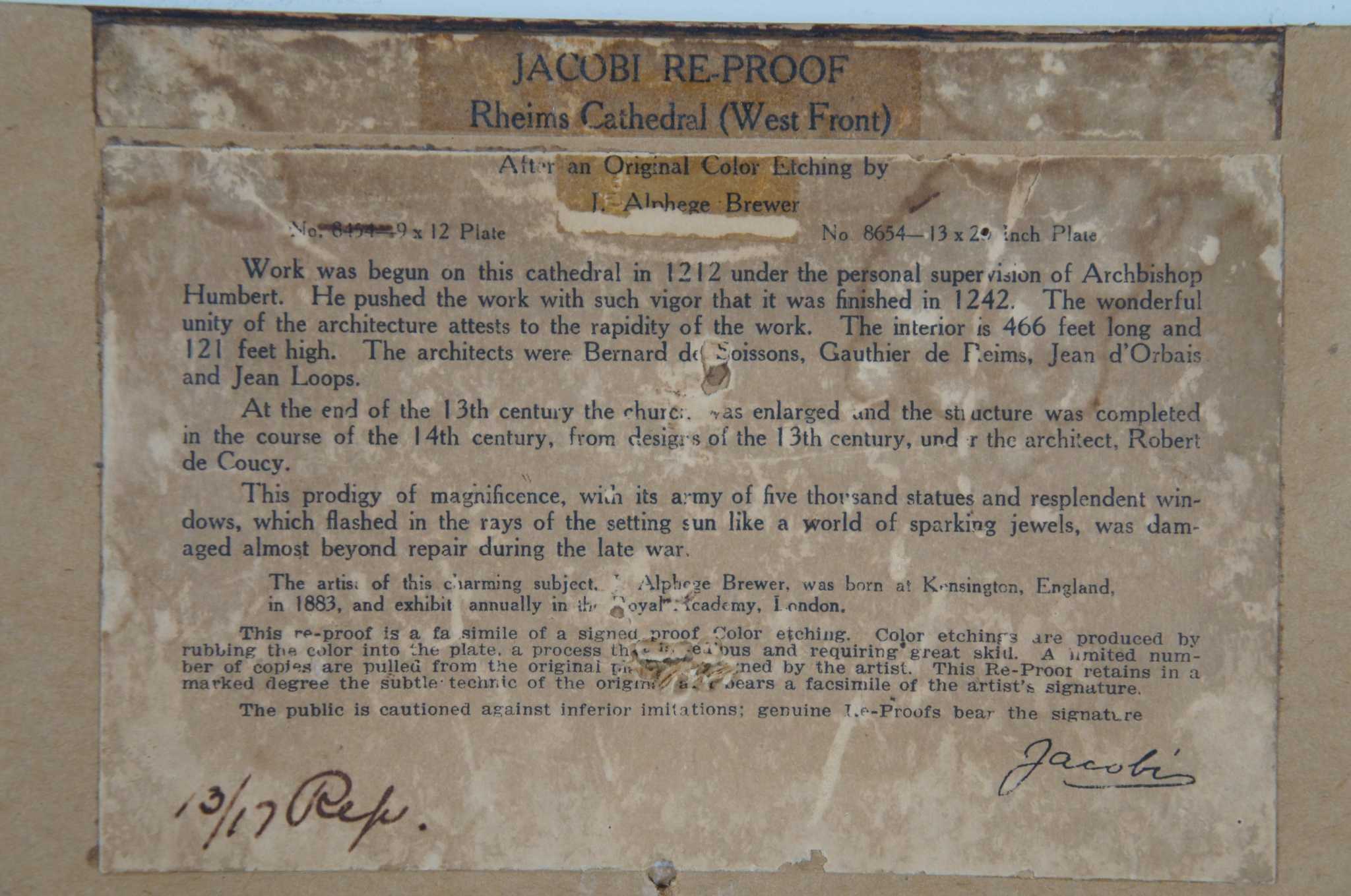 Rheims Cathedral 1920s Re-Proof Etching by Jacobi, after J. Alphege Brewer original etching.