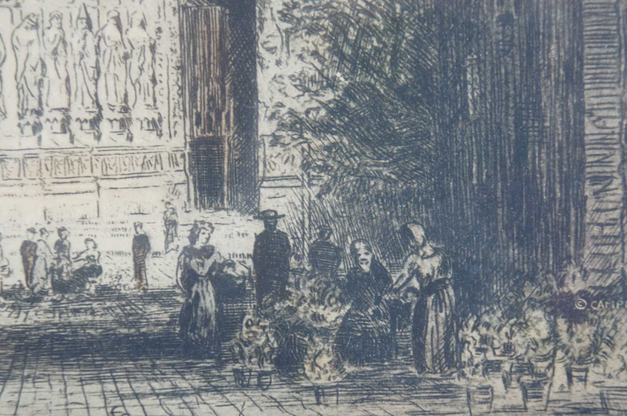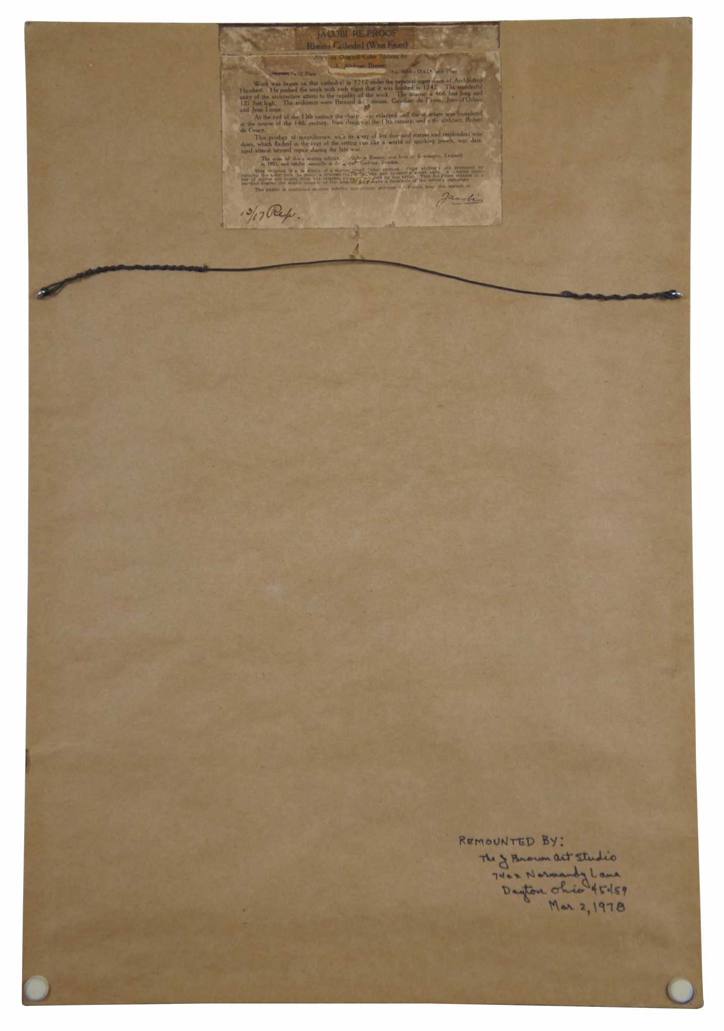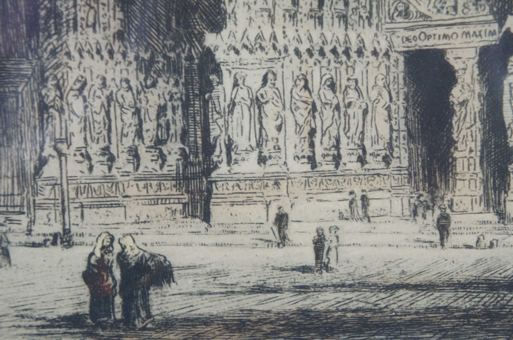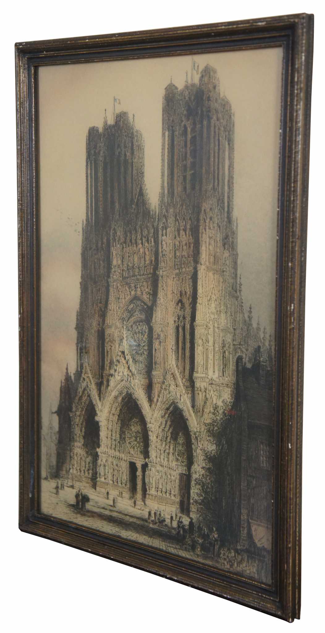 Rheims Cathedral 1920s Re-Proof Etching by Jacobi, after J. Alphege Brewer original etching.