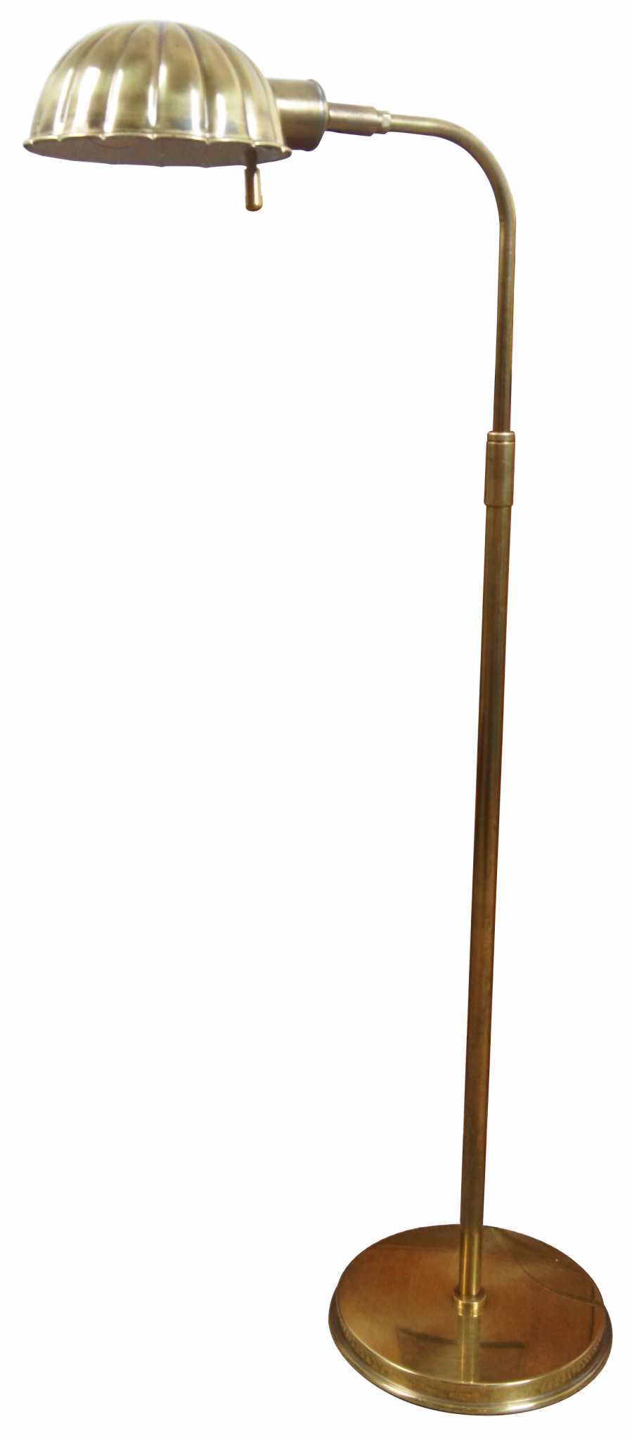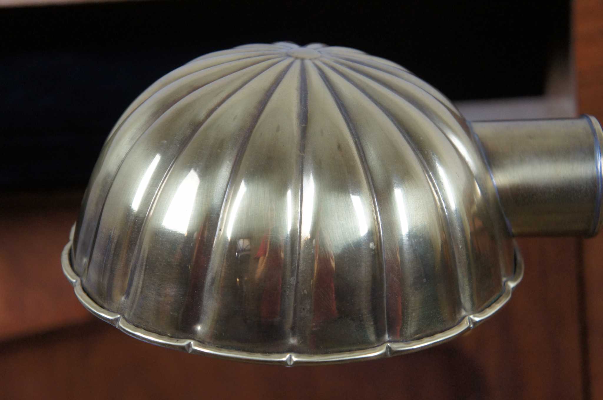 Mid century adjustable brass reading light with dimable scalloped shade.