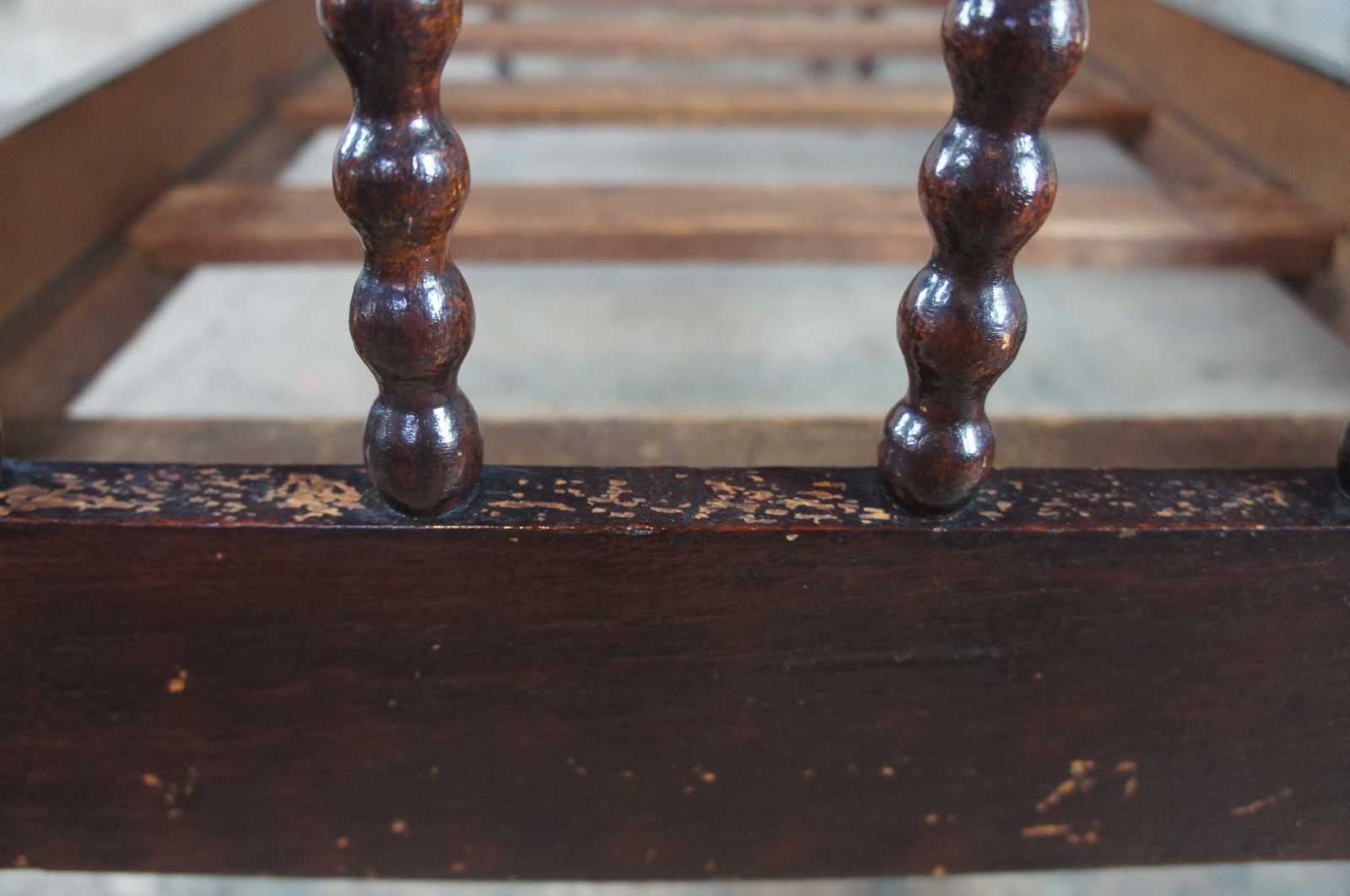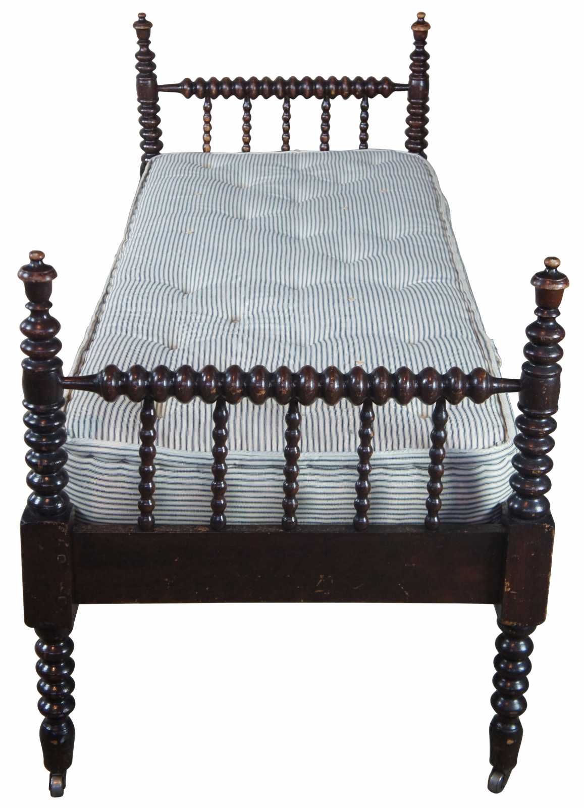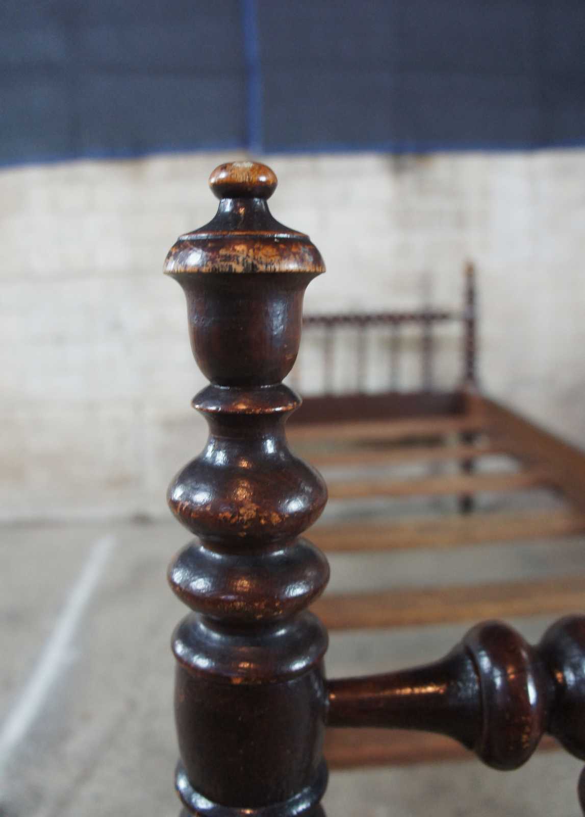 Circa 1850s early American style bed with spindled posts and trophy finials. Includes custom mattress.