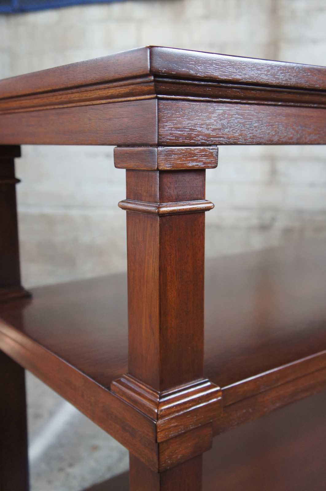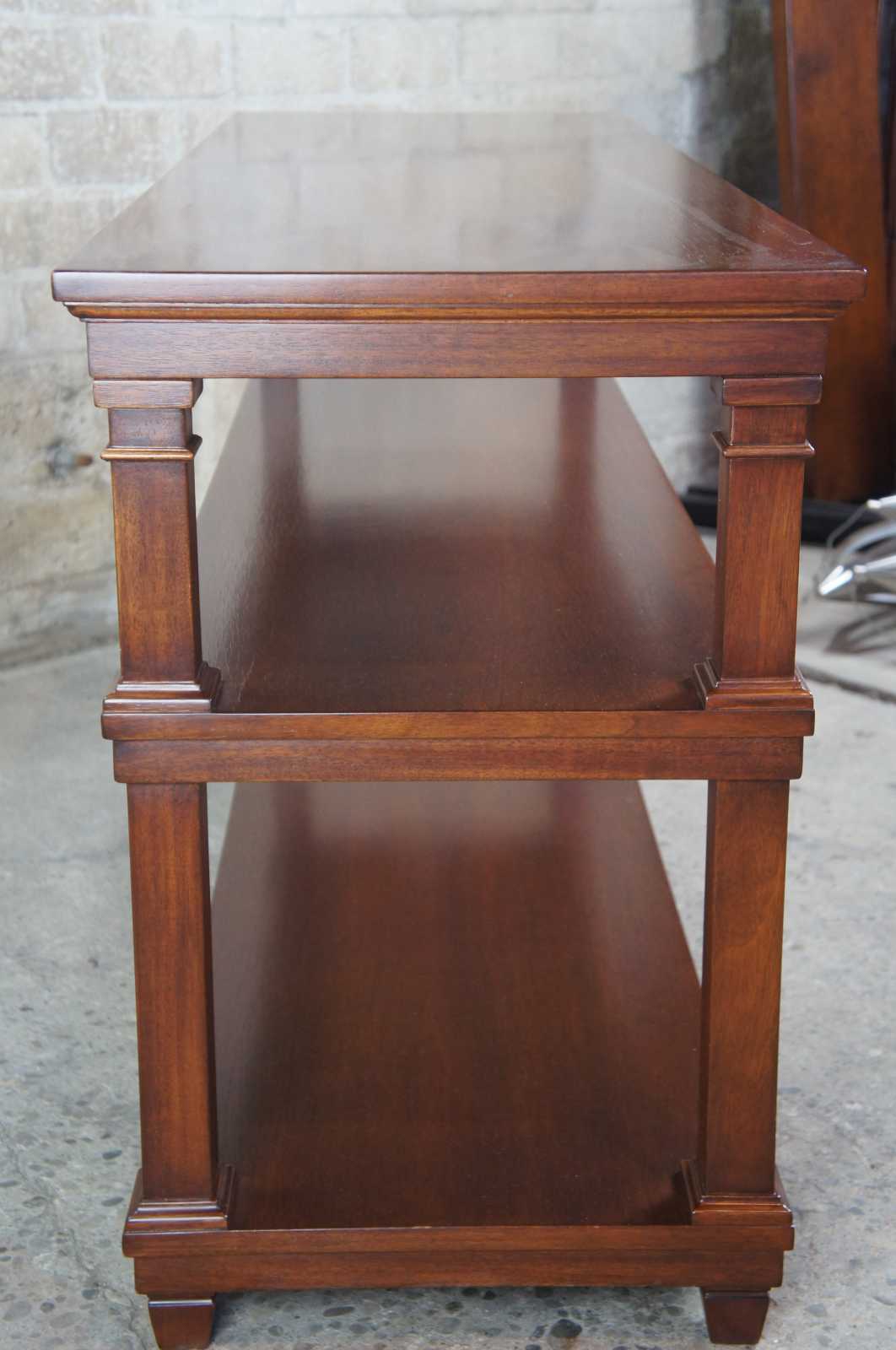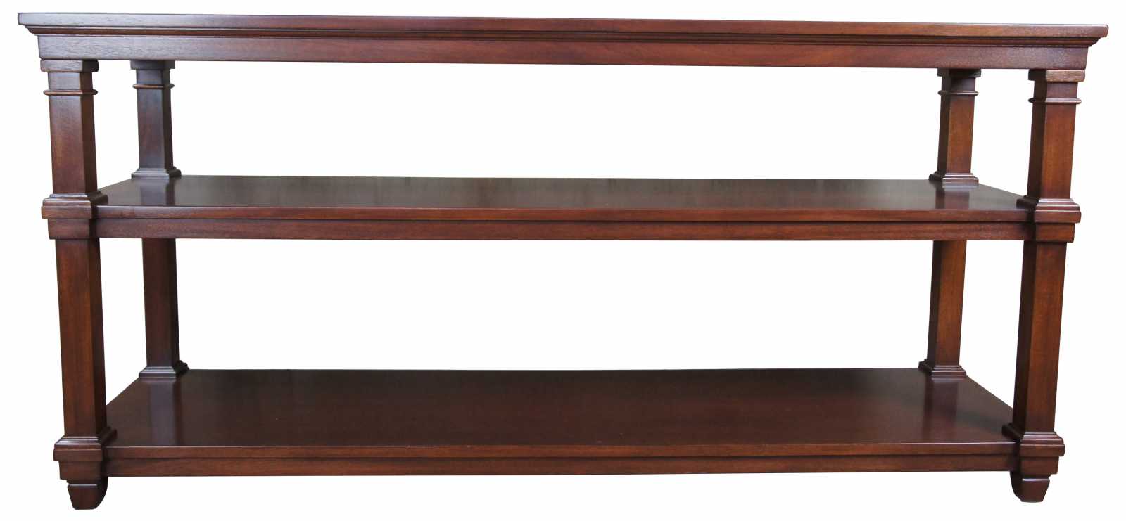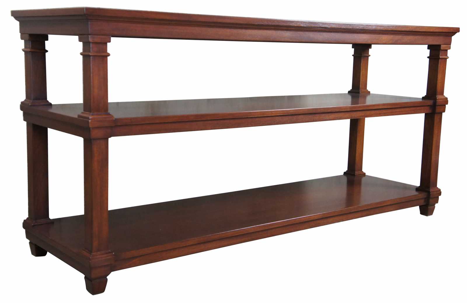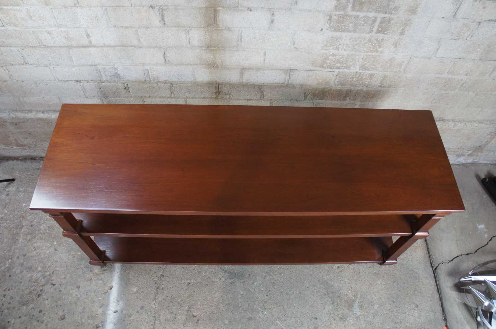 Vintage three (3) Tier console table. Made by Ronald Wampler in the 1980s, which in now R.E. Wampler and Sons, out of Bellebrook Ohio.