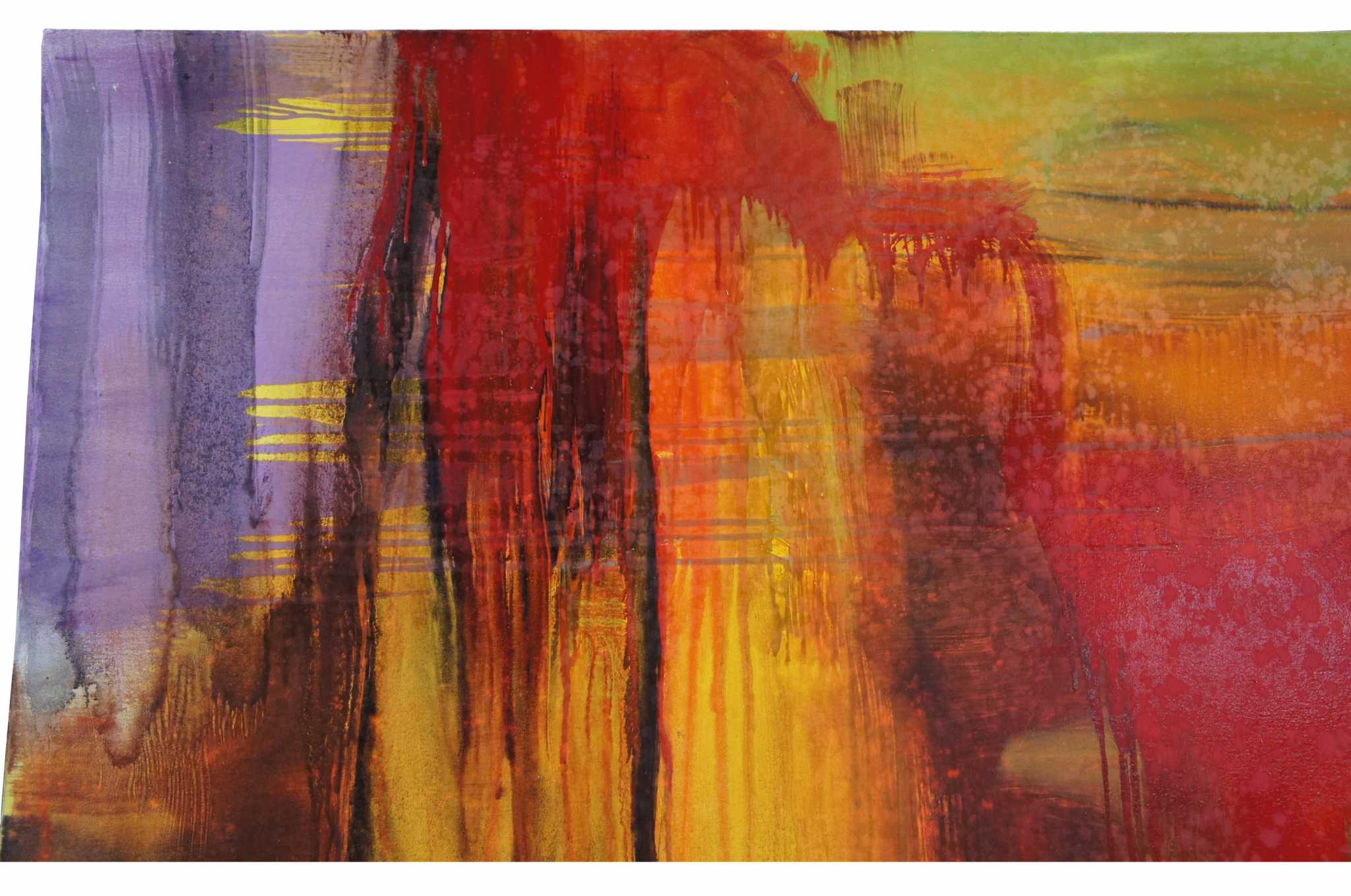 Evil of Flowers by Mary Jones. Painted in 1993 for the Tom Cugliani solo gallery exhibition in New York City. Mary Jones is a New York based artist. Her paintings and drawing are known for their striking use of color, their complex beauty and their understanding and reflection of our contemporary world. Her inspiration comes from the boldness of NYC street graffiti to Abstract Expressionism in step with the urban phenomena of layered time and experience. Her work has been shown internationally and is included in prominent collections worldwide. Her paintings find fragments of human form at the edge of recognition within an abstract process. Eschewing overt figuration, she makes reference to ancient, imaginary sculpture through a layered and intuitive approach. This fragmentation organizes the paintings as a gestalt, intended to evoke a connection with the earliest signifiers of our human imagination. Born in North Carolina and recieved a BFA and MFA from U of Boulder Colorado. Began painting in Los Angeles and moved to NYC in 1980s. In addition to her painting career, she also teaches at the School of Visual Arts in NYC and Rhode Island School of Design.