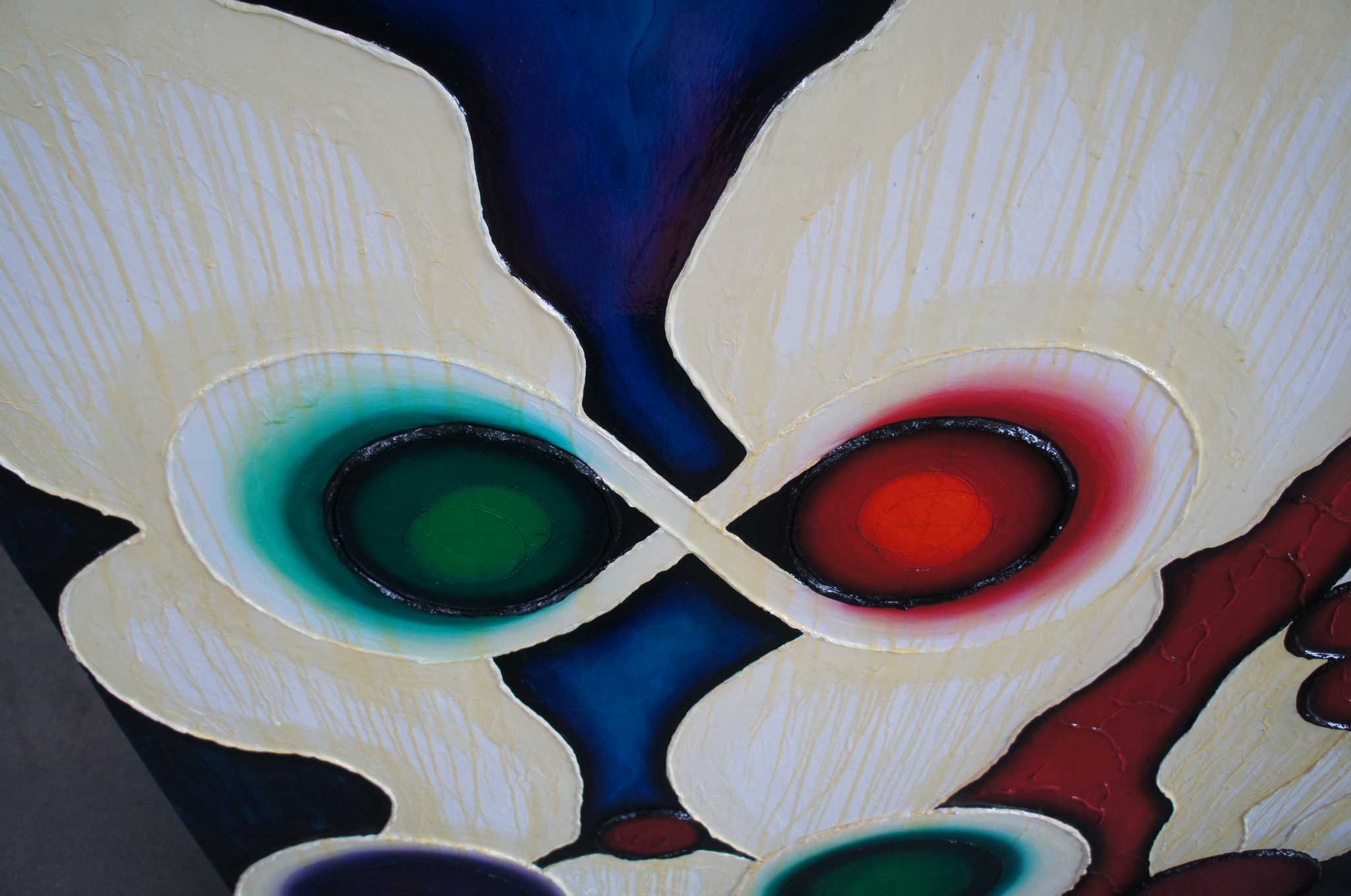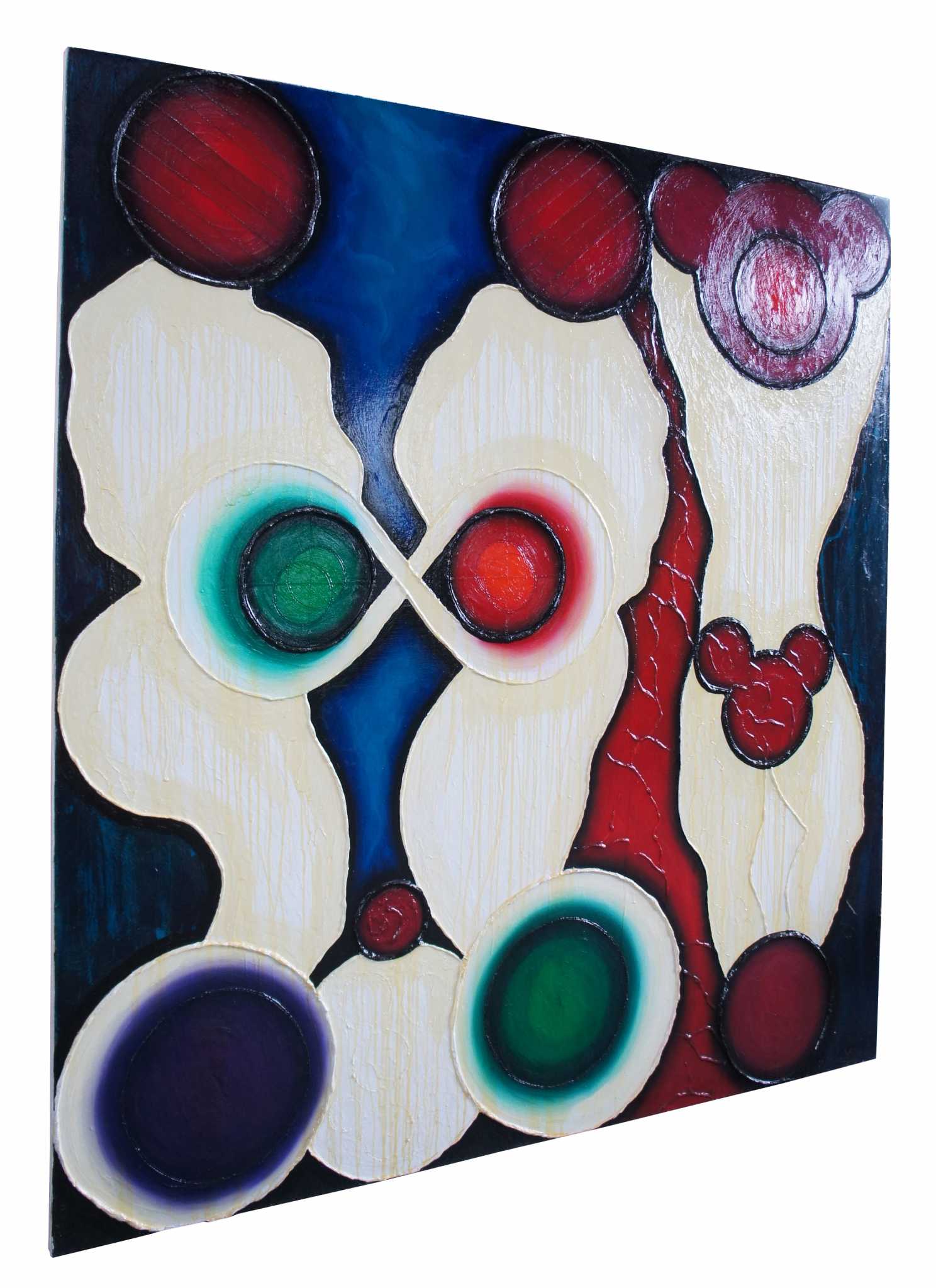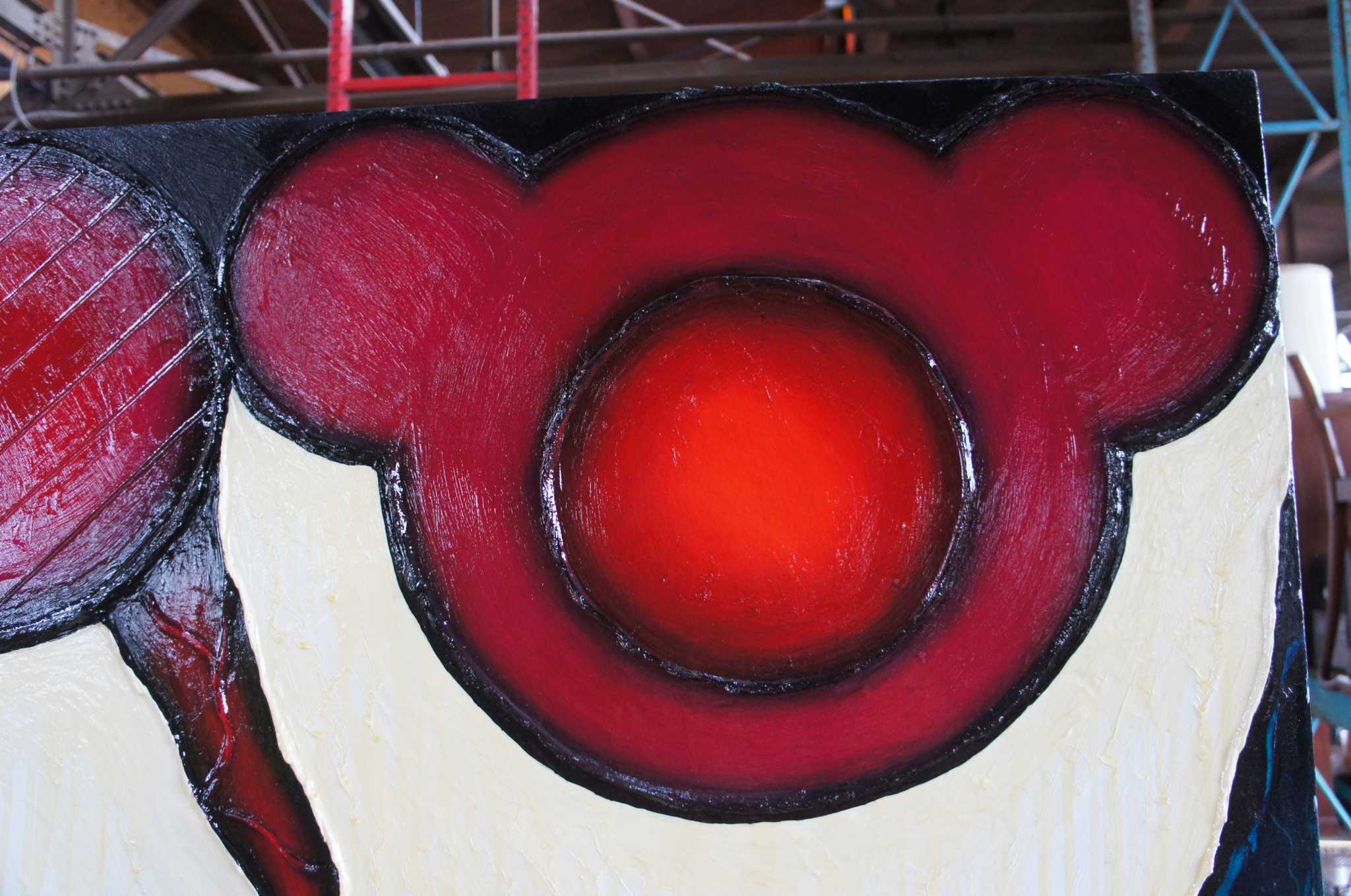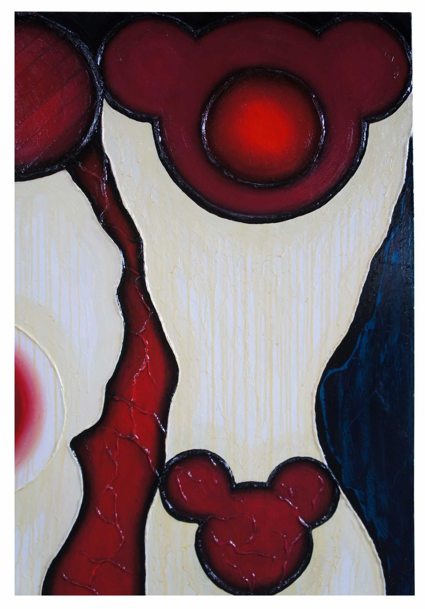 Matthew Weinstein's early works throughout the 1990s focused on gestural abstraction, cartoon drawings like Mickey Mouse, photographic-based imagery of ghostly images, and a fascination with blood, death, skulls and bones.