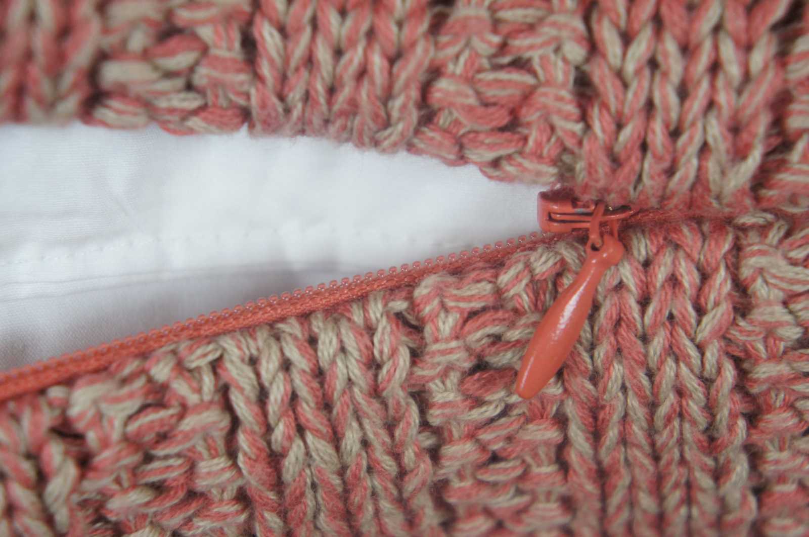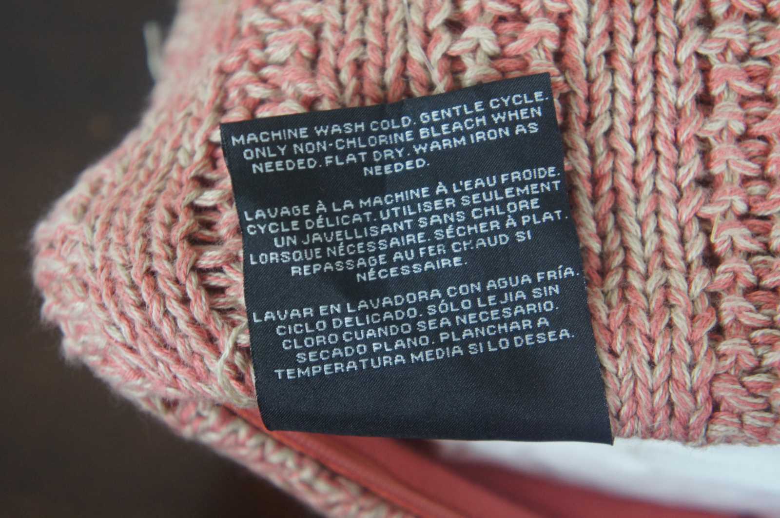 Four vintage Graydon Melange down filled rib-knit throw pillows by Ralph Lauren. Color: Dune & Nantucket Red