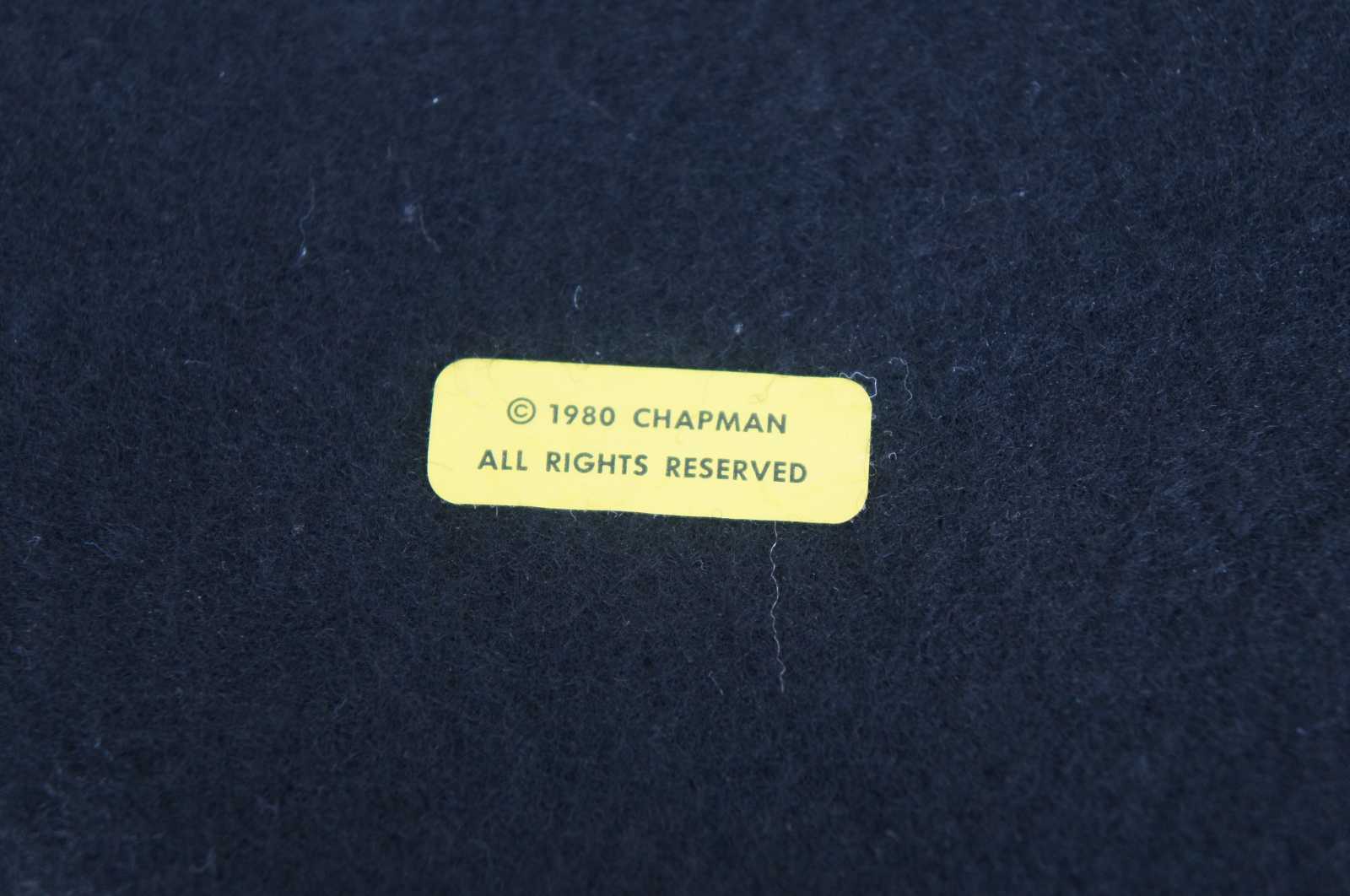 Chapman "Bun" hurricane lantern or candle holder. Features heavy brass base and top with hand blown 10" glass hurricane between. Made in 1980, retired.
