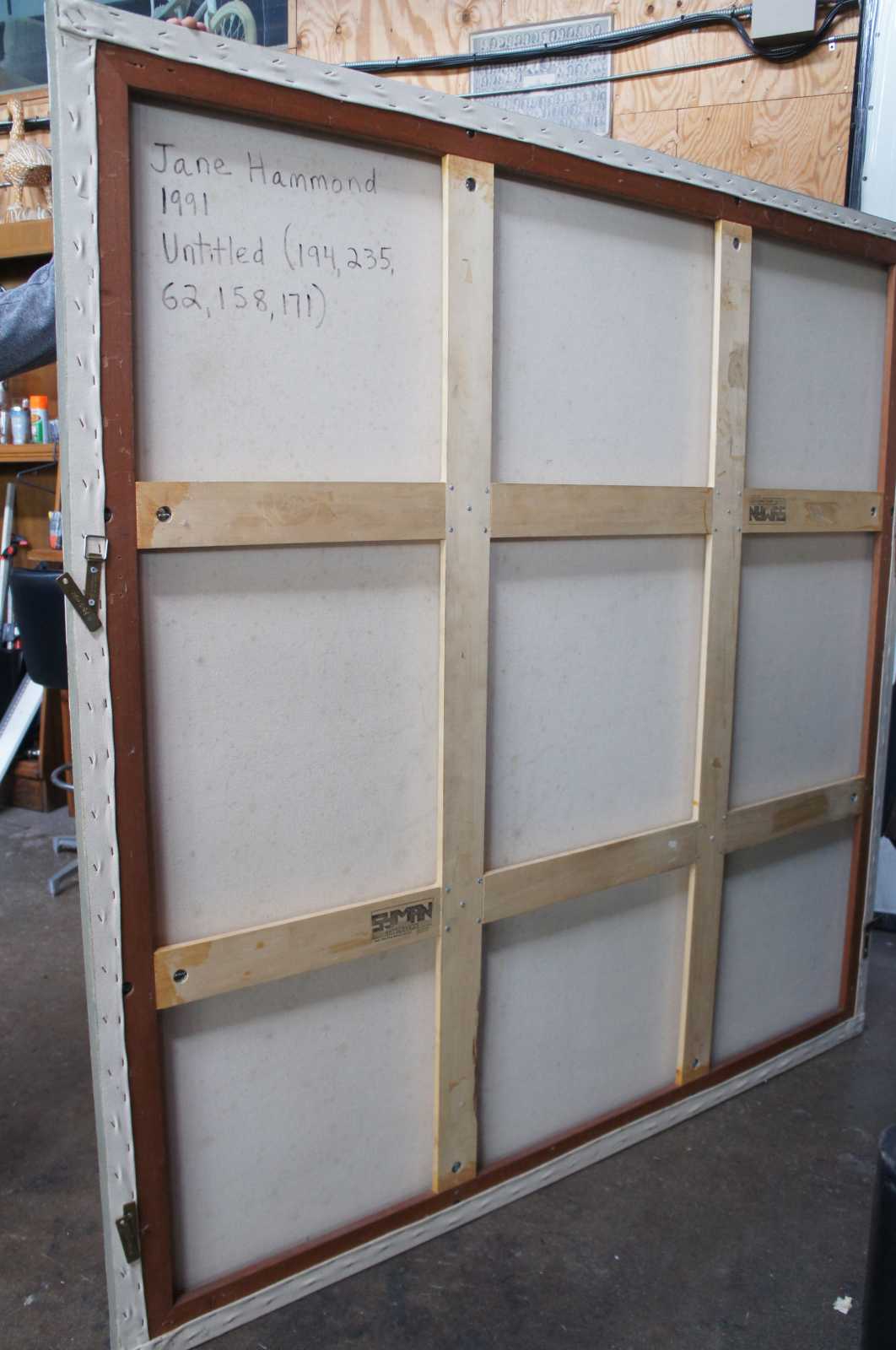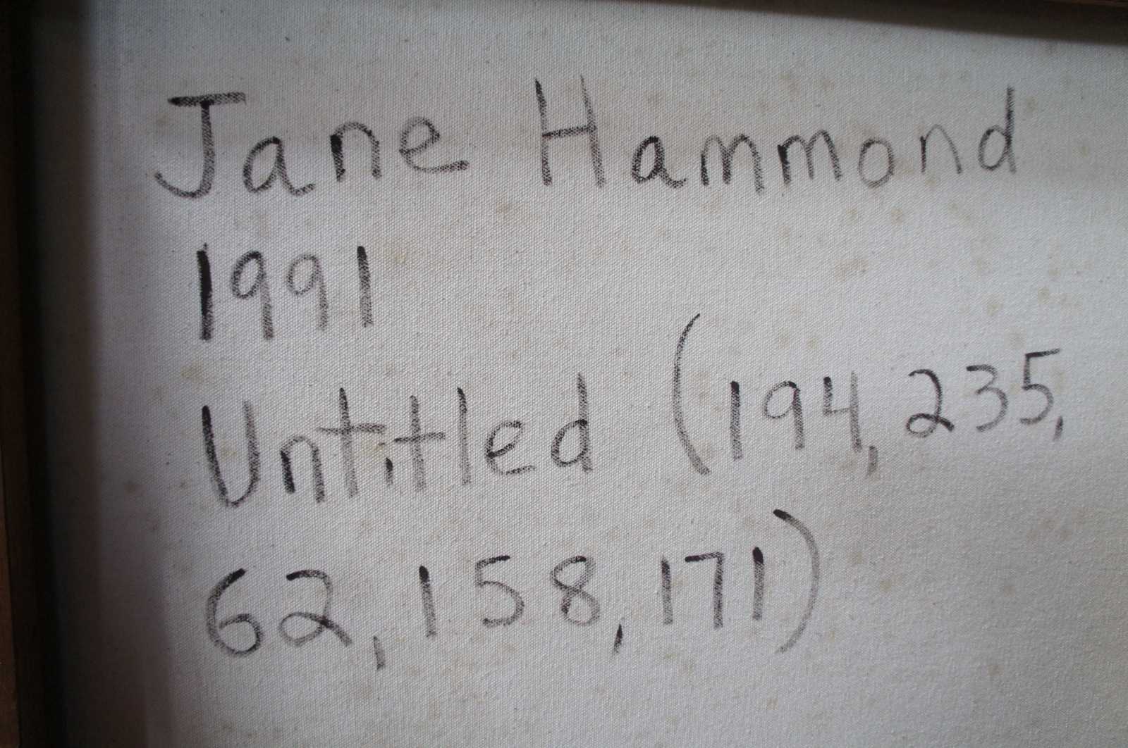 Jane Hammond is an accomplished painter, sculptor, and printmaker living and working in New York. Her work typically includes images pulled from a wide range of sources, including illustrations for children’s books, technical manuals, and esoteric tomes. Hammond has acknowledged that text and literary elements are important to her work and she has previously collaborated with poets for titles and for source material. Poet John Ashbery devised titles for a series of works made in 1993 and ’94. In 2004, she collaborated with poet Raphael Rubinstein for a sculpture at the Whitney Museum of American Art, called Fallen. Displayed as a field of autumnal leaves spread across a low plinth, the work is composed of thousands of handmade leaves printed by Hammond, each inscribed with the name of a soldier killed in the Iraq War.