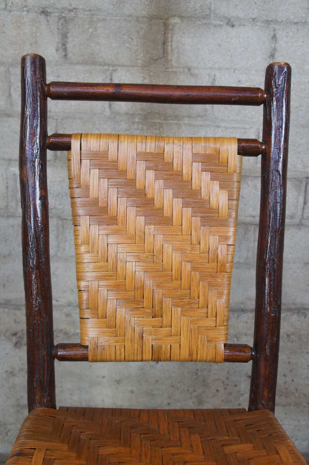 Pre 1930s side chair by The Rustic Hickory Furniture Company. Features a primitve log and rattan style. The Rustic Hickory Furniture Company was founded in 1902 in Laporte, Indiana.