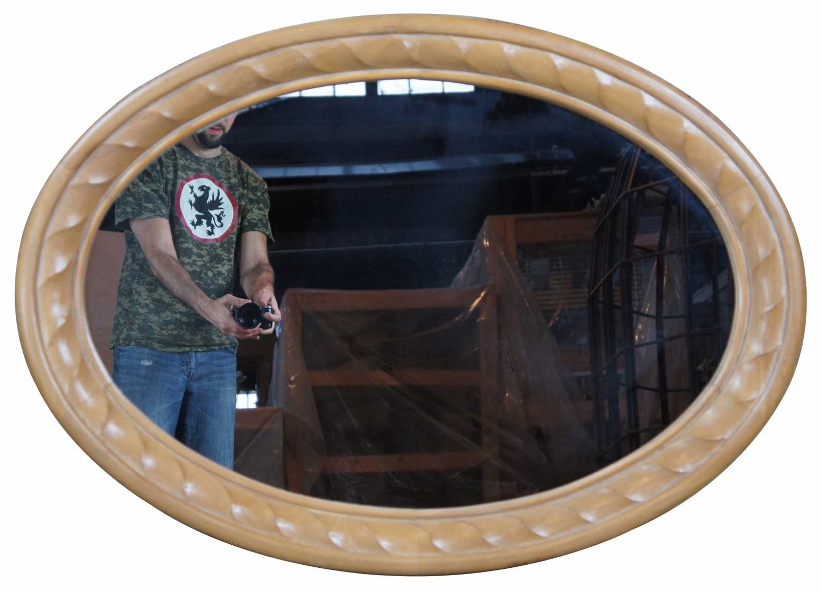 Saratoga Collection Natural Oak Oval Vanity Wall Mirror Braided Rope Design 42