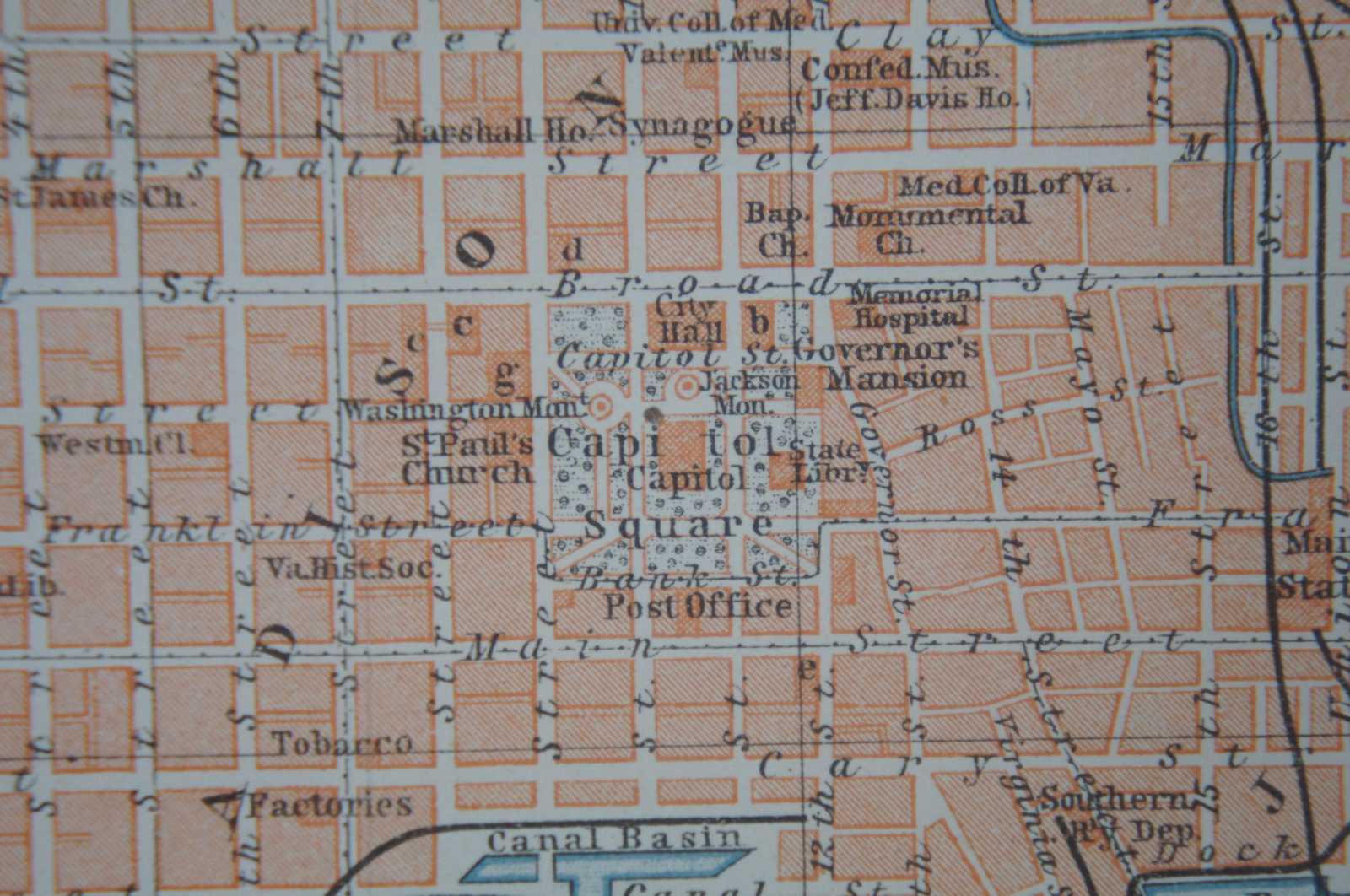 A fun early guide map of the city. Issued in an early ""Baedeker's"" travel guide. Printed by Wagner & Debes Geography establishment.