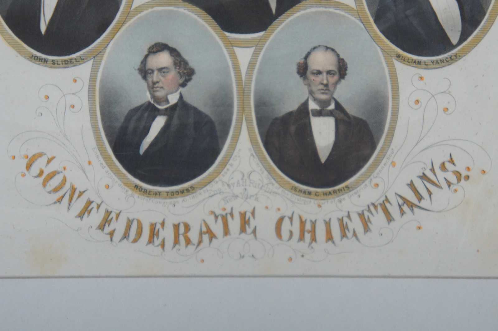 Antique Confederate Chieftans Civil War Engraving by Alexander Hay Ritchie 1822-1895; Head-and-shoulders portraits, in ovals, of Judah P. Benjamin, Henry A. Wise, R. Barnwell Rhett, Alexander H. Stephens, James M. Mason, Jefferson Davis, John B. Floyd, John Slidell, William L. Yancey, Robert Toombs, and Isham C. Harris. Copywrite O.D. Case & Co.