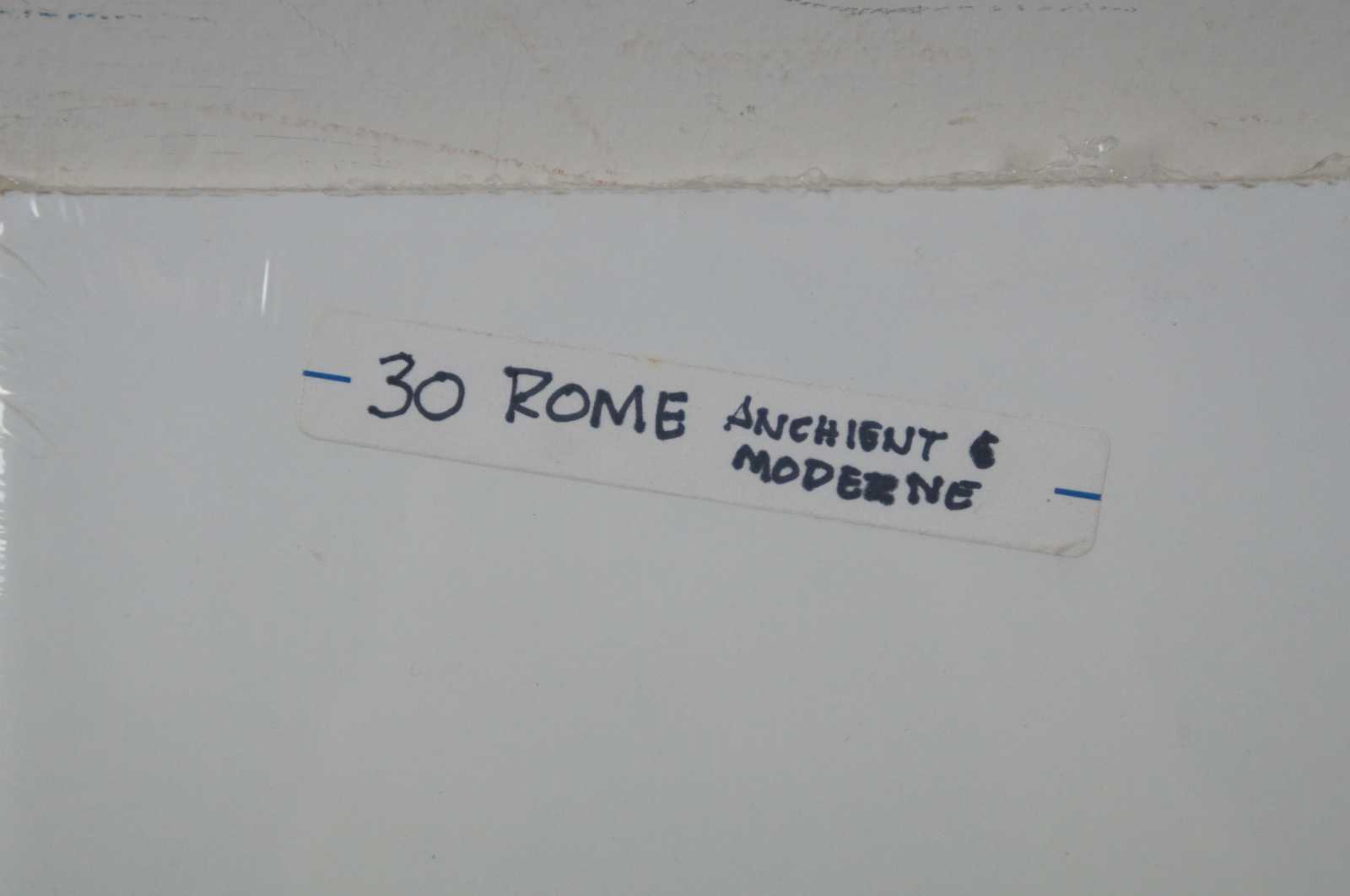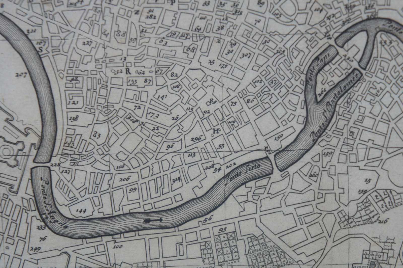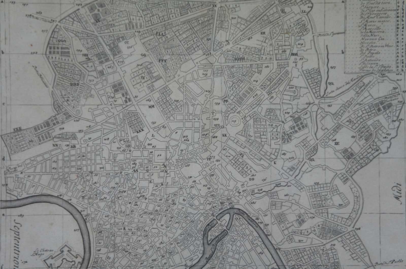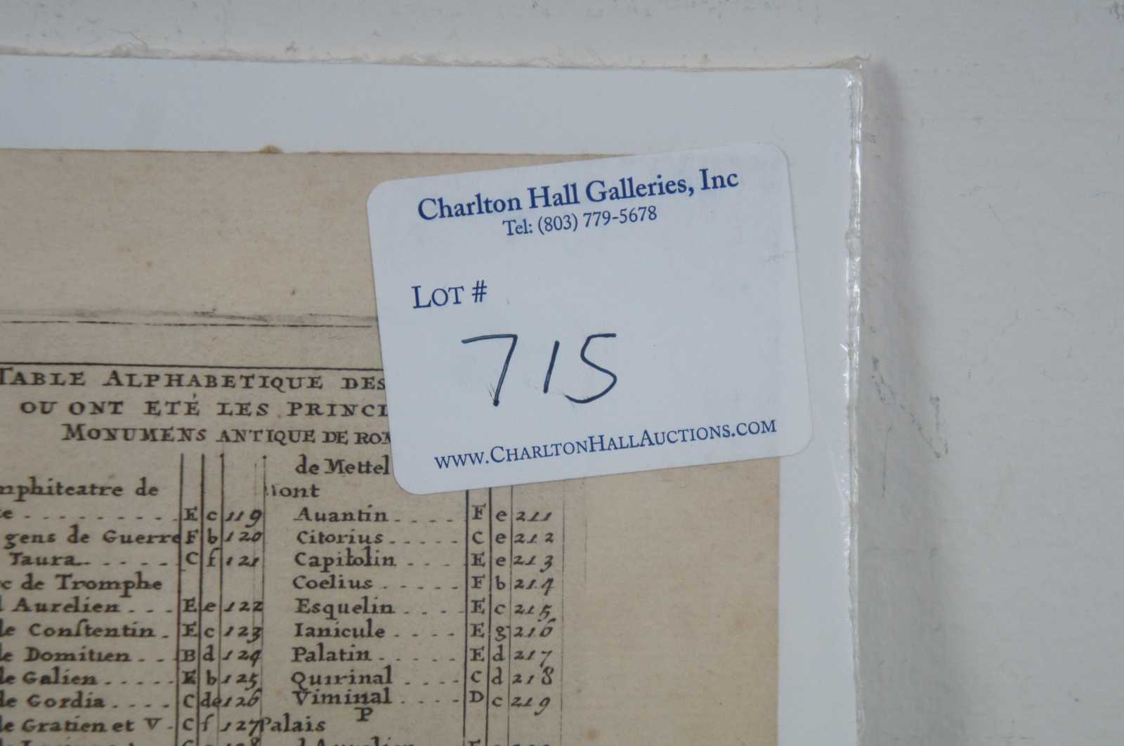Antique print, titled: 'Rome Ancienne et Moderne.' - This handsome plan of Rome shows the streets, parks, major buildings and the fortifications and ramparts in the southern part of the city below the river. Numerous tables keyed to the map name hundreds of palaces, colleges, gardens, ancient ruins and monuments and other important buildings. Eighteen formal gardens are listed. Engraving on hand laid paper. Description: Atlas Historique.' (Historic Atlas.), Published by Zacharie Chatelain, Amsterdam. The atlas was published in seven volumes between 1705 and 1720, with a second edition appearing in 1732. The maps were accompanied by information pertaining to cosmography, geography, history, chronology, genealogy, topography, heraldry, and costumes of the world. The maps in the Atlas Historique were mainly based on those of the French cartographer, Guillaume De L'Isle, but were presented by the Chatelains in an encyclopaedic form.