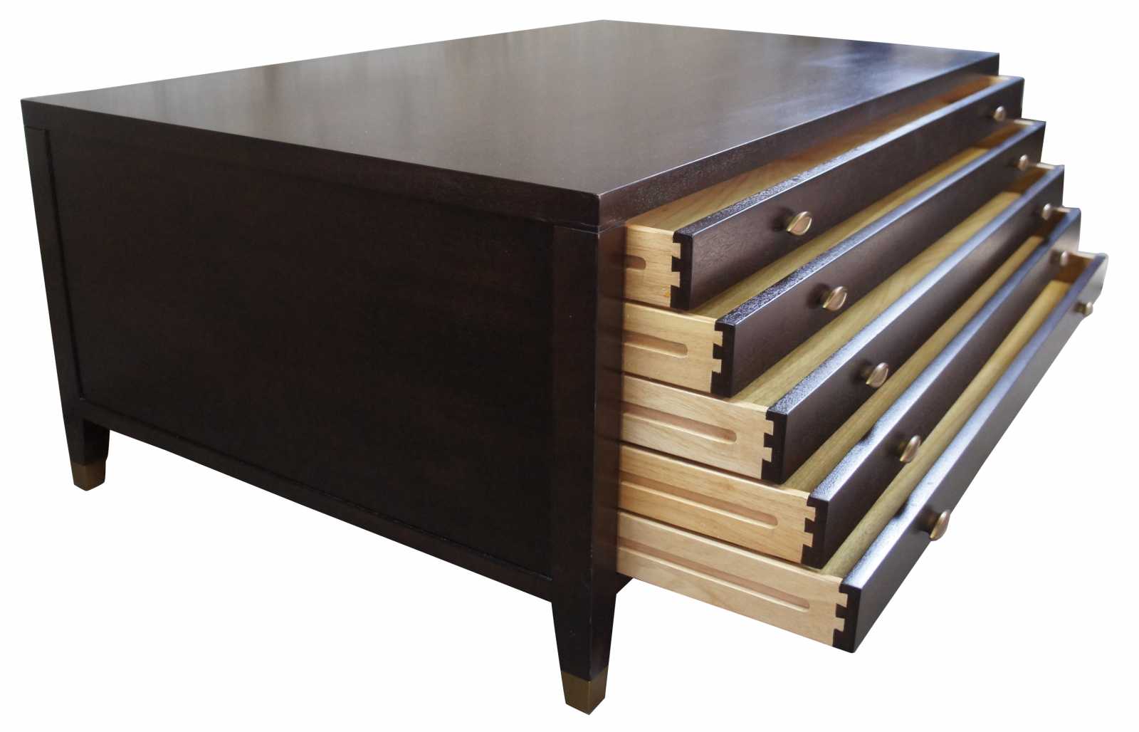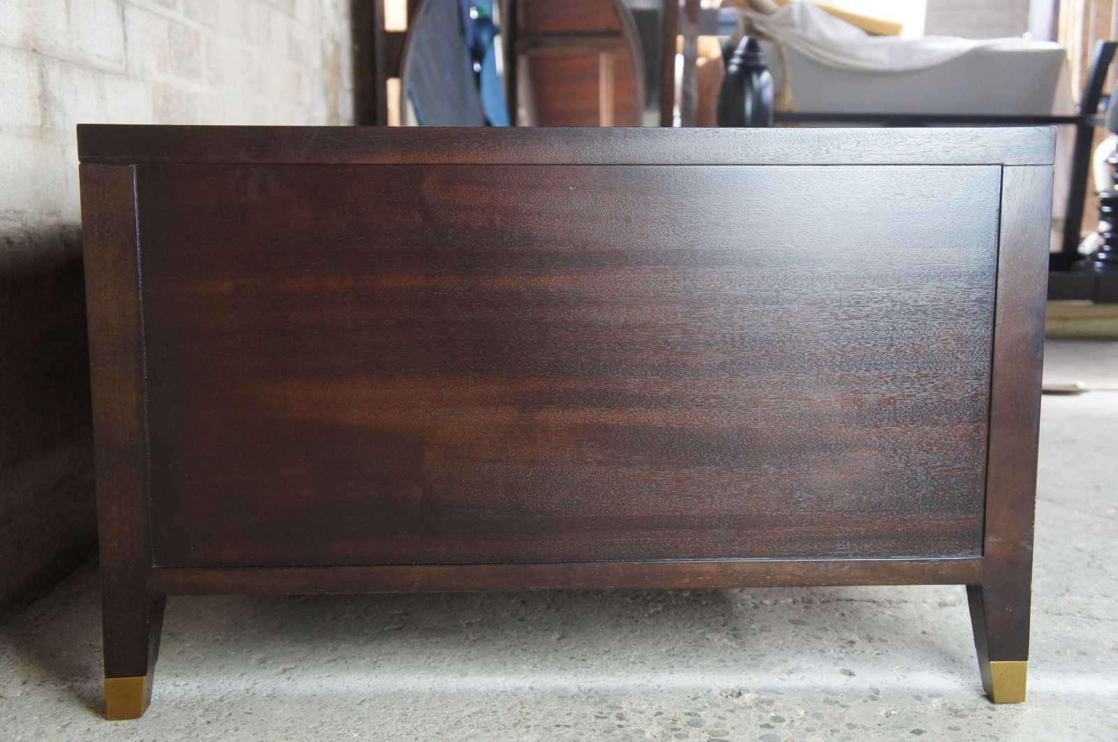 Bellemeade Signaure Blake map coffee table. Made from mahogany with five drawers on each side. Each drawer is dovetailed and includes two brass pulls. Legs are tapered with brass caps. The perfect complement to any traditional or modern space.