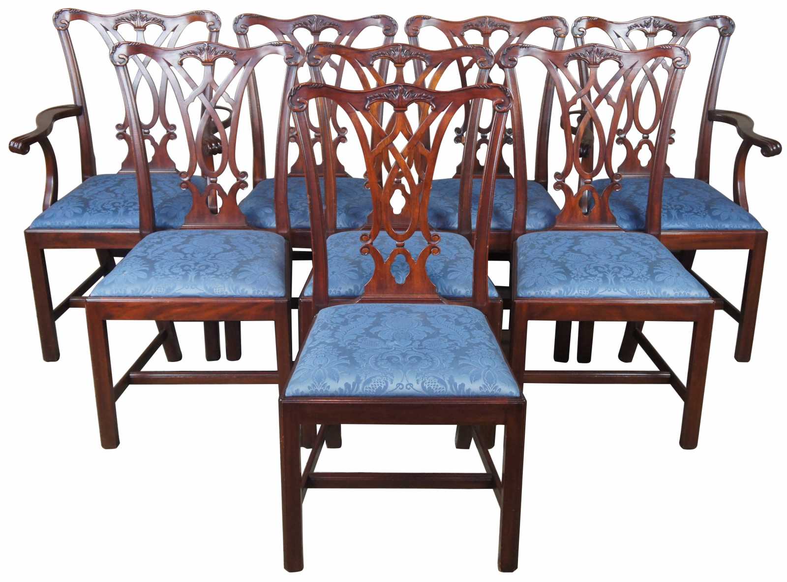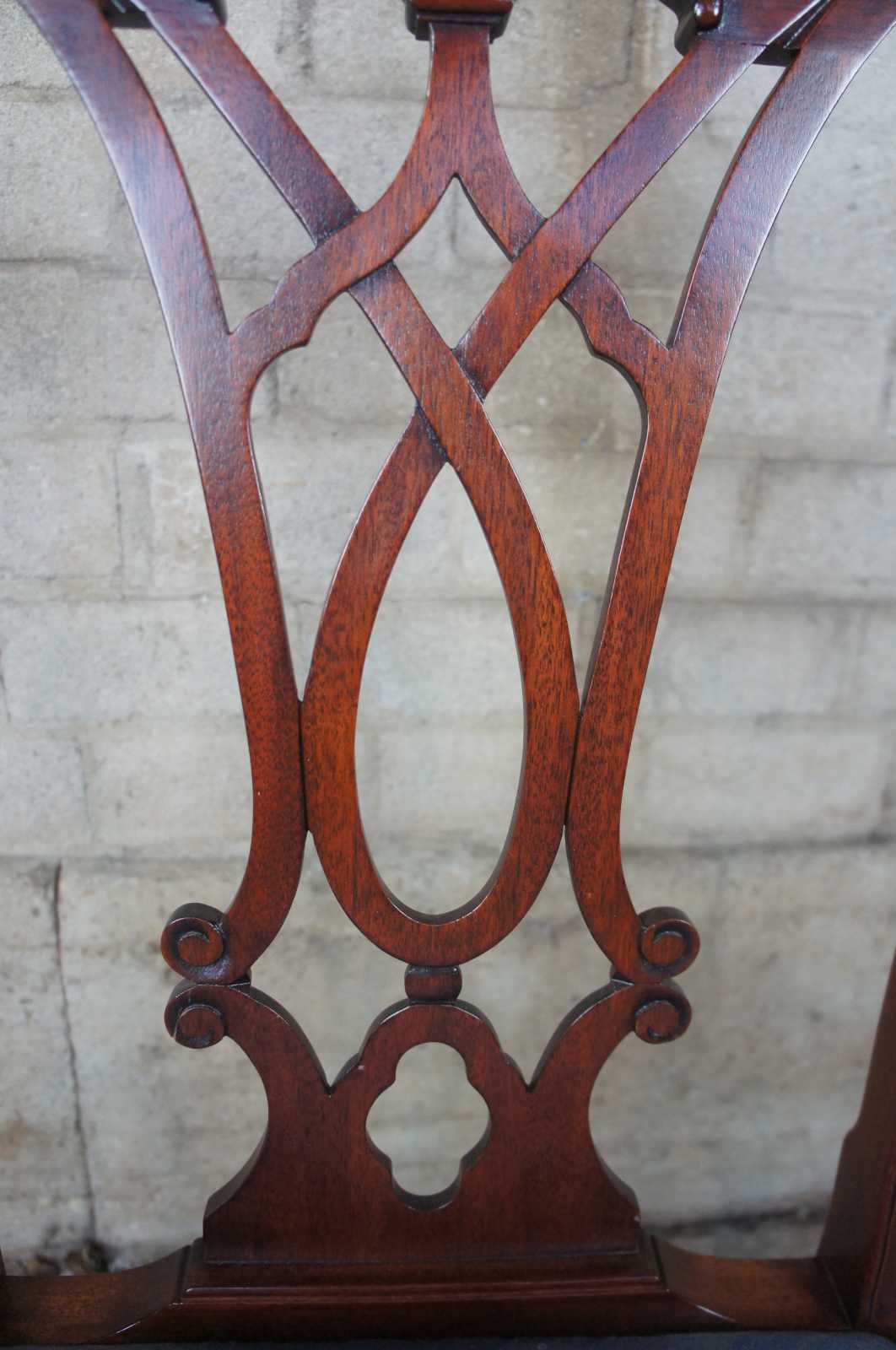 Carved crest rail and carved pierced interlaced back splat. Slightly incurved double beaded shaped back post.