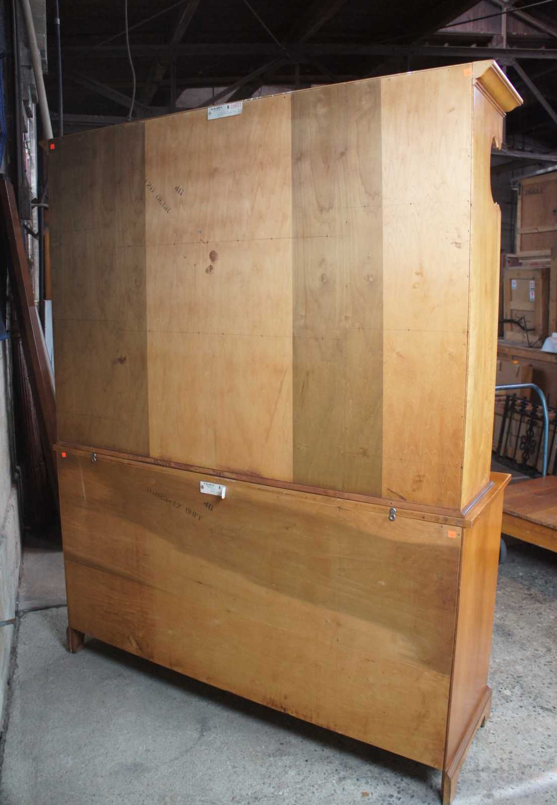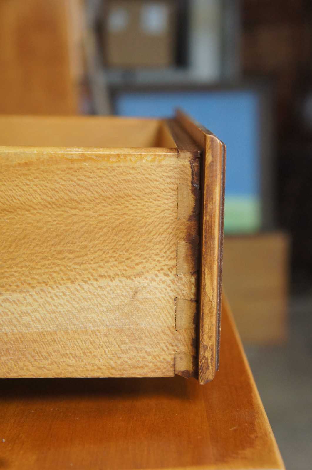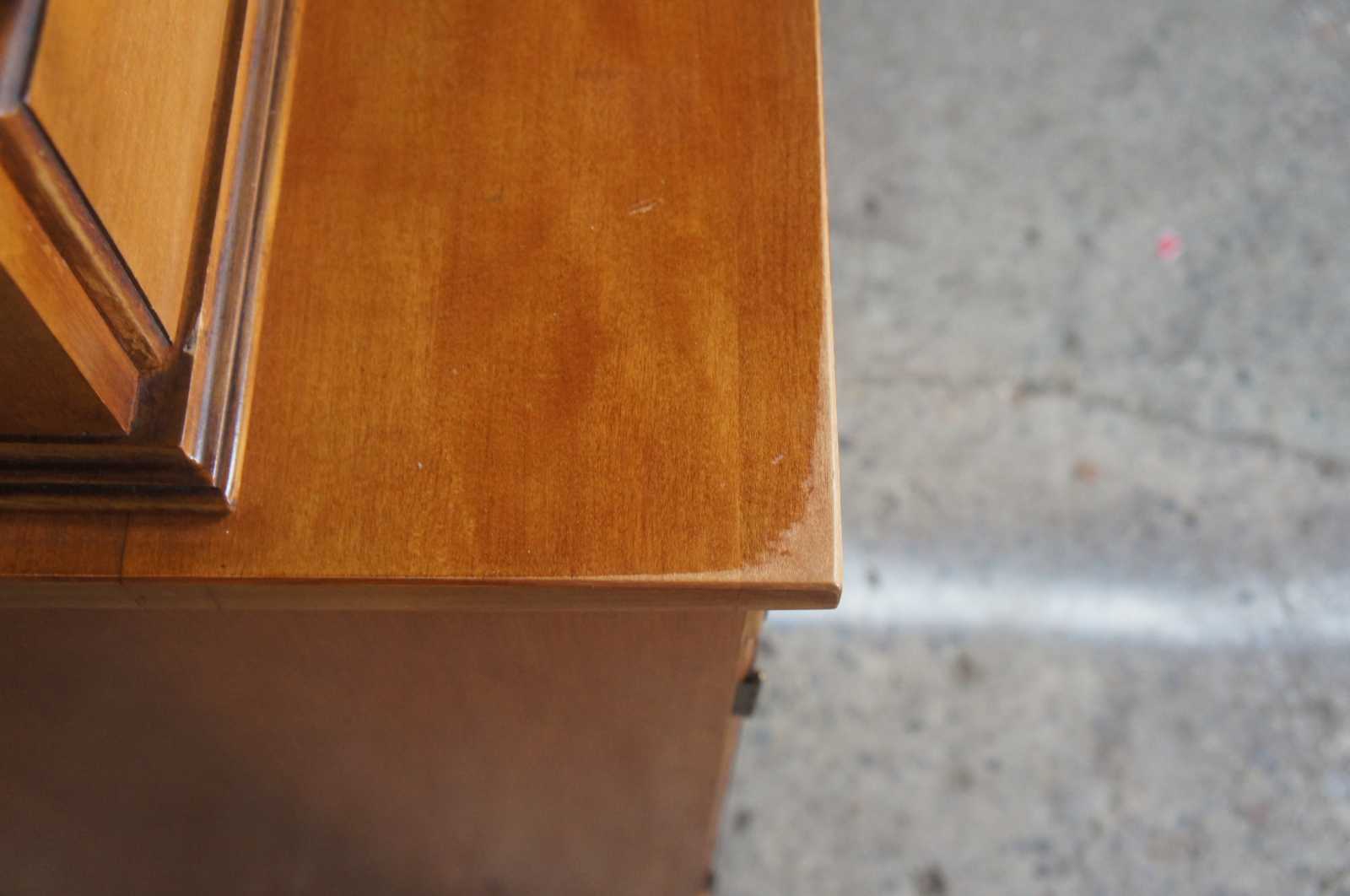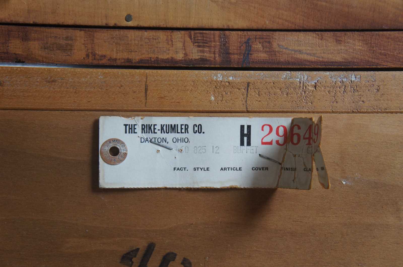 Circa 1970s maple china hutch. Features four cabinets, ten drawers, plate grooves and brass hardware. Originally purchased from The Rike-Kumler Co in Dayton, Ohio. Rikes was one of the largest departments stores when it opened, remaining in business until they were bough out by Lazarus. Marked along back.