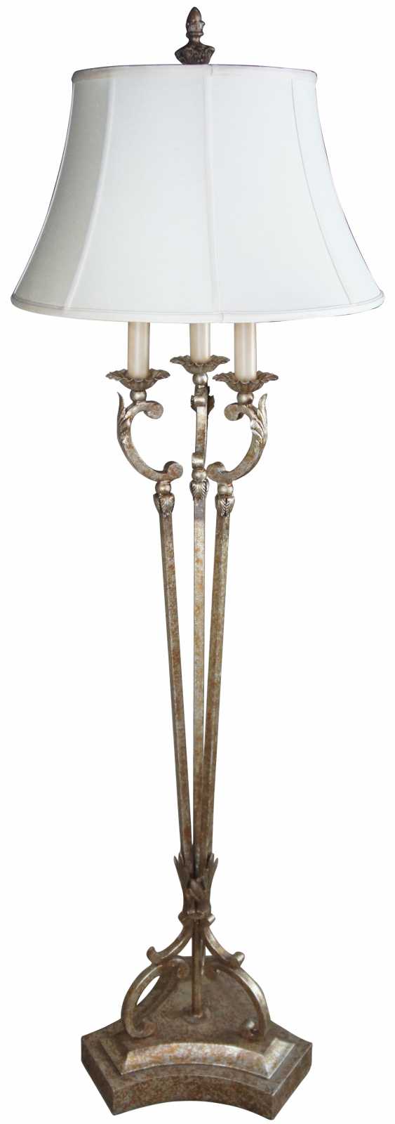 A Midsummer Nights Dream by Fine Art Lamps pruduct #225920ST. This floor lamp in cool moonlit patina, antique gold leaf, hand-sewn, silk shantung shade. Watts: 50-100-150