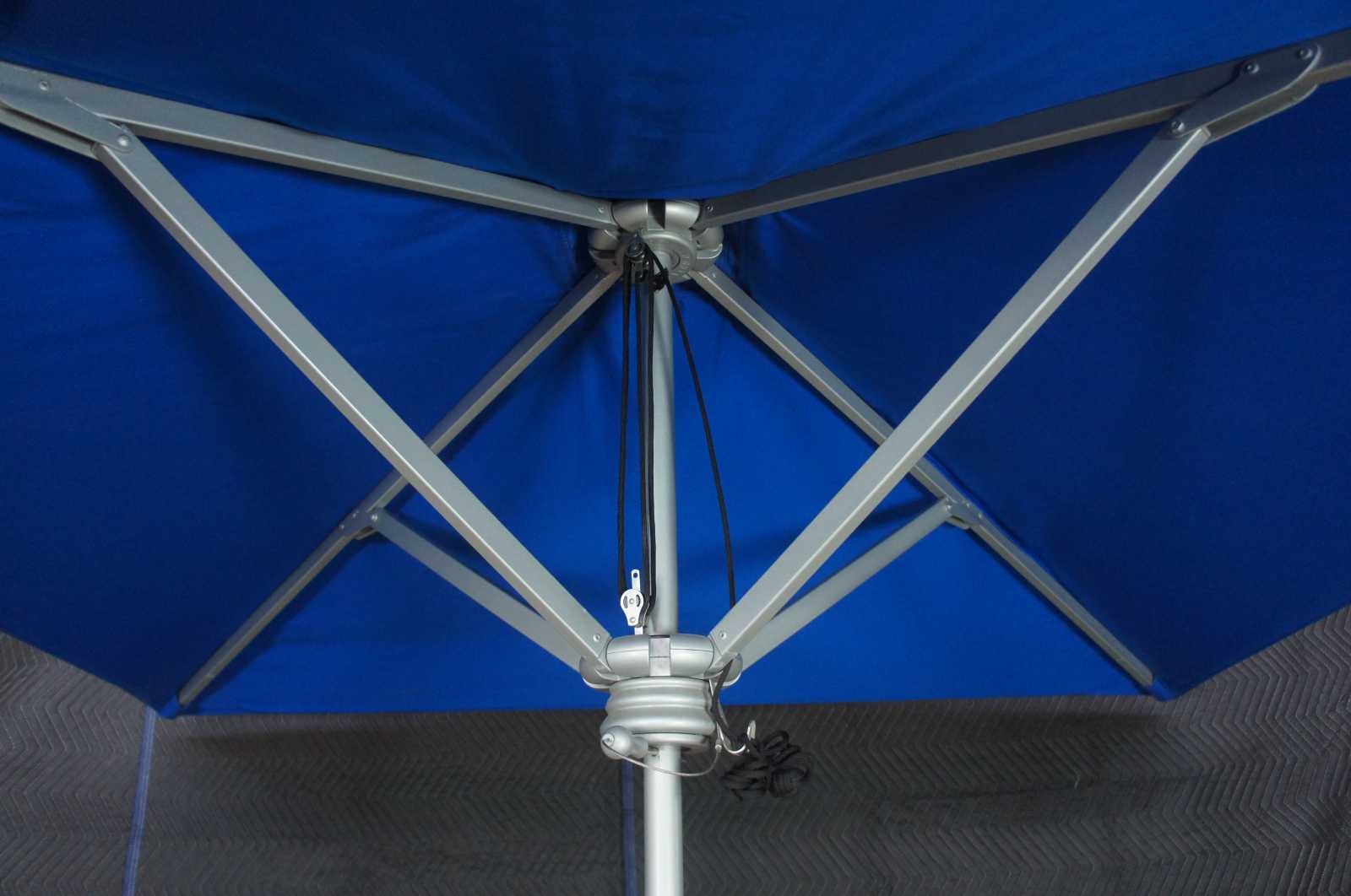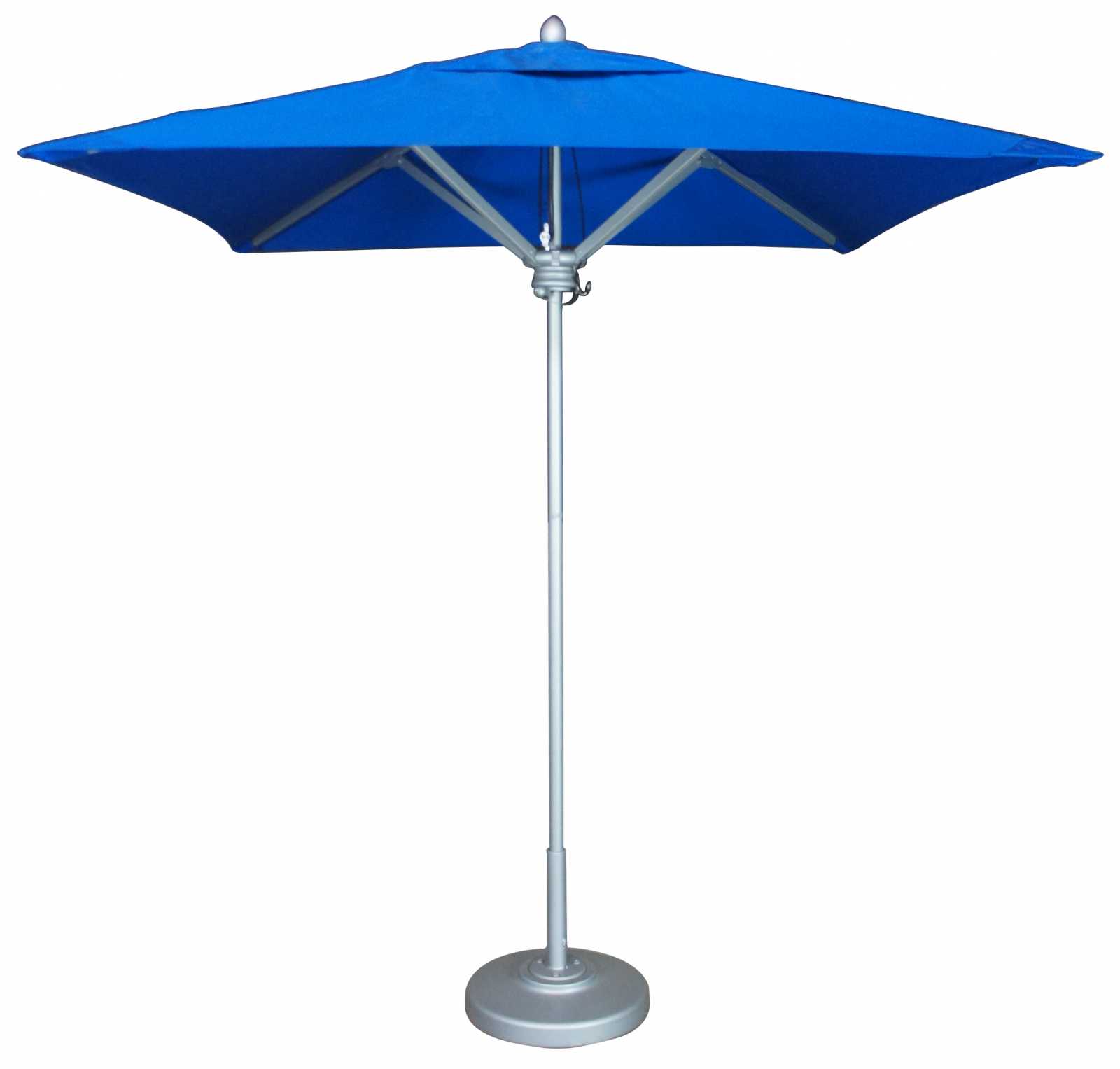 Brown Jordan 7' Square single vent umbrella with 1-1/2'' aluminum pole and double pulley. Product number 1390-9848, color Pacific Blue.