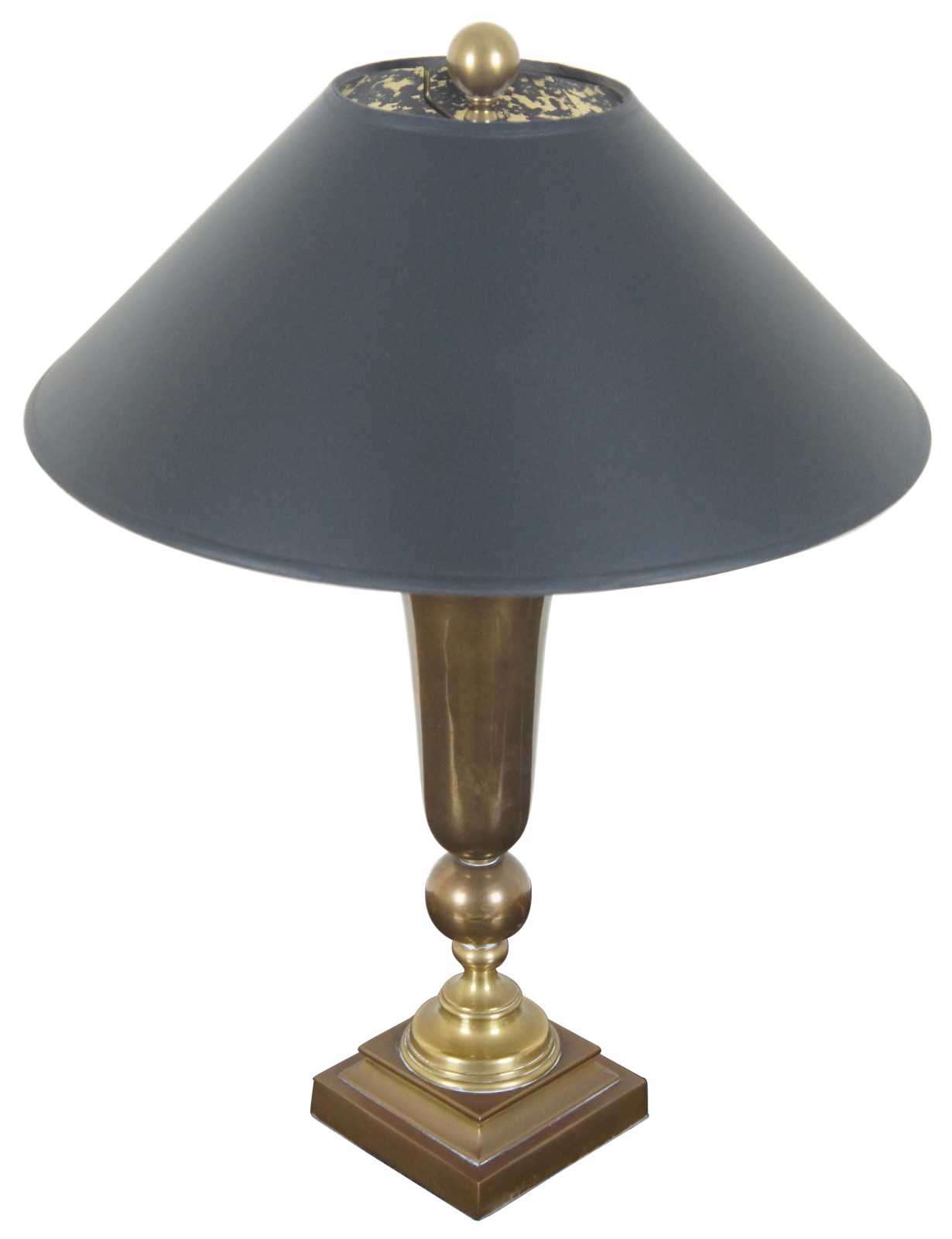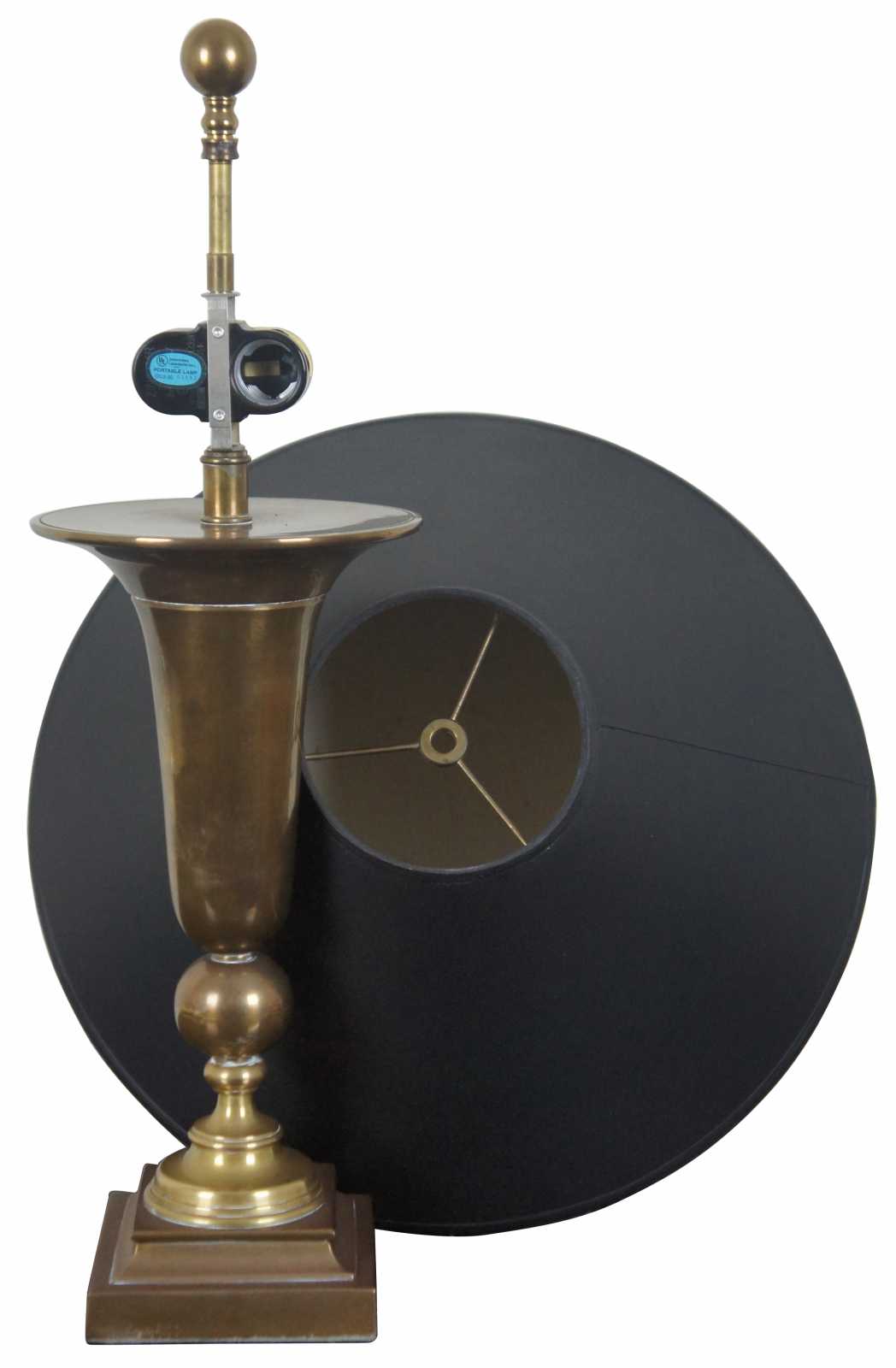 Vintage 1991 Chapman Graceful Urn Form lamp 15100A. Features an urn / trumpet or trophy shape with black shade and gold foil interior.