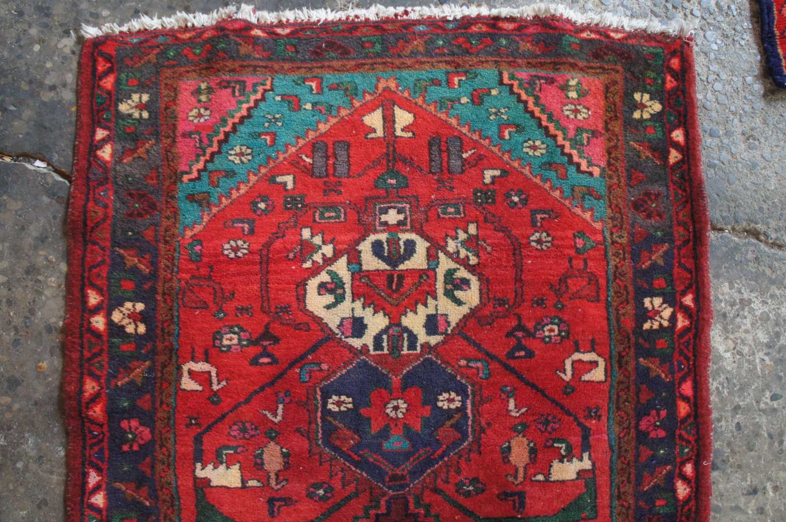 Good vintage condition, some wear to pile on center and edges.