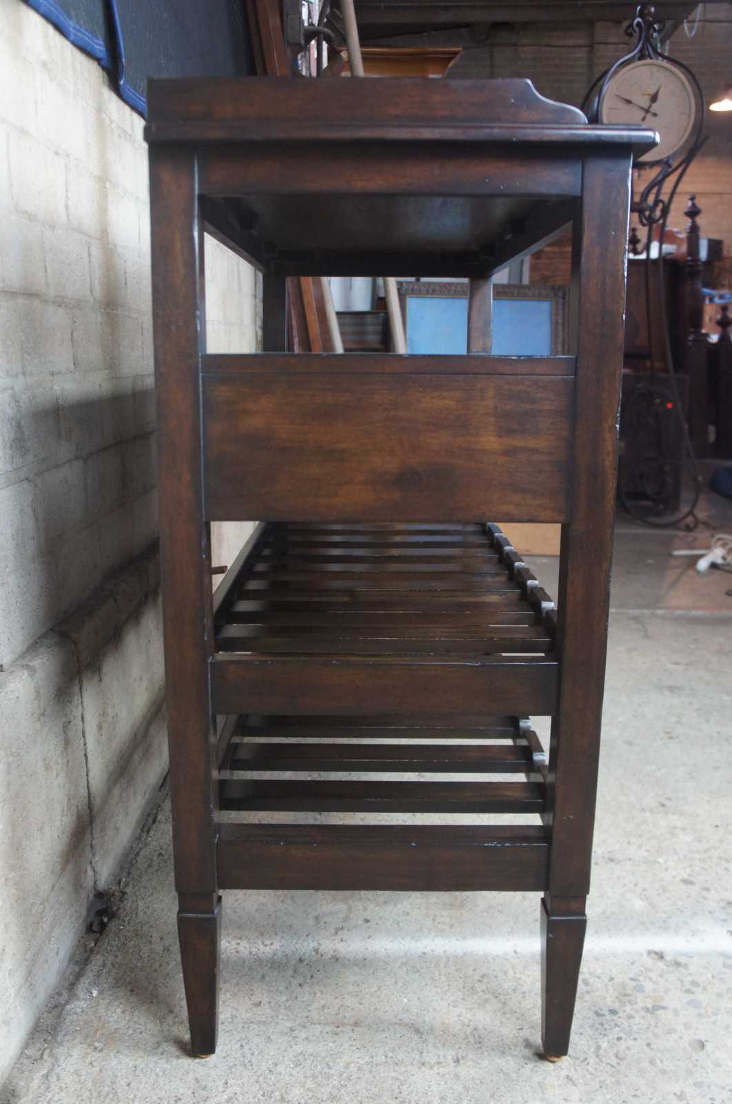 A traditional server and wine rack or dry bar by Henredon Acquisitions. Made from mahogany. Accomodates up to 16 bottles, includes two drawers with silver cloth, centered by a faux shield keyhole.