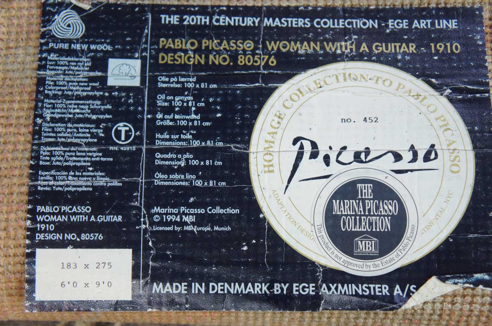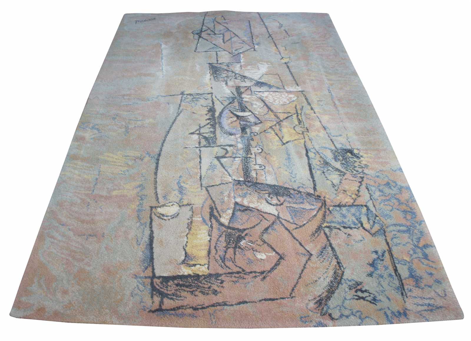 20th century masters collection from Ege Axminster A/S Art Line. Homage collection to Pablo Picasso "Woman with a Guitar" 1910 design numner 80576 / 452, made in Denmark 1994. 6' x 9'.