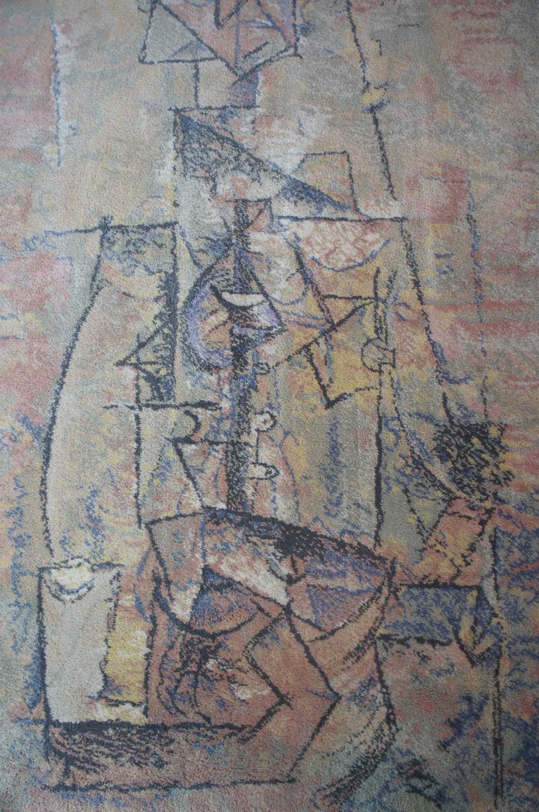 A very rare rug from the 20th century masters collection by the Scandinavian Company EGE. The Art Line Collection with motives from Pablo Picasso was commissioned by his daughter. The collection was made in 1994 in a limited number of 600 pieces. Homage to Pablo Picassos "Woman with a Guitar" Circa 1910. The design number is 80576 / #511 of 600, made in Denmark. 4'7" x 6'7".