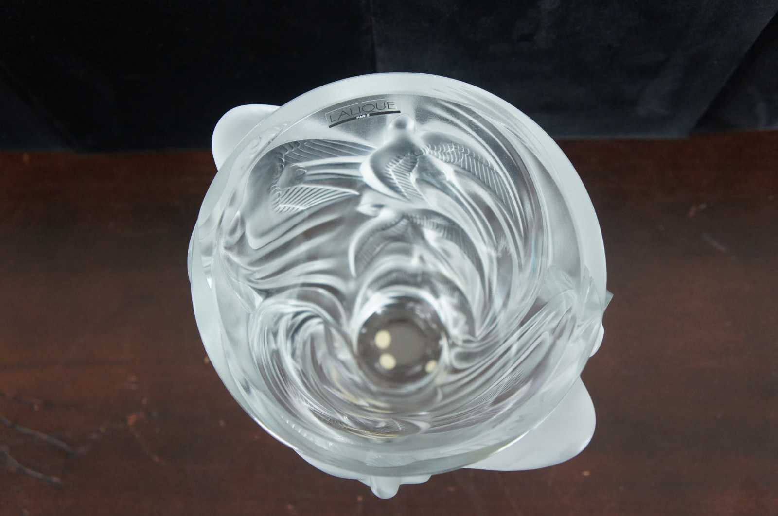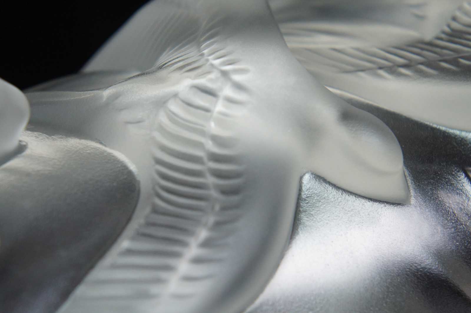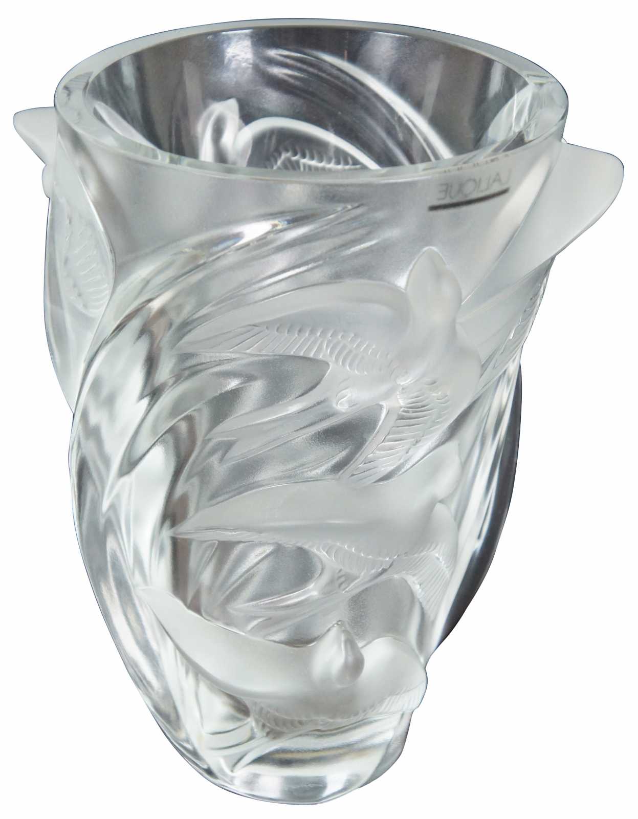 The Martinets Vase creates a perfect contrast between satin-finished and transparent crystal. The animal world was one of René Lalique's major sources of inspiration. He depicted a wide variety of animal species, all with a degree of naturalism that demonstrated the designer's genius. These small swallows provided inspiration for René Lalique in designing his loveliest perfume bottles. Handcrafted in France.