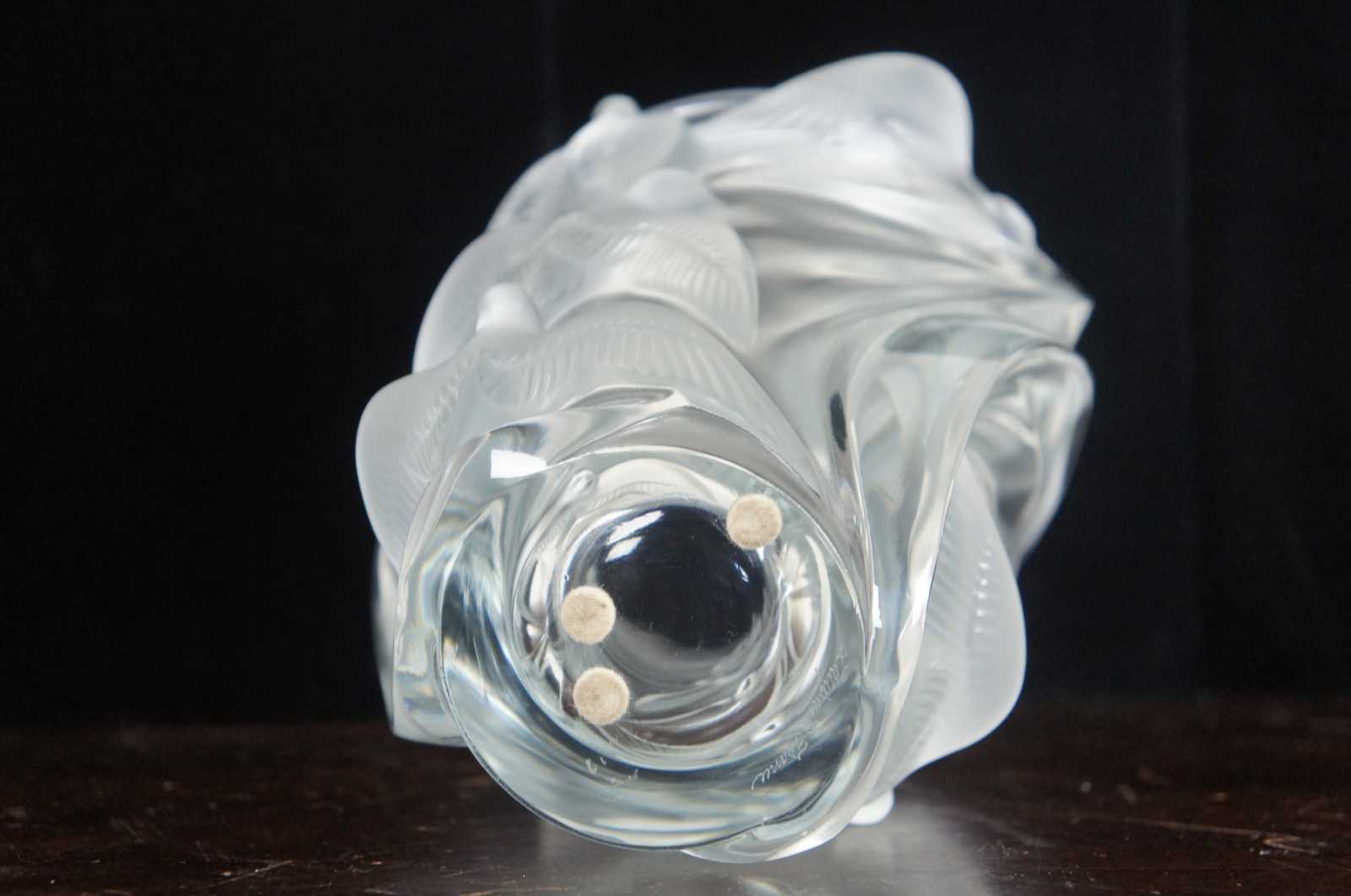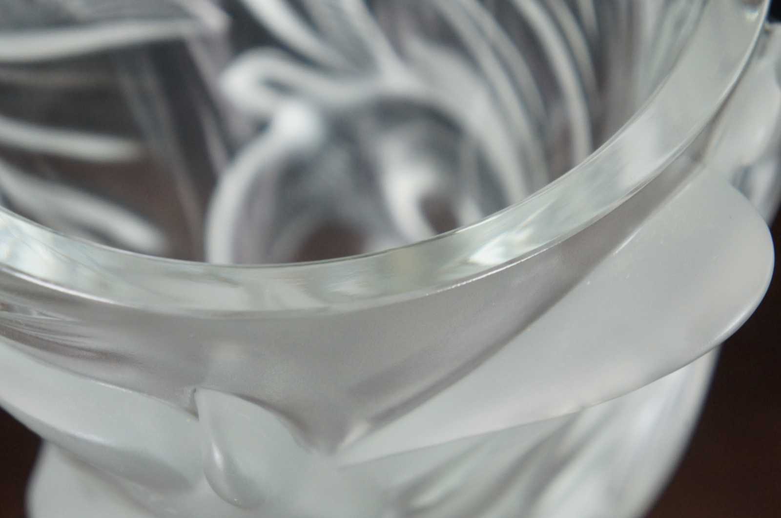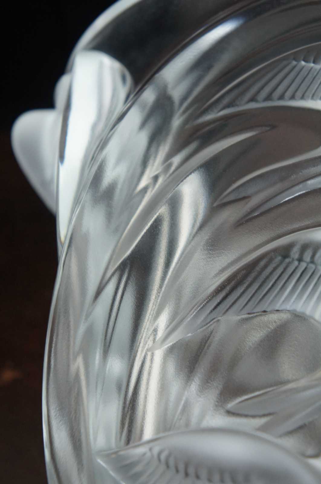The Martinets Vase creates a perfect contrast between satin-finished and transparent crystal. The animal world was one of René Lalique's major sources of inspiration. He depicted a wide variety of animal species, all with a degree of naturalism that demonstrated the designer's genius. These small swallows provided inspiration for René Lalique in designing his loveliest perfume bottles. Handcrafted in France.