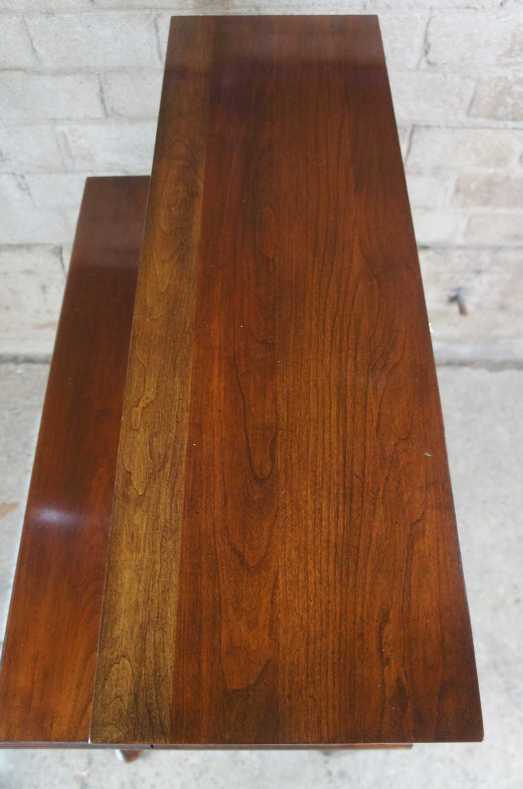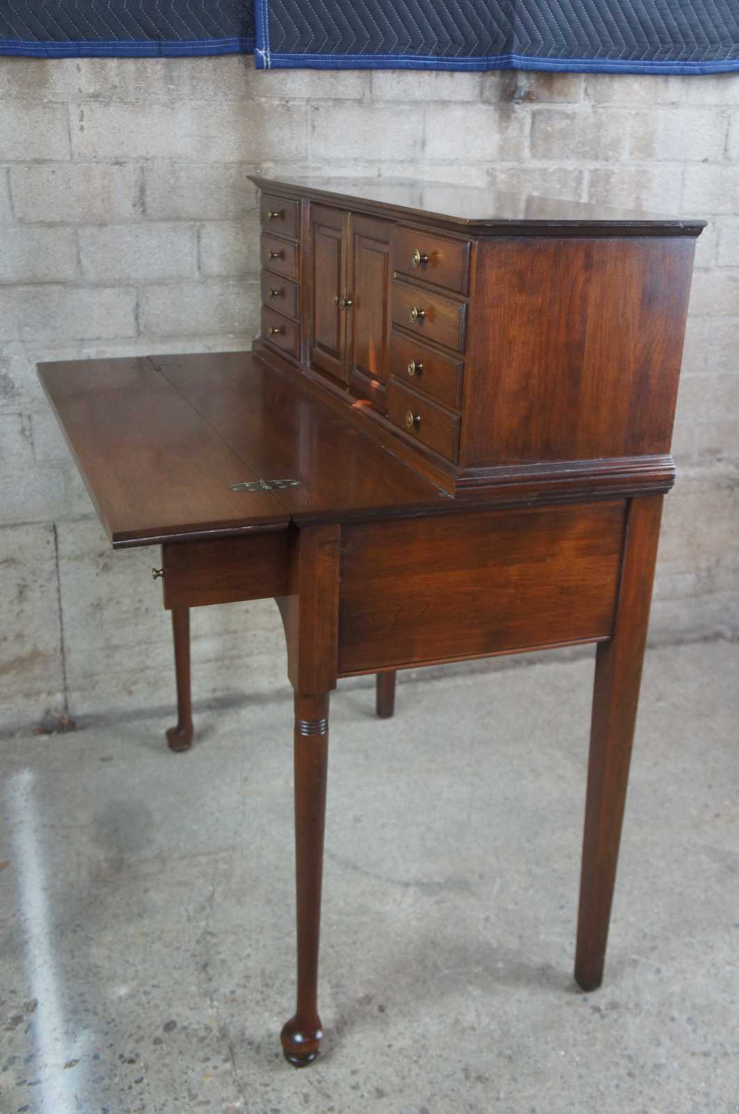 Circa 1960s Penn. House solid cherry step back secretary or ladies desk. Features nine drawers and interior cubby for paperwork storage. Fitted with brass hardware and pad feet. Matching chair available.