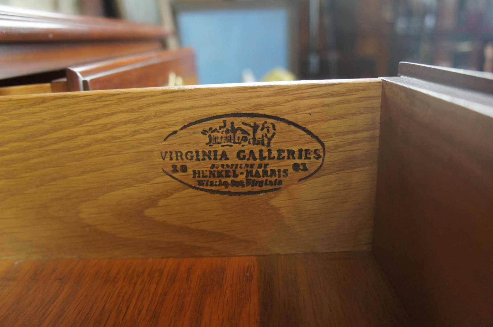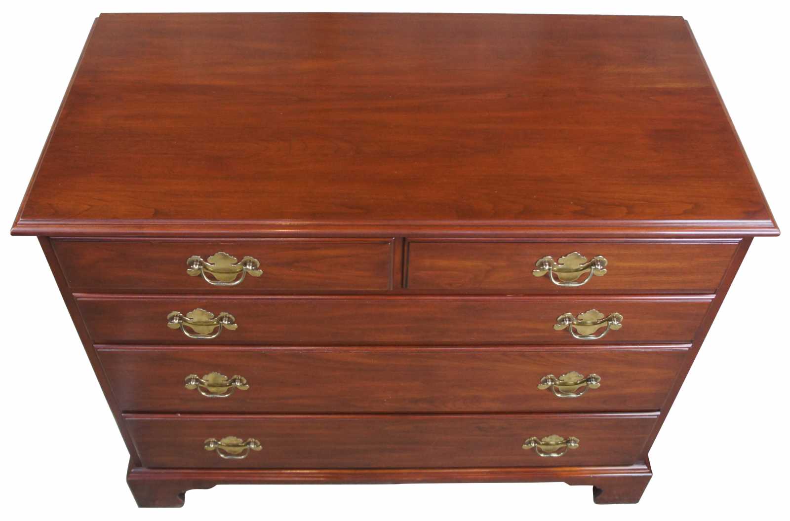 Henkel Harris Wild Black Cherry dresser or chest, circa 1982. Features chippendale styling with brass hardware and block feet. Finish #24.