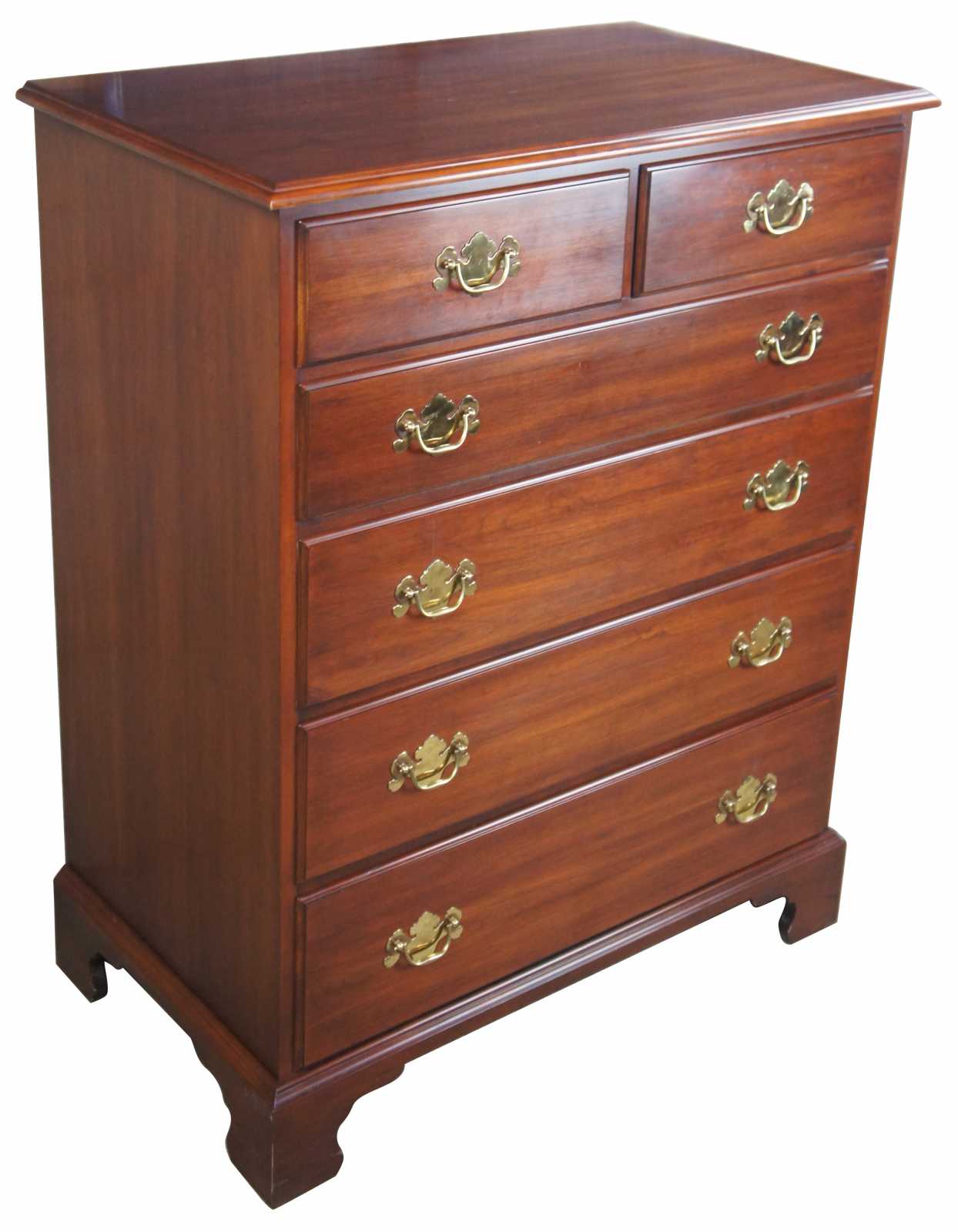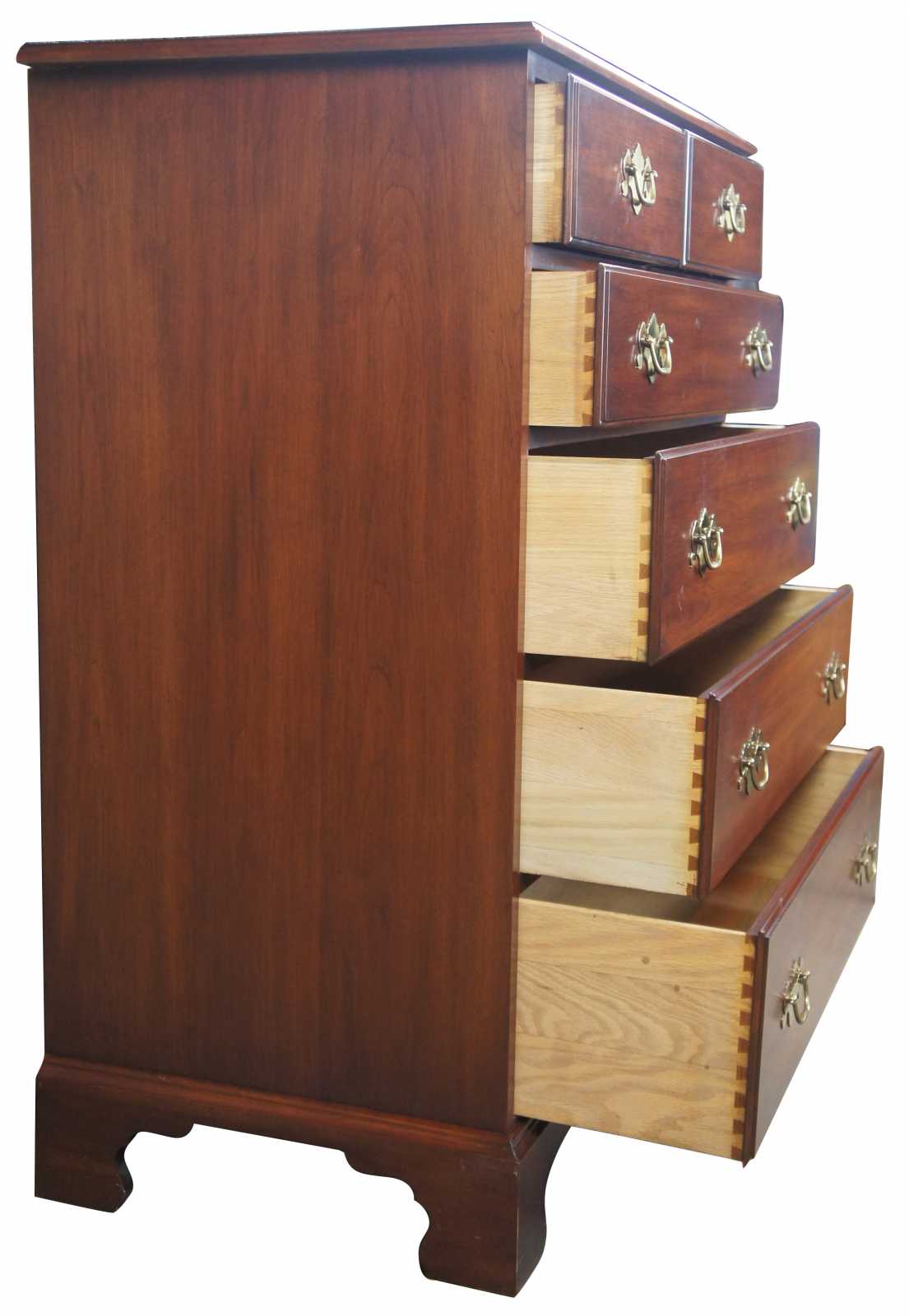 Henkel Harris Wild Black Cherry two over four drawer dresser, circa 1892. Chippendale style with brass hardware and block feet. Finish #24, style #115, from shop #181-484.