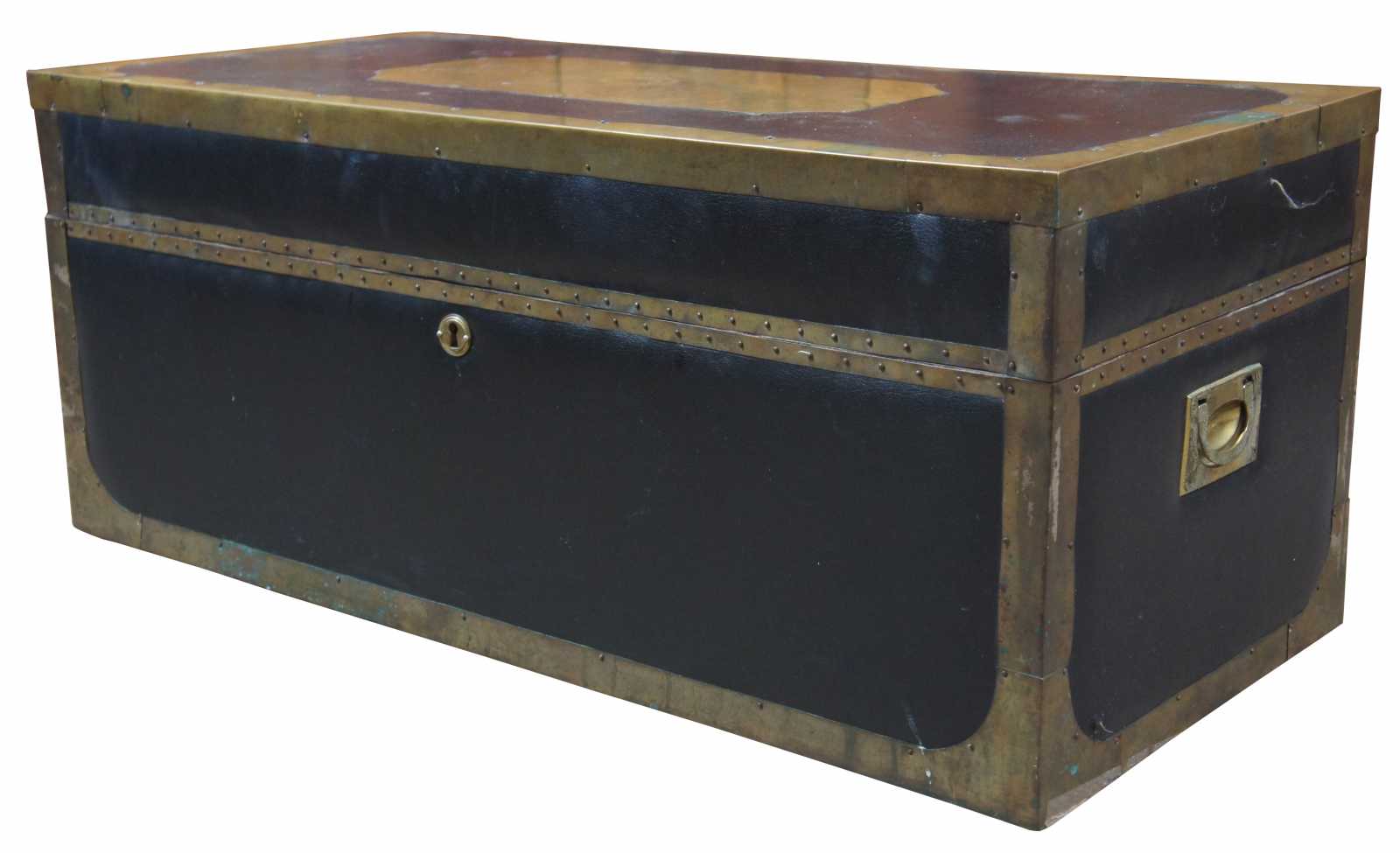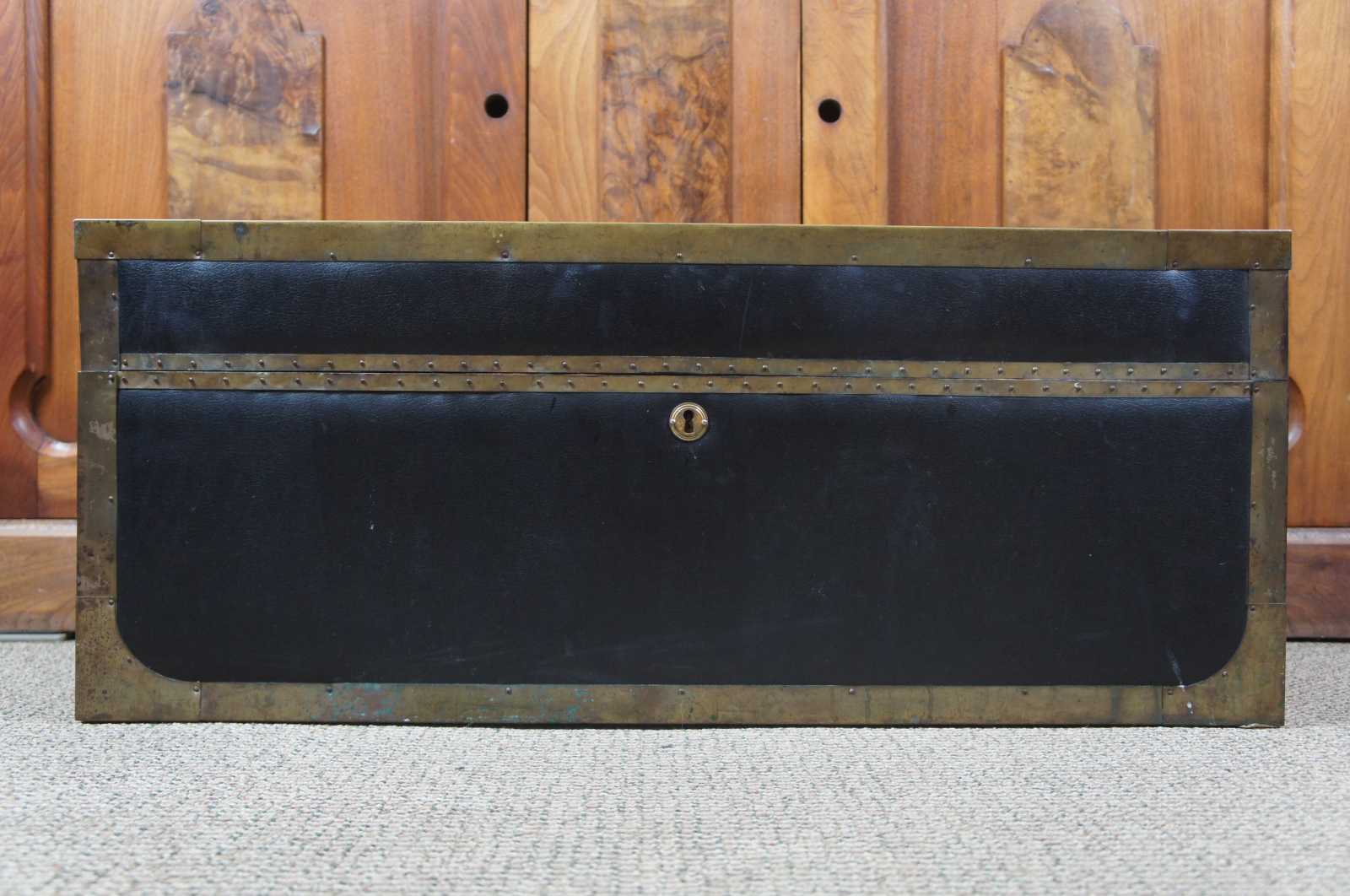 Early 20th century Chinese export camphor chest or trunk. Features a leather exterior trimmed in brass.