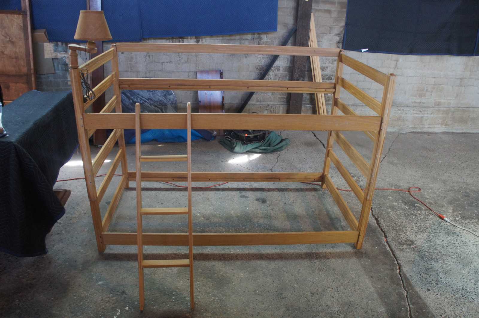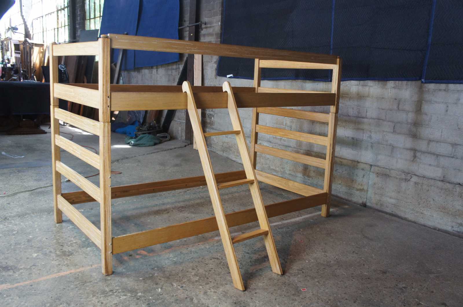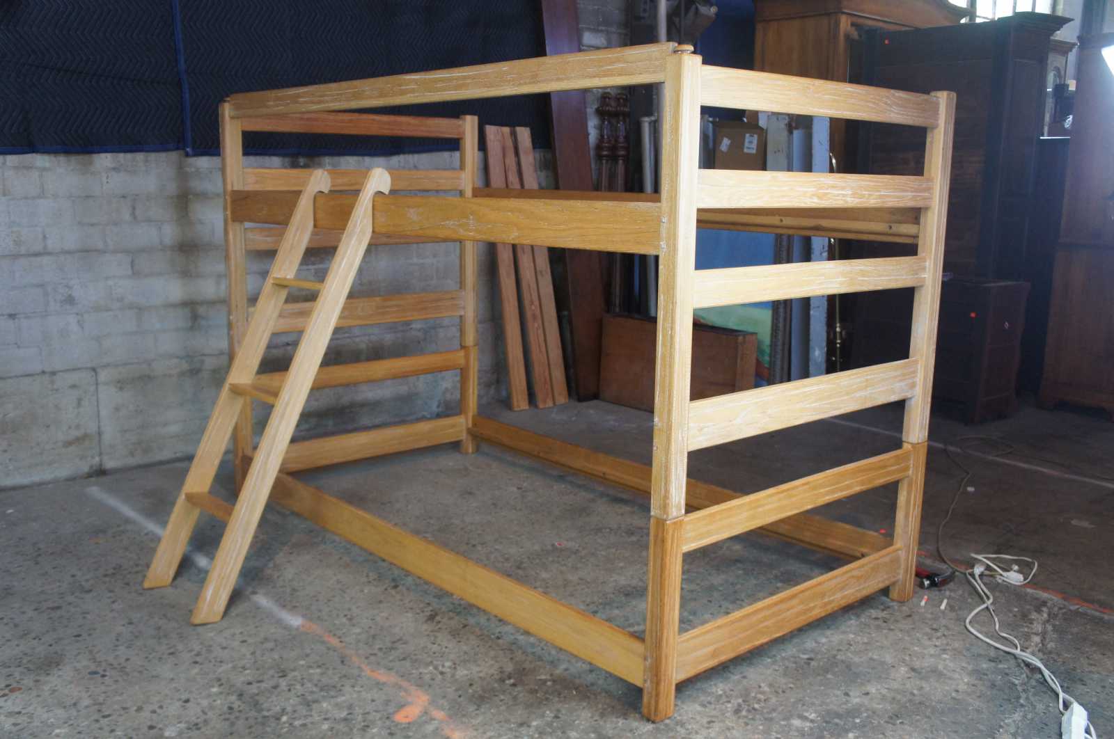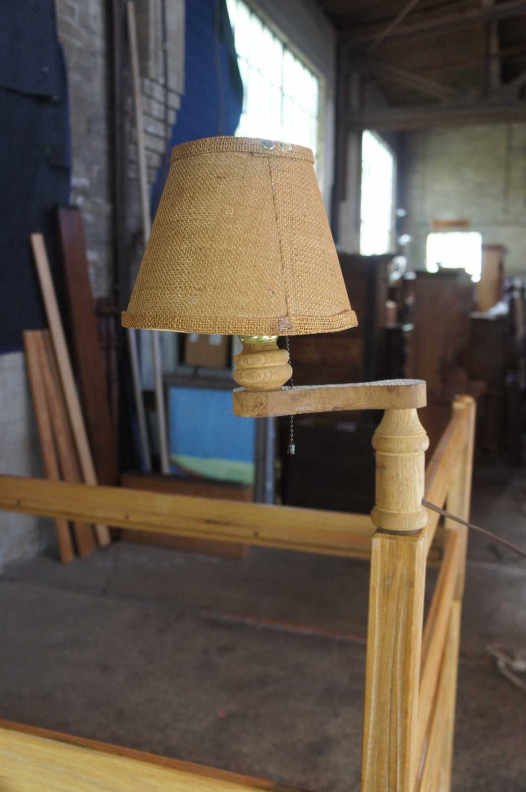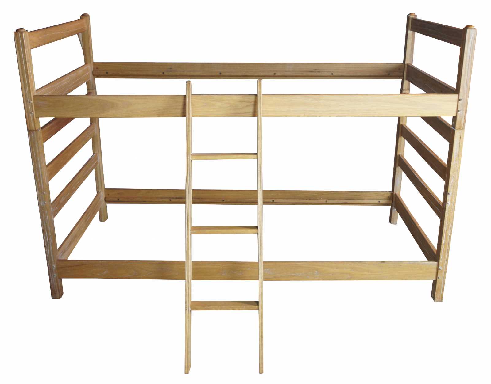 Ranch Oak Bed Set by A Brand out of Fort Worth, Texas. Circa 1970s. A unique Southwestern design with oak construction. Capable of being used as bunk bed with ladder and guard rail, trundle bed or twin bed set.