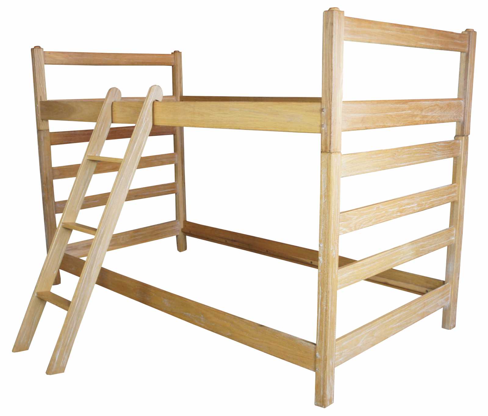 As twins: 79.75" x 41" x 36"h, 20"h footboard, box spring height 7"; as bunk beds 55" tall, second bed rail height is 42.5"