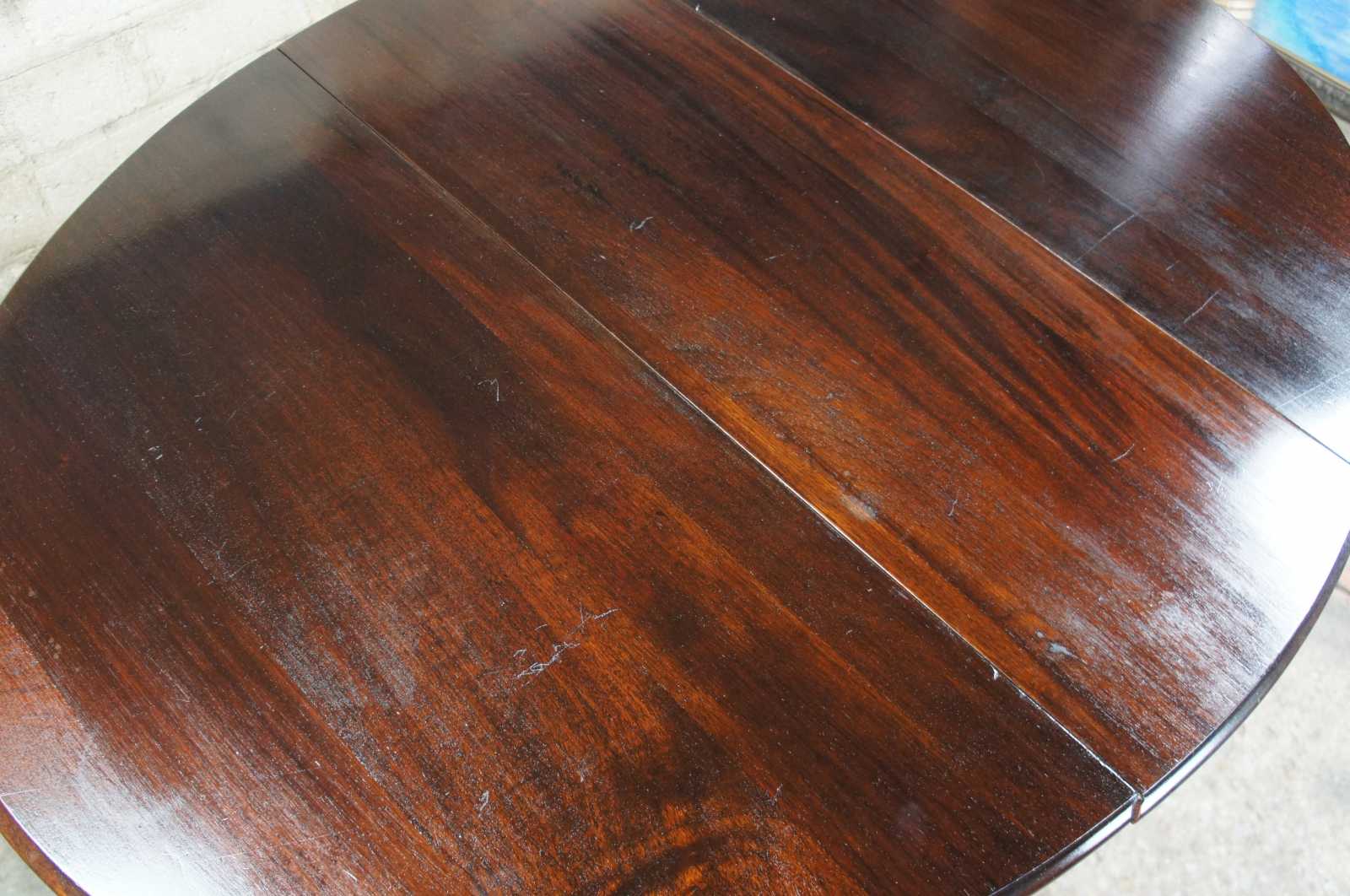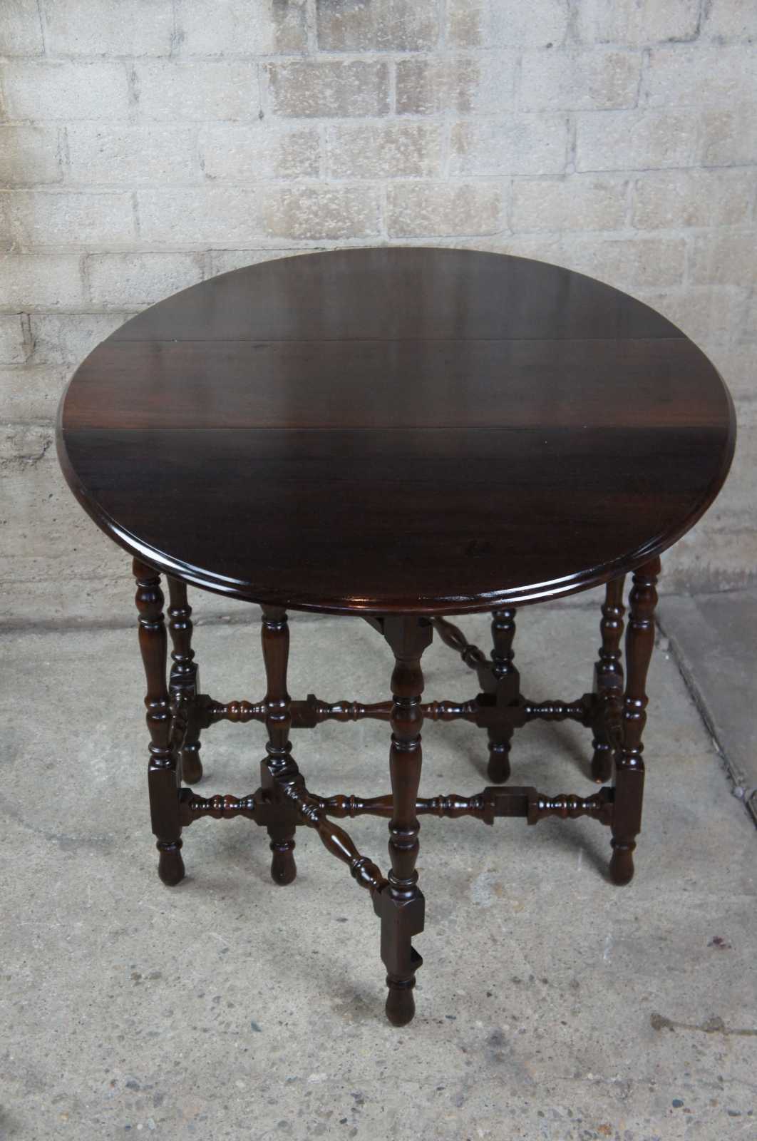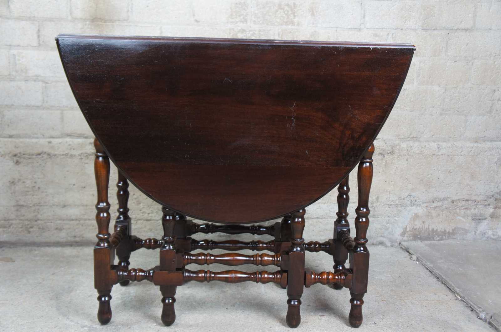 Early 20th century solid walnut drop leaf or gateleg table with drawer. Features turned supports in William & Mary style.