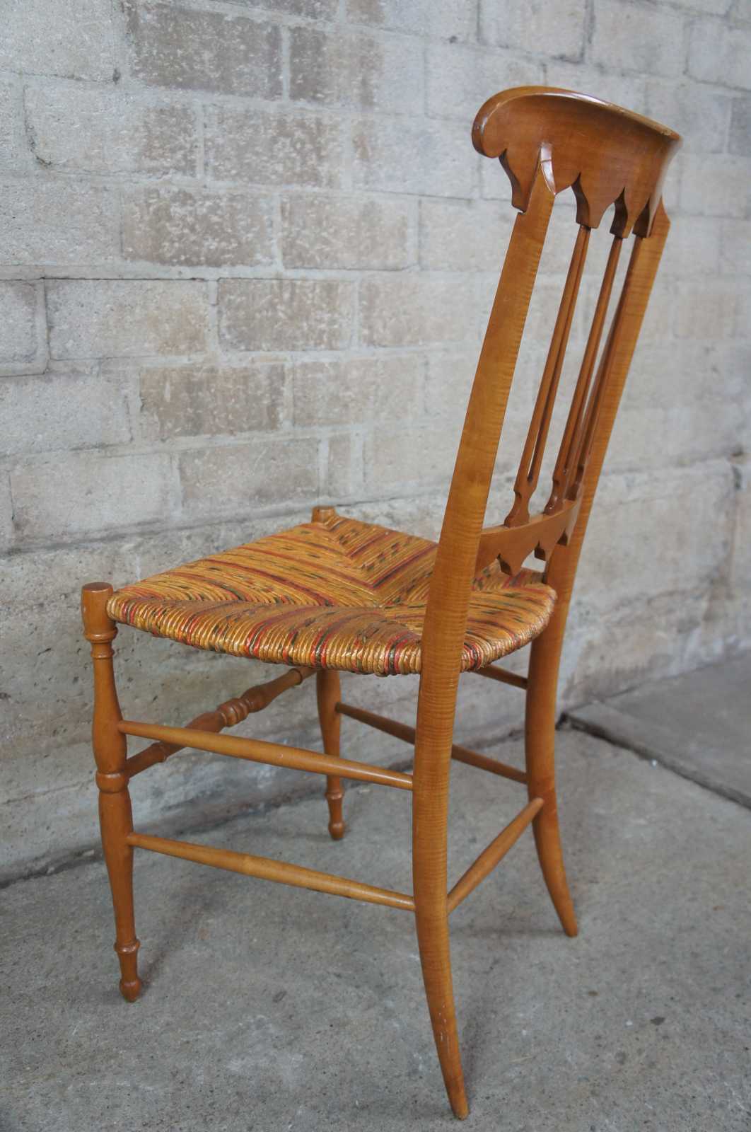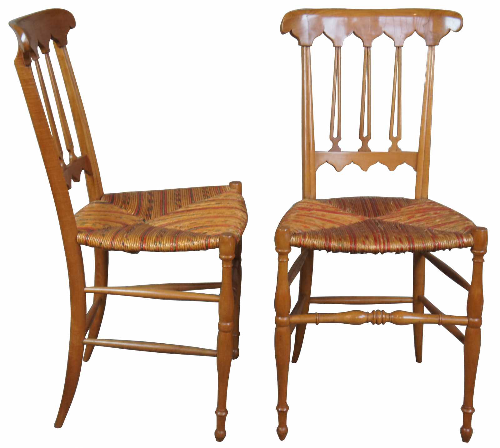 Pair of two Italian Chiavari parlor chairs. Made from solid maple with a shaped back with cut gothic style arcade design leading to split spindles. Seats covered in multicolor wicker pattern.