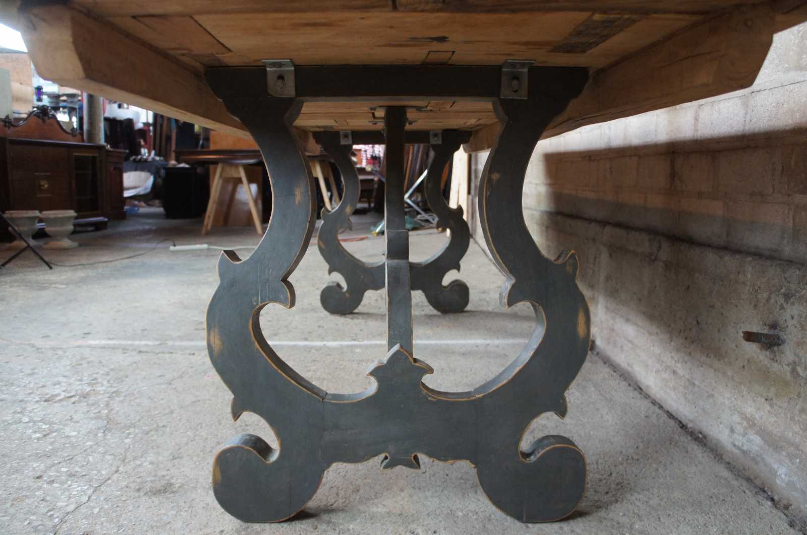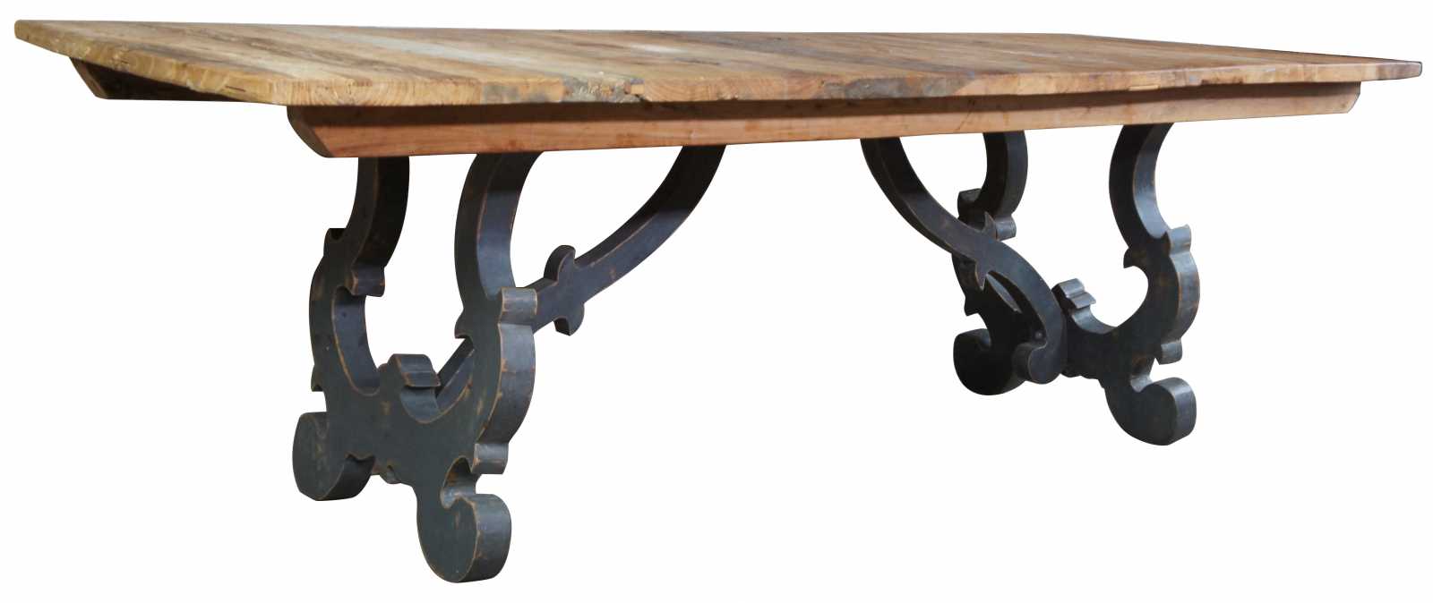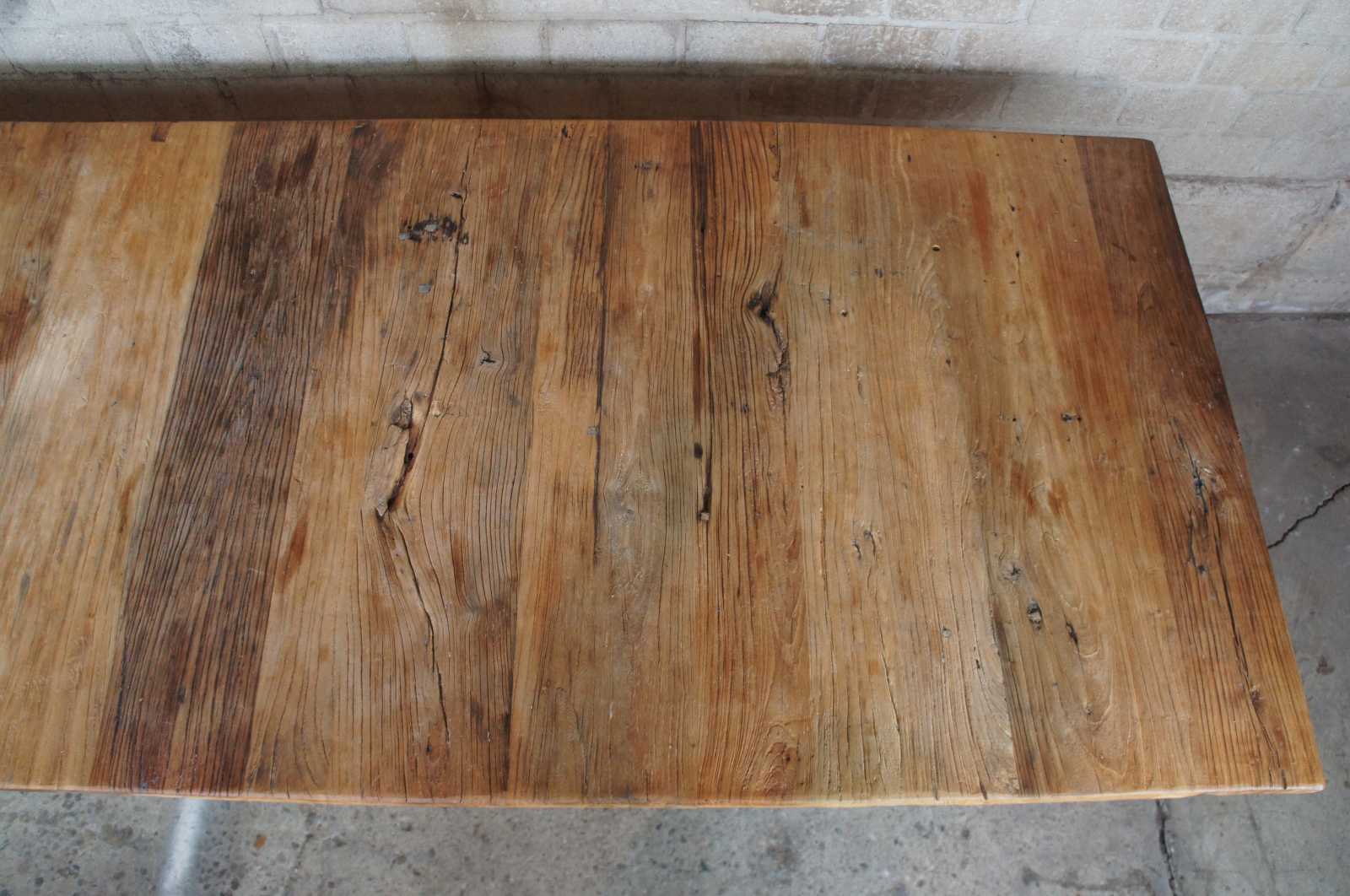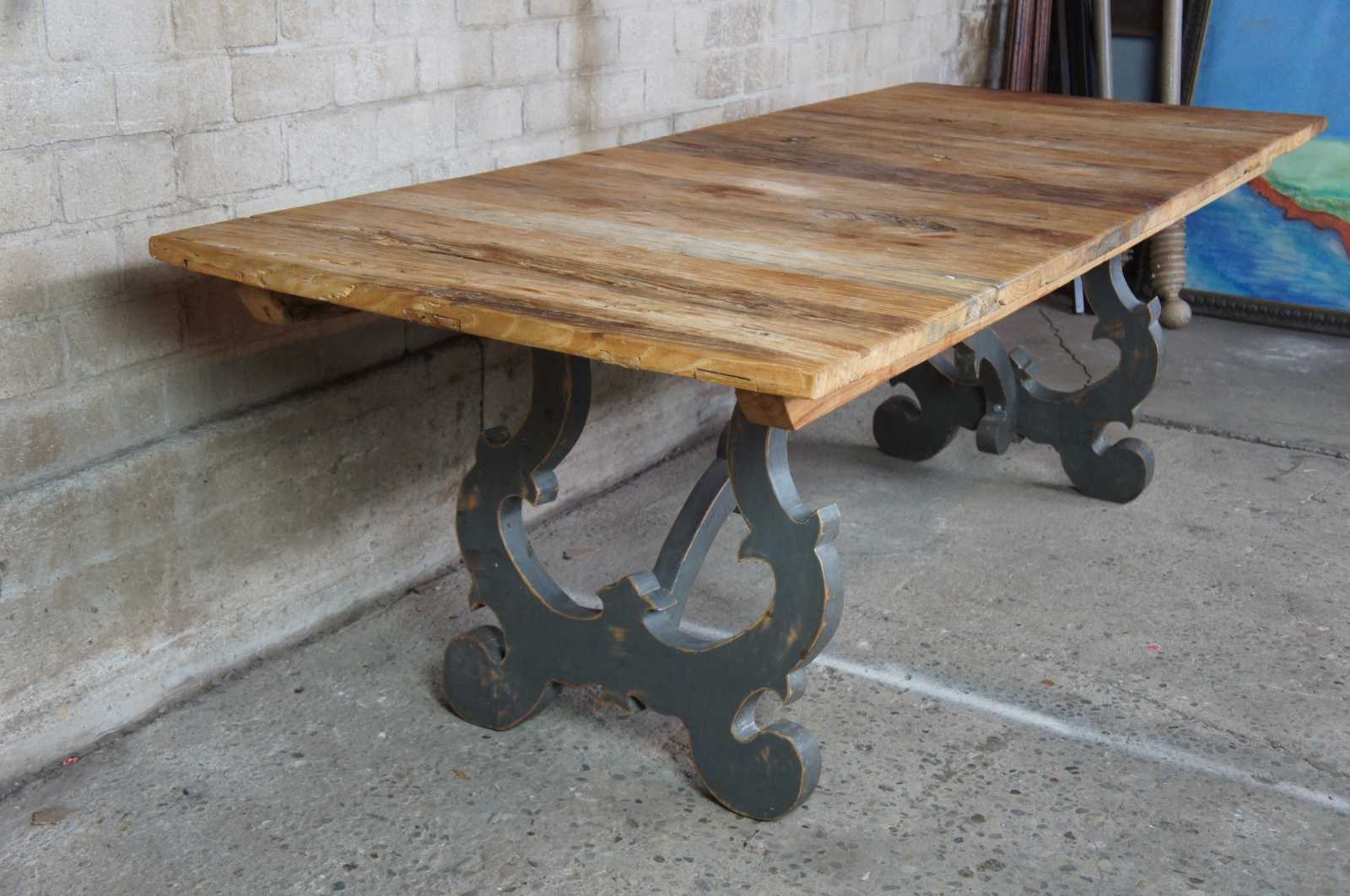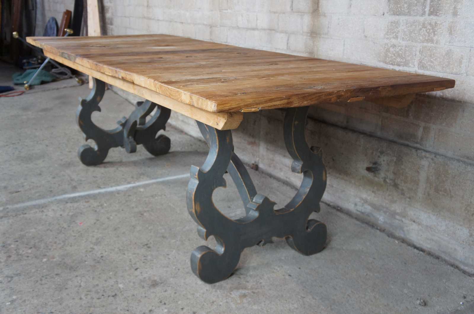 20th century custom made Chinese plank dining table with old world design and painted base.