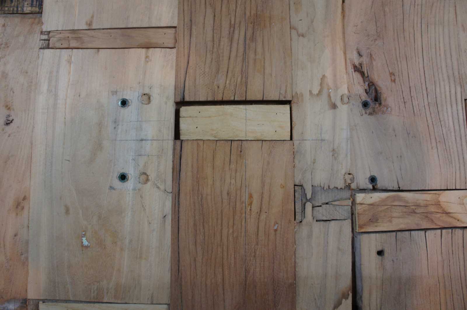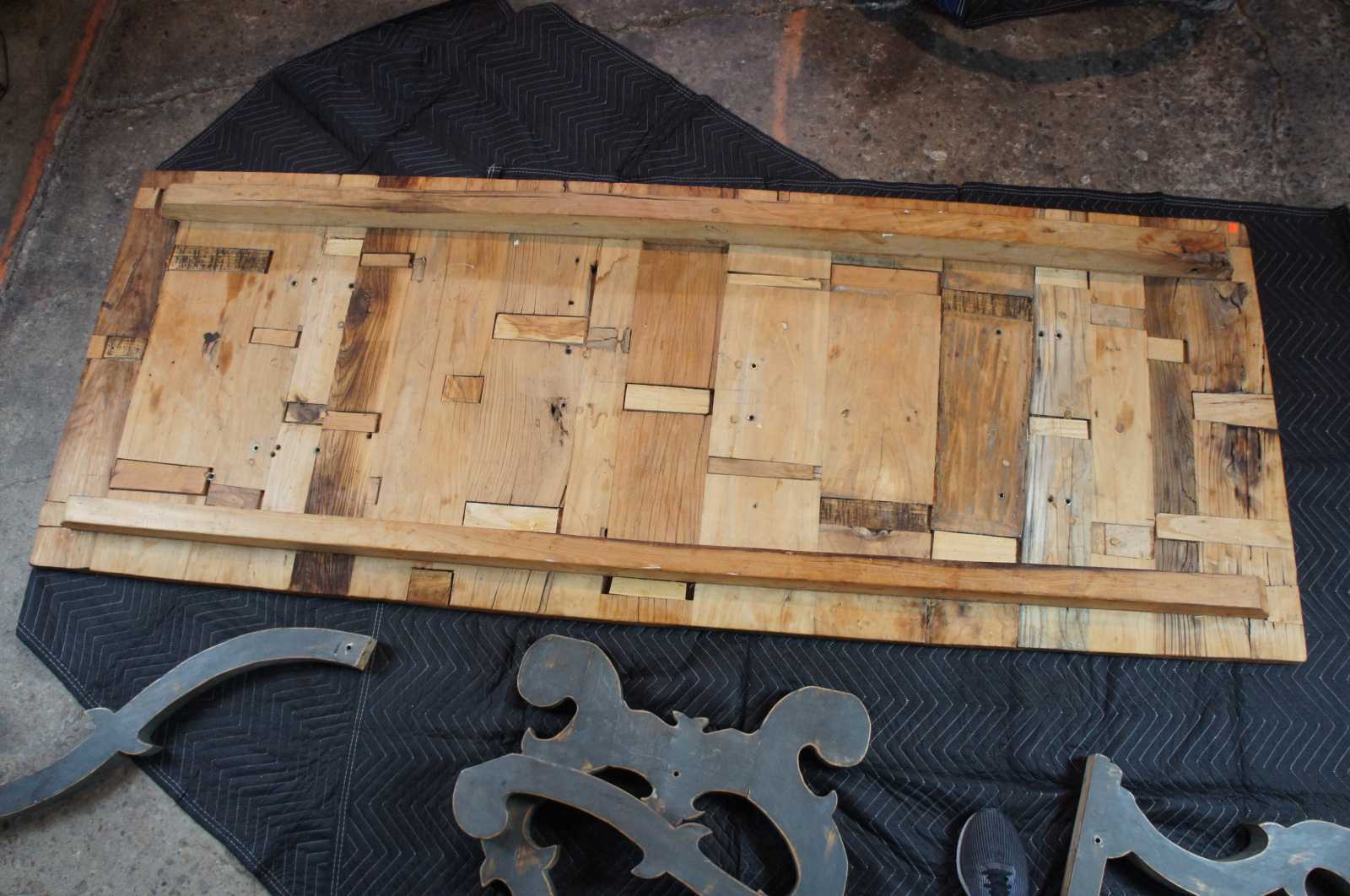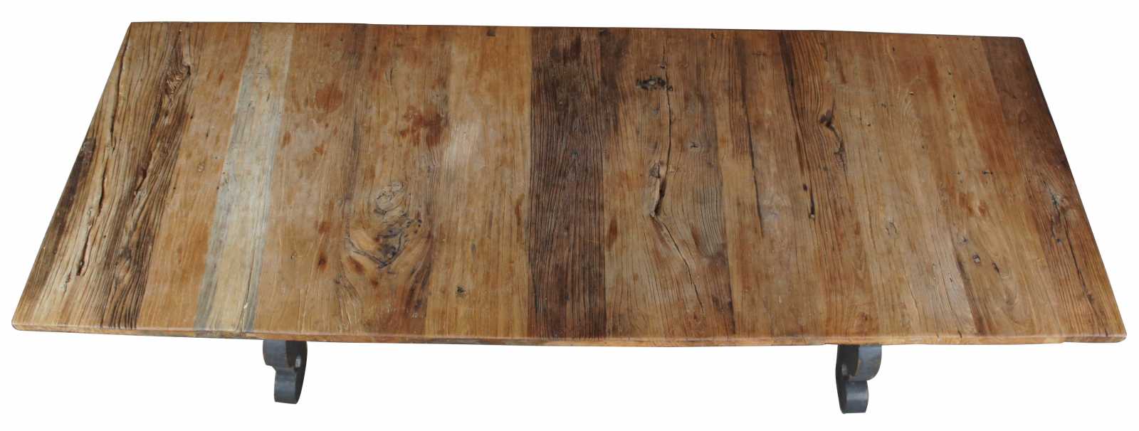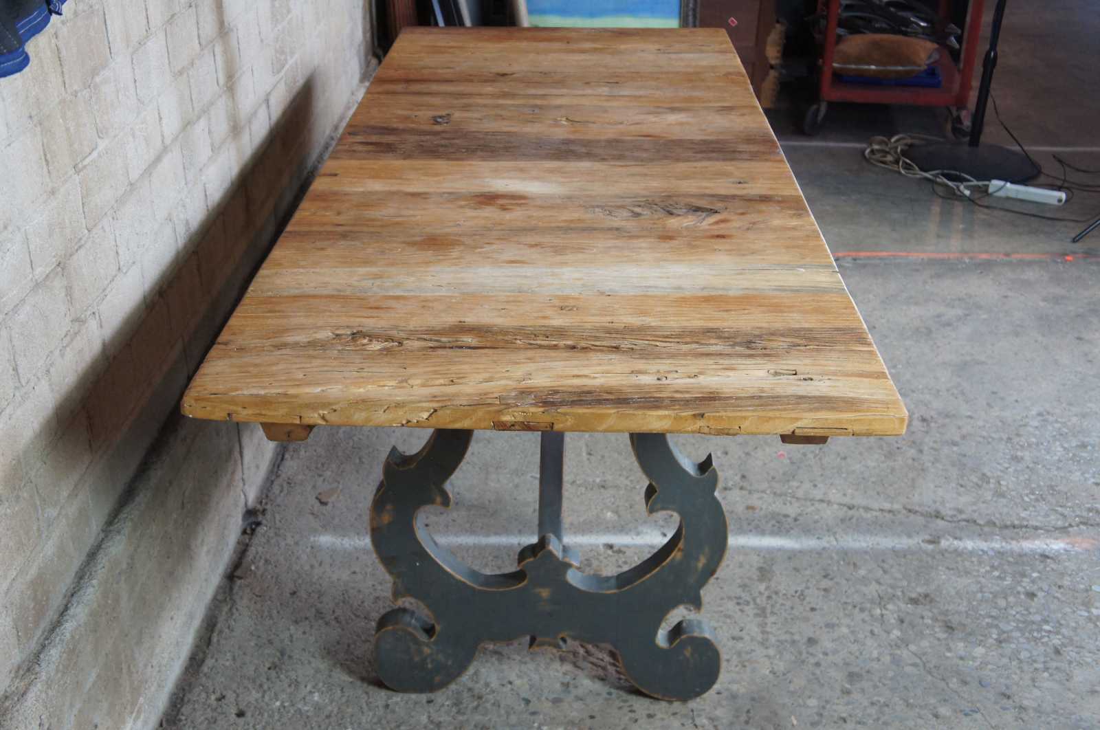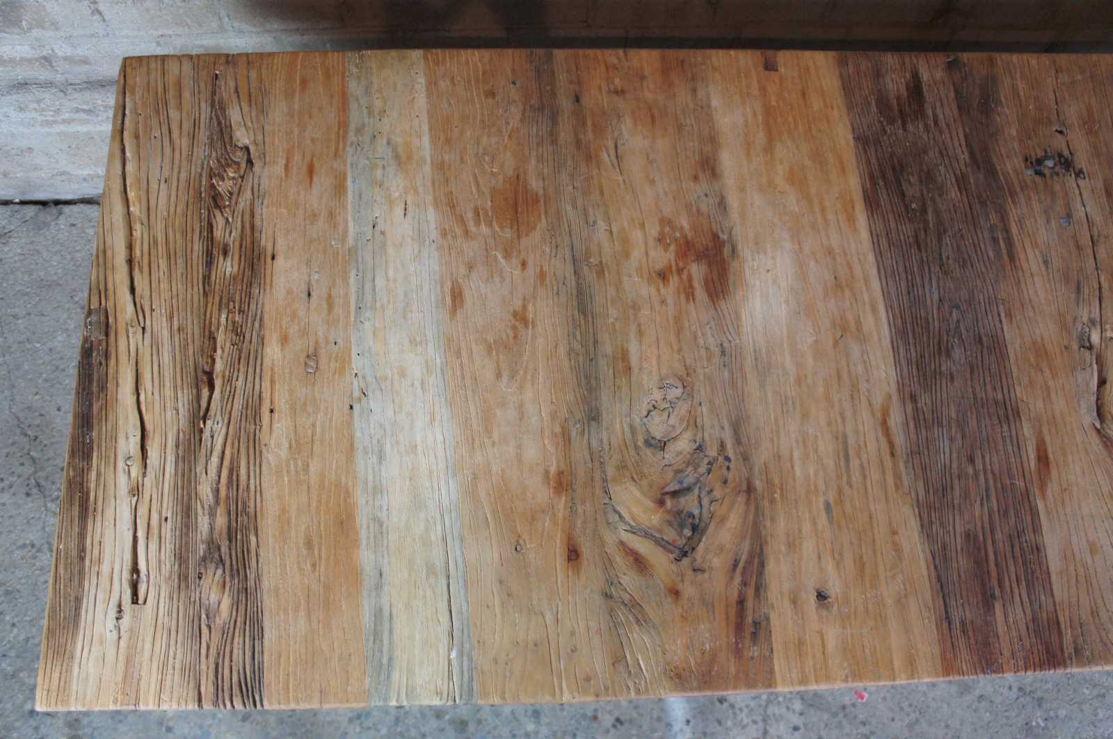 20th century custom made Chinese plank dining table with old world design and painted base.