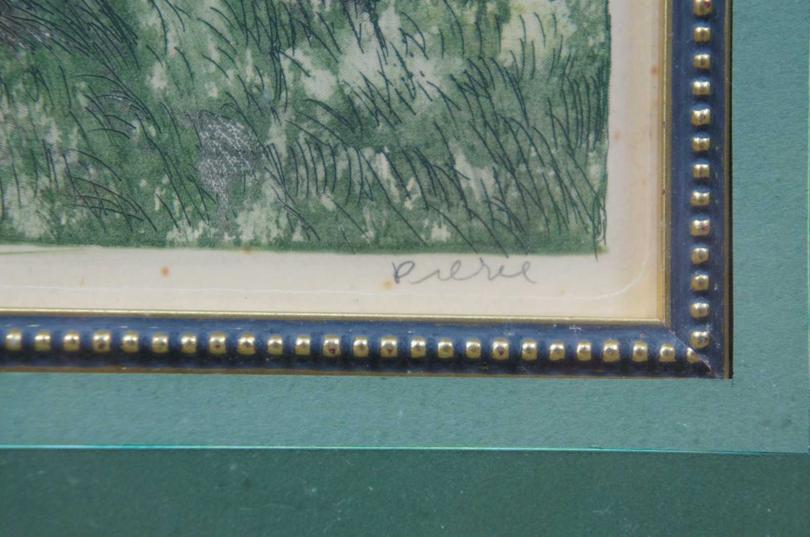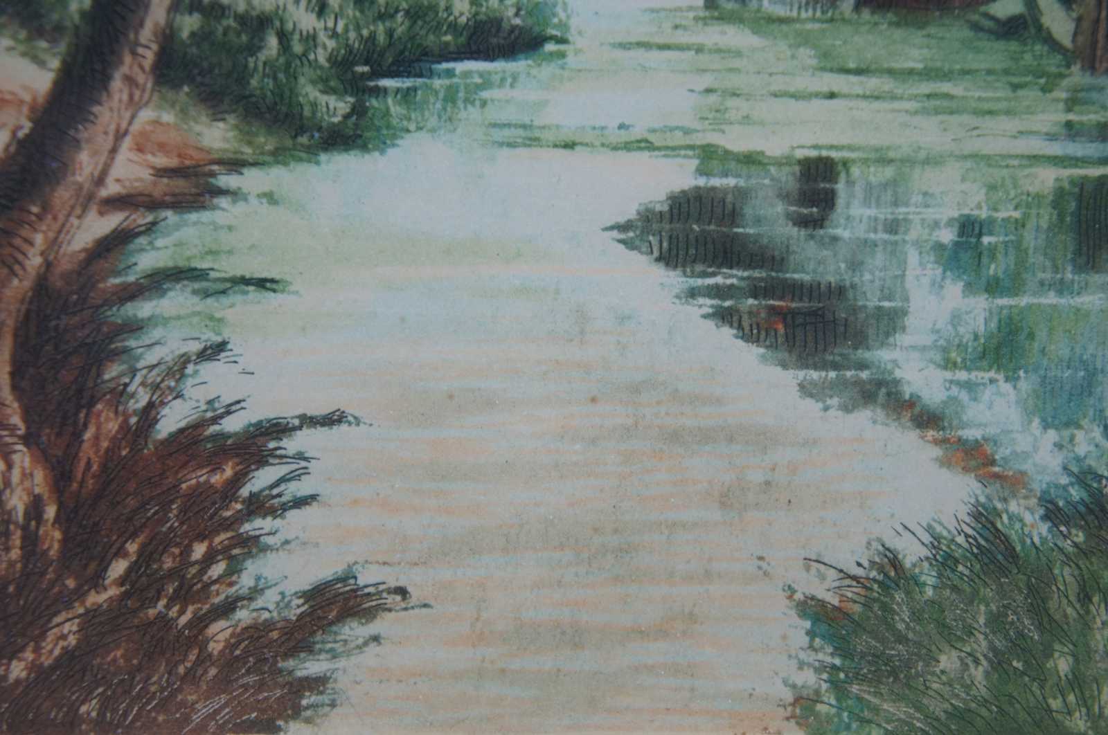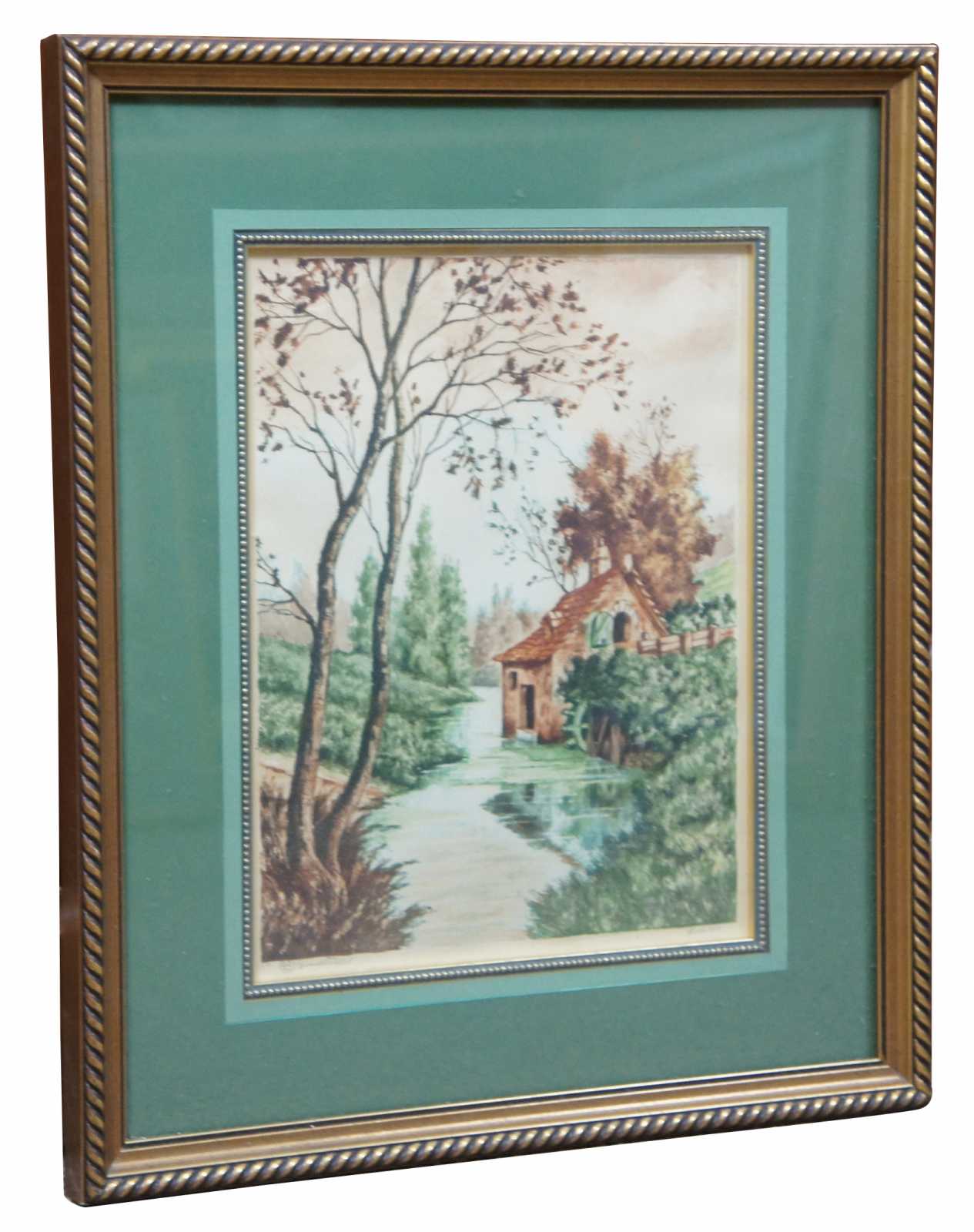 Circa 1930s Waterwheel ethching by Paris Etching Society. Signed Pierre lower right.
