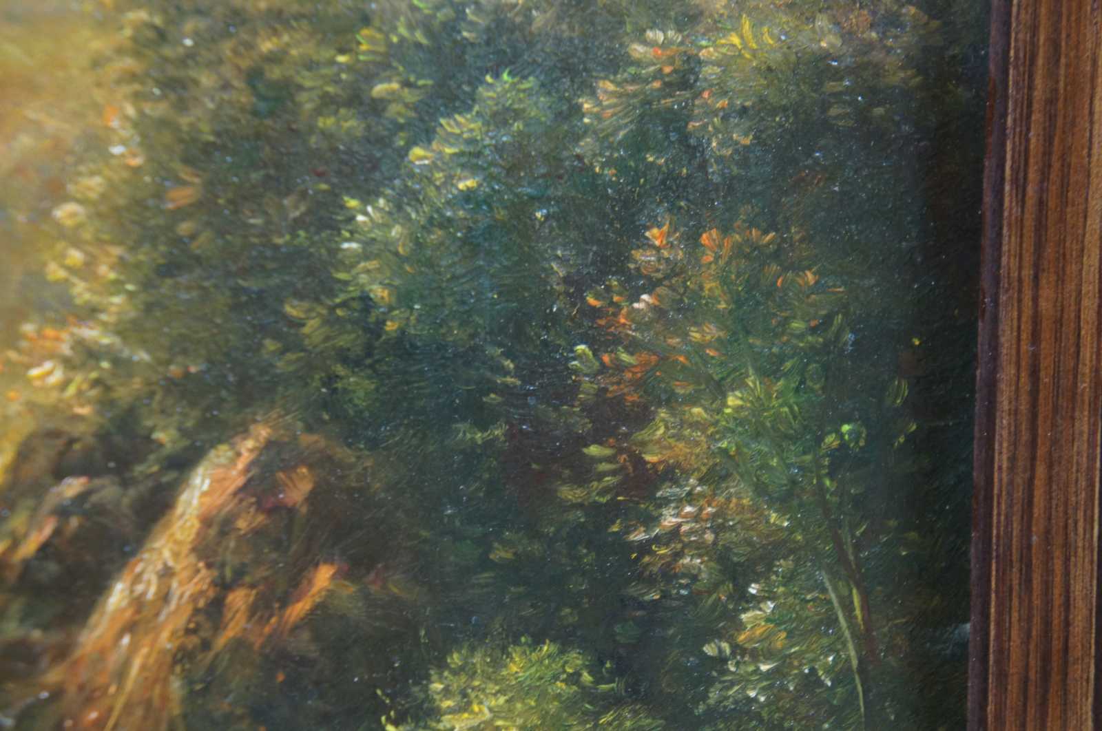 A lovely antique European oil on board. Features two figures and cattle in a rural landscape with a castle or cheateau in the background.