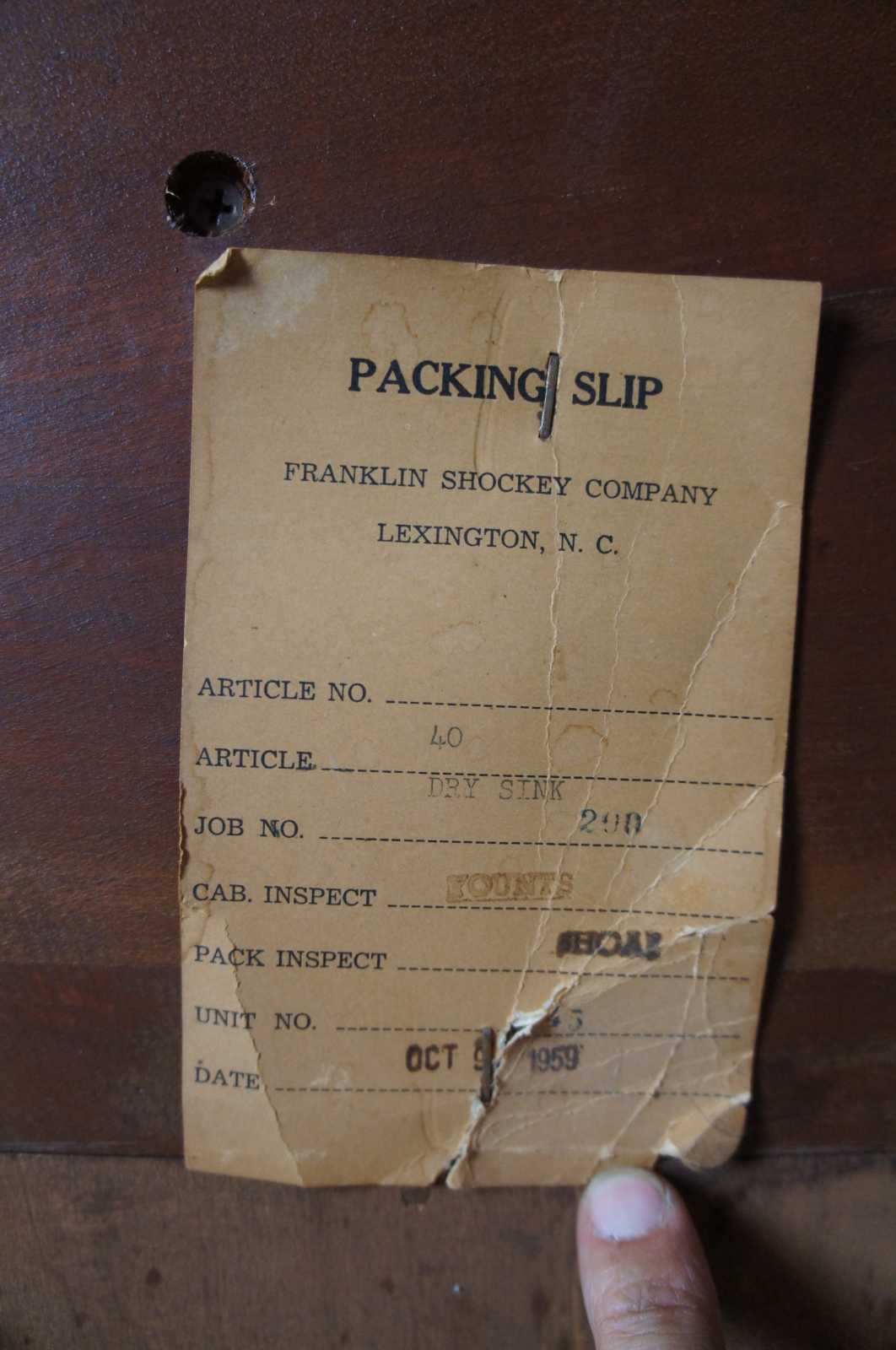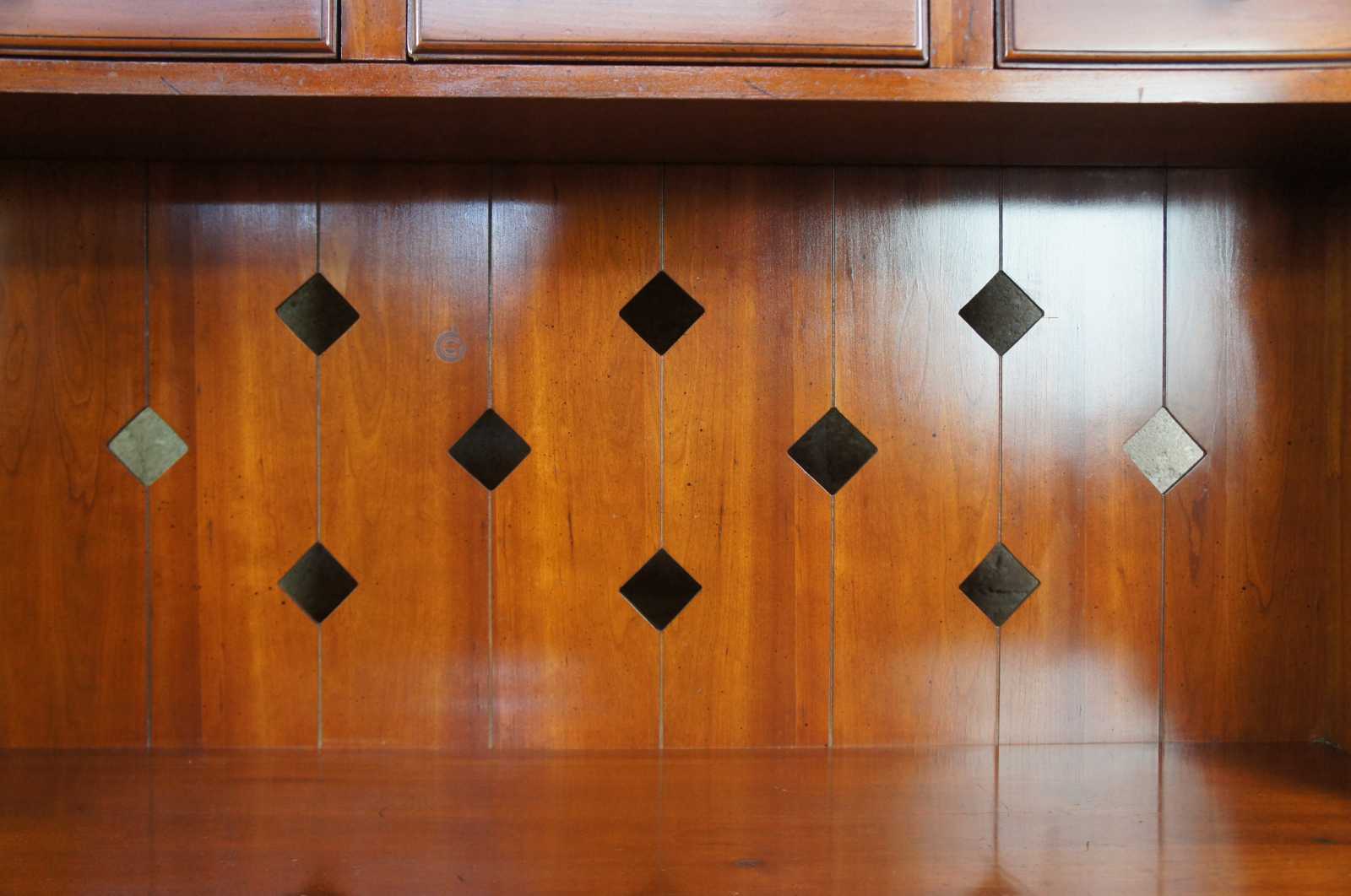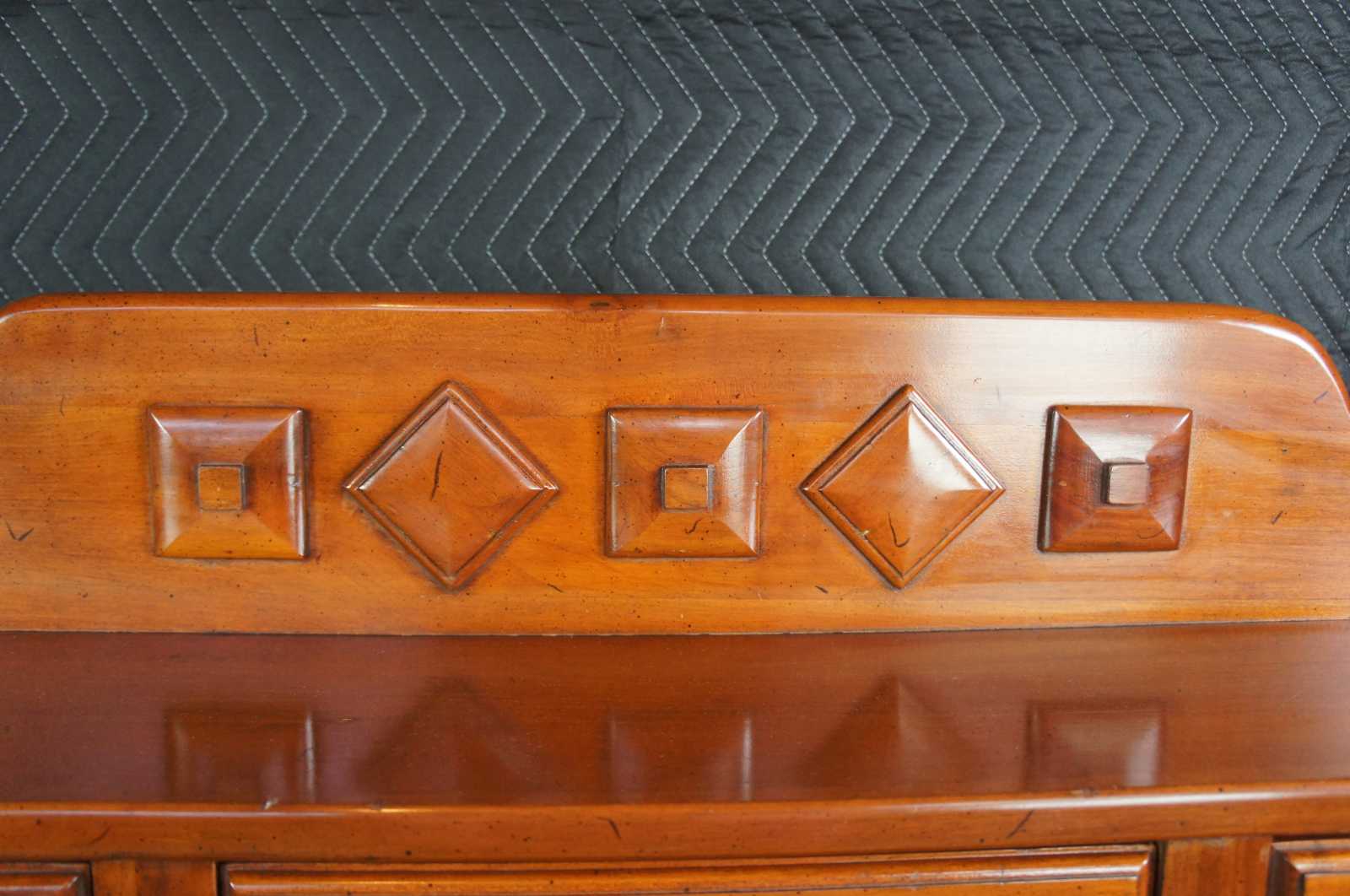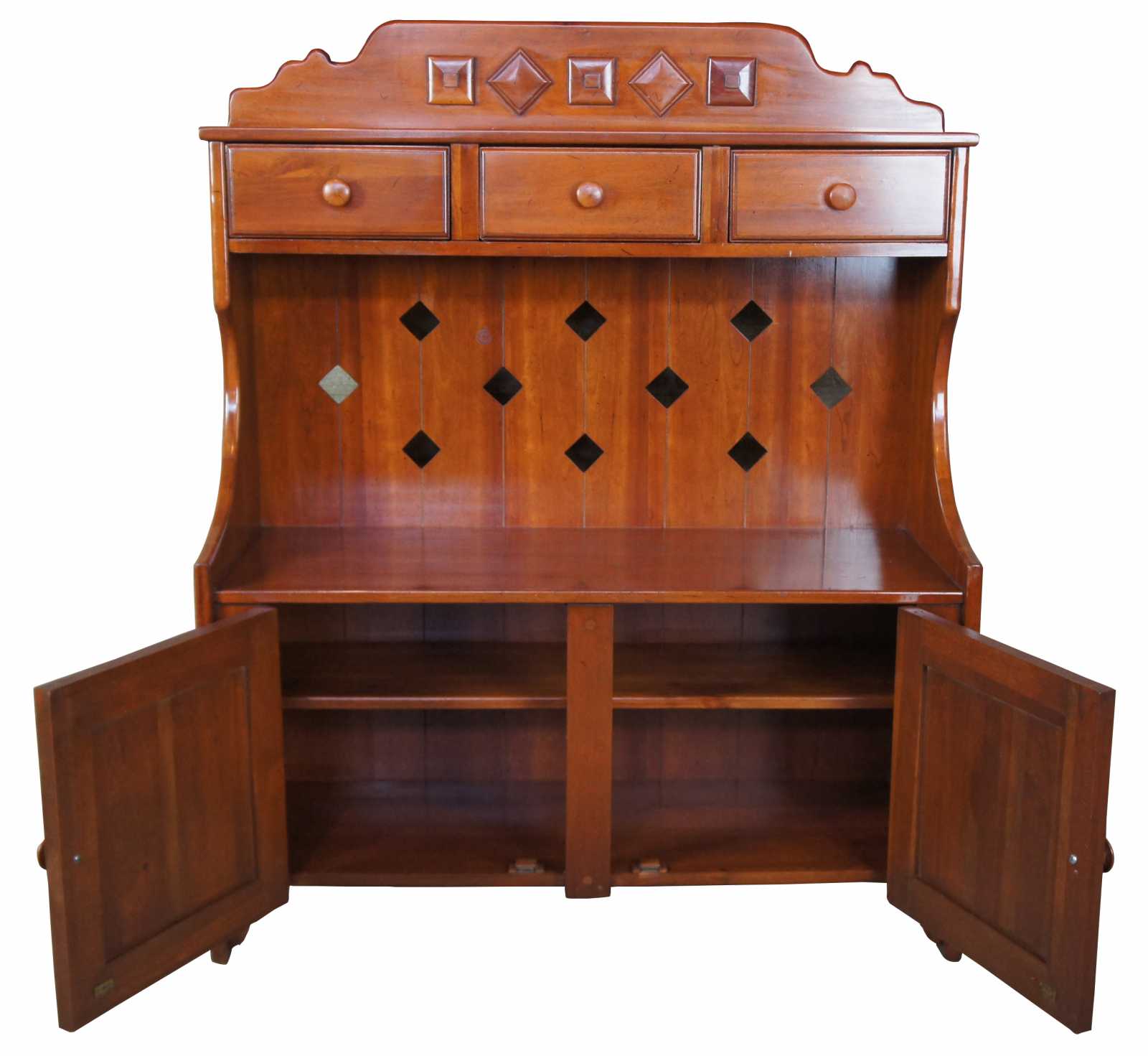 1959 Franklin Shockey hand burnished pine dry sink or bucket bench. Made from pine, with three drawers and lower cabinet. Features diamond cut outs along back and shaped carving on the upper back splash. Marked Franklin Shockey along the back, Lexington North Carolina.