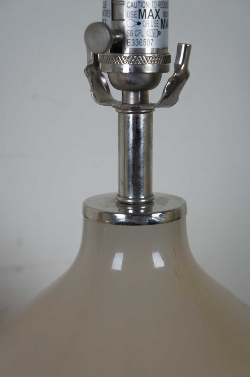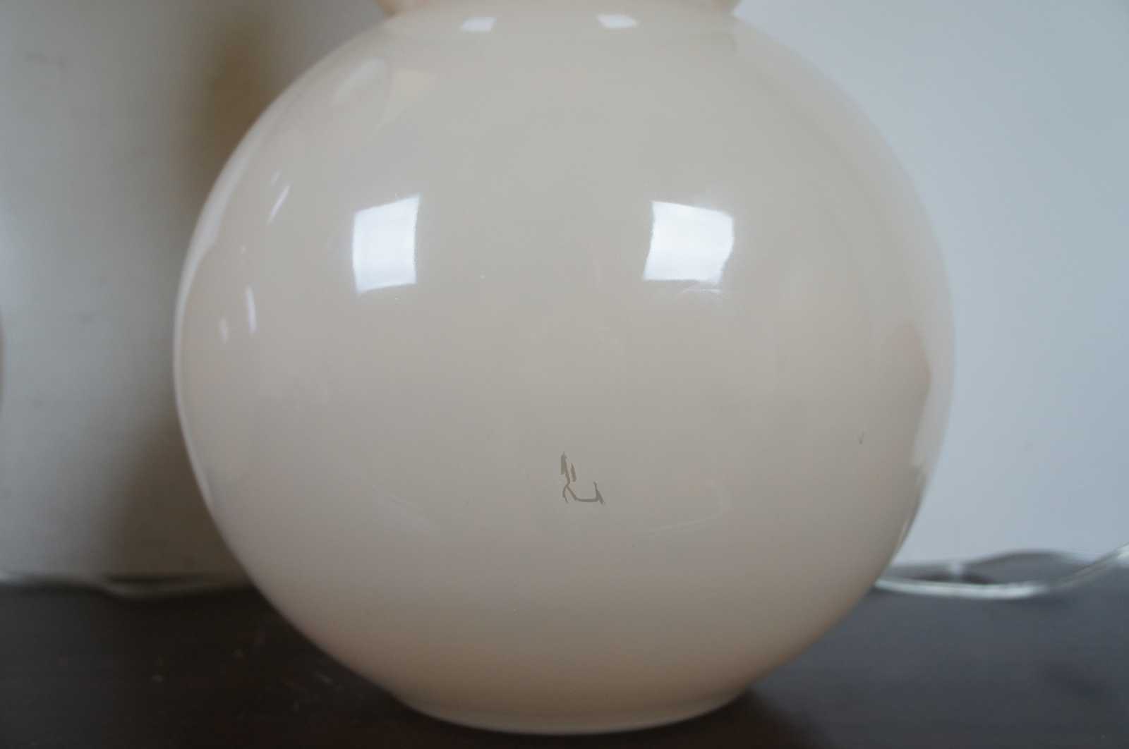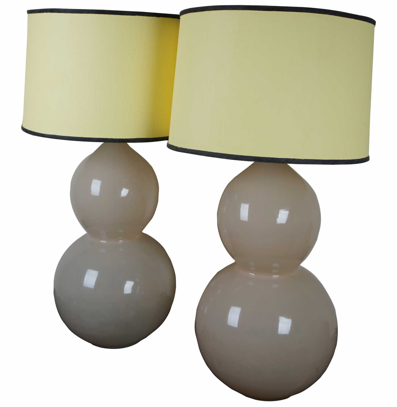 Celeste double gourd shaped glass table lamp pair designed by Suzanne Kasler for Ballard Designs. Shades have been painted yellow. Discounts availabe for those who don't need the shades.