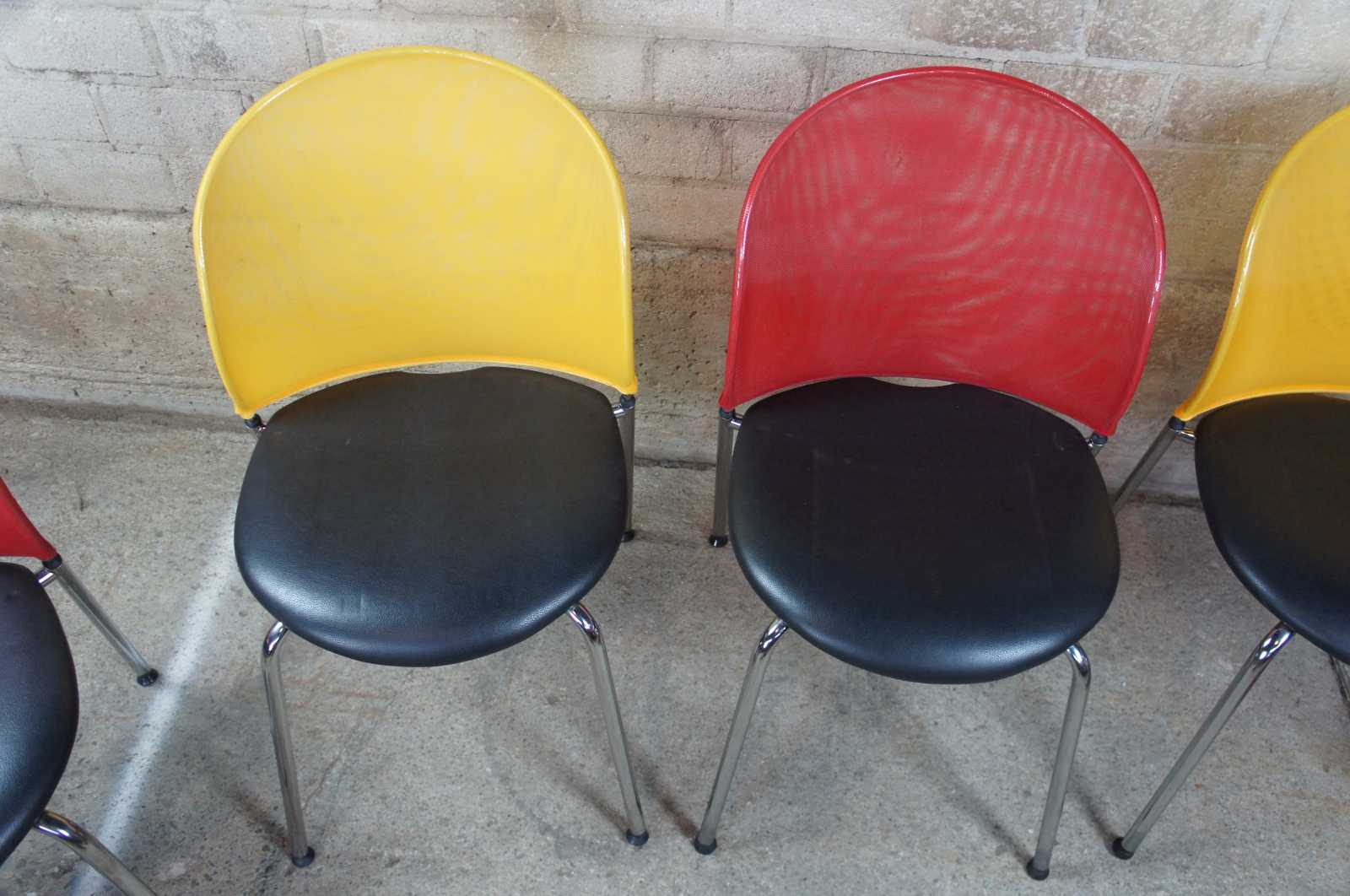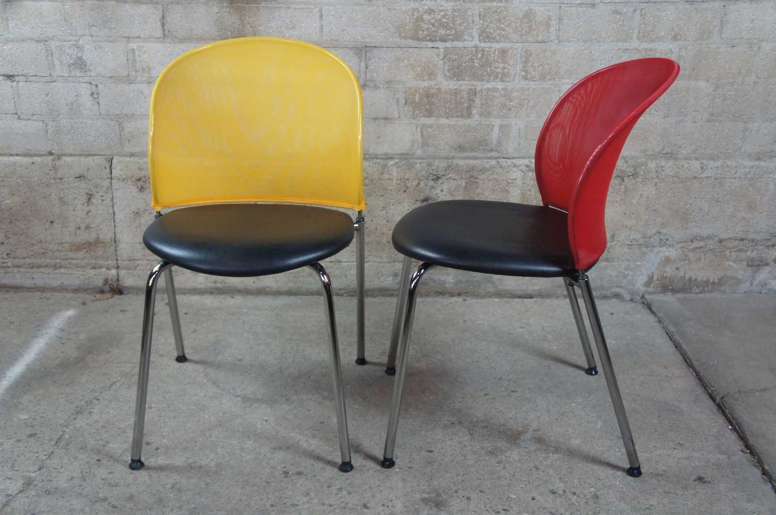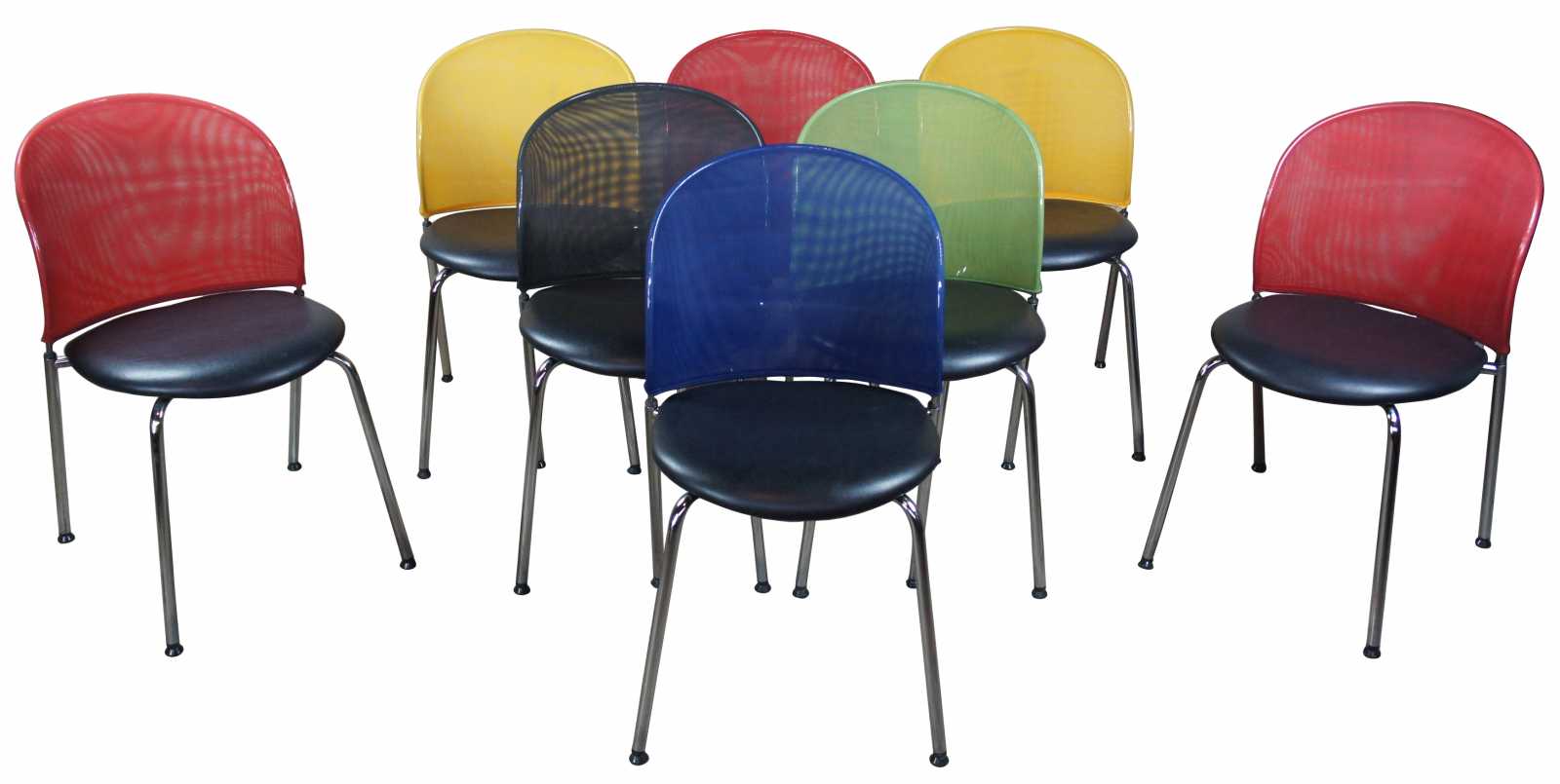 Optimally shaped, elastic back with the textile cover. Features netting, polymide seat, extremely comfortable, very stylish, and stackable. Designed by Christoph Hindermann circa 1997.
