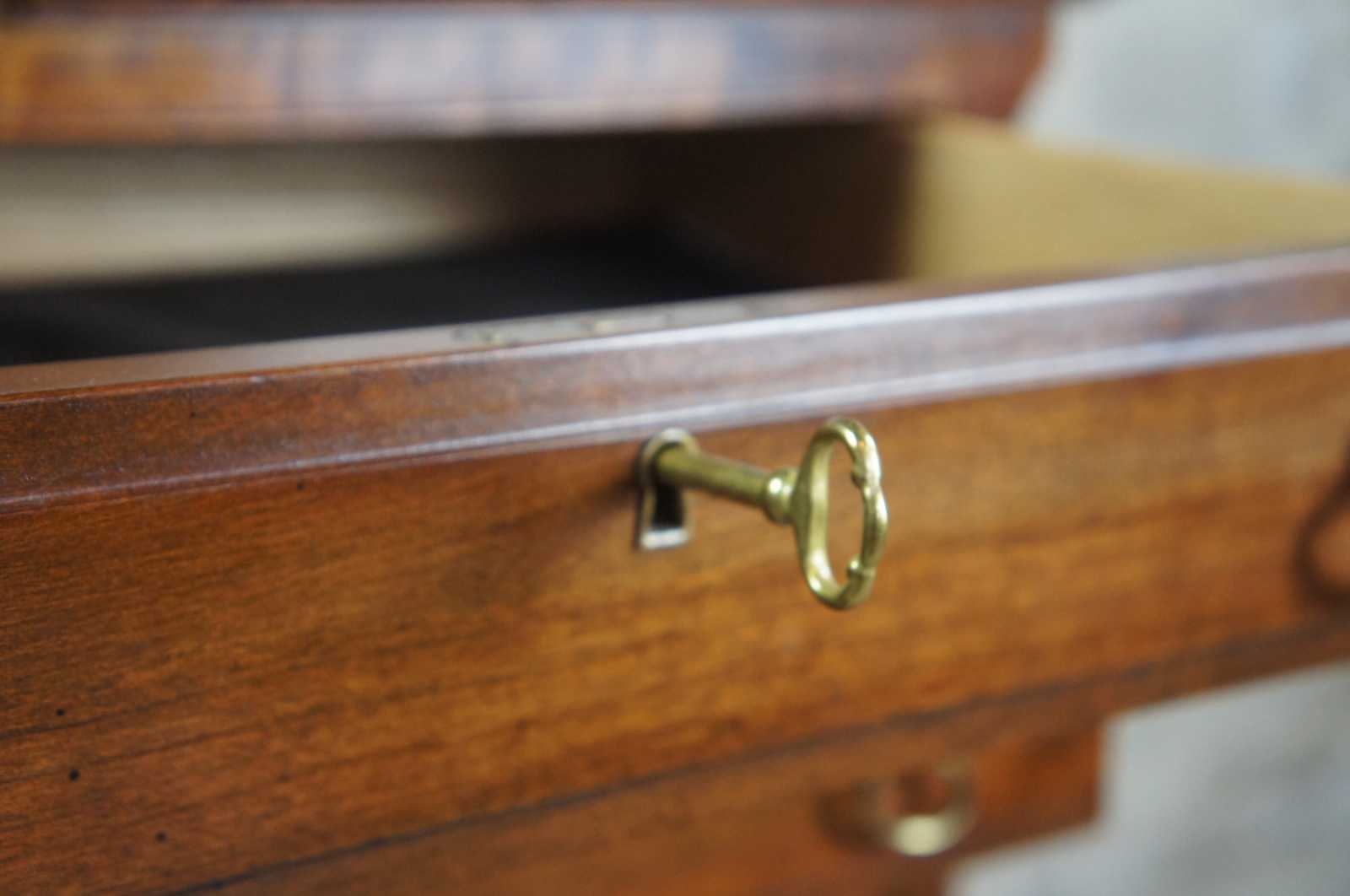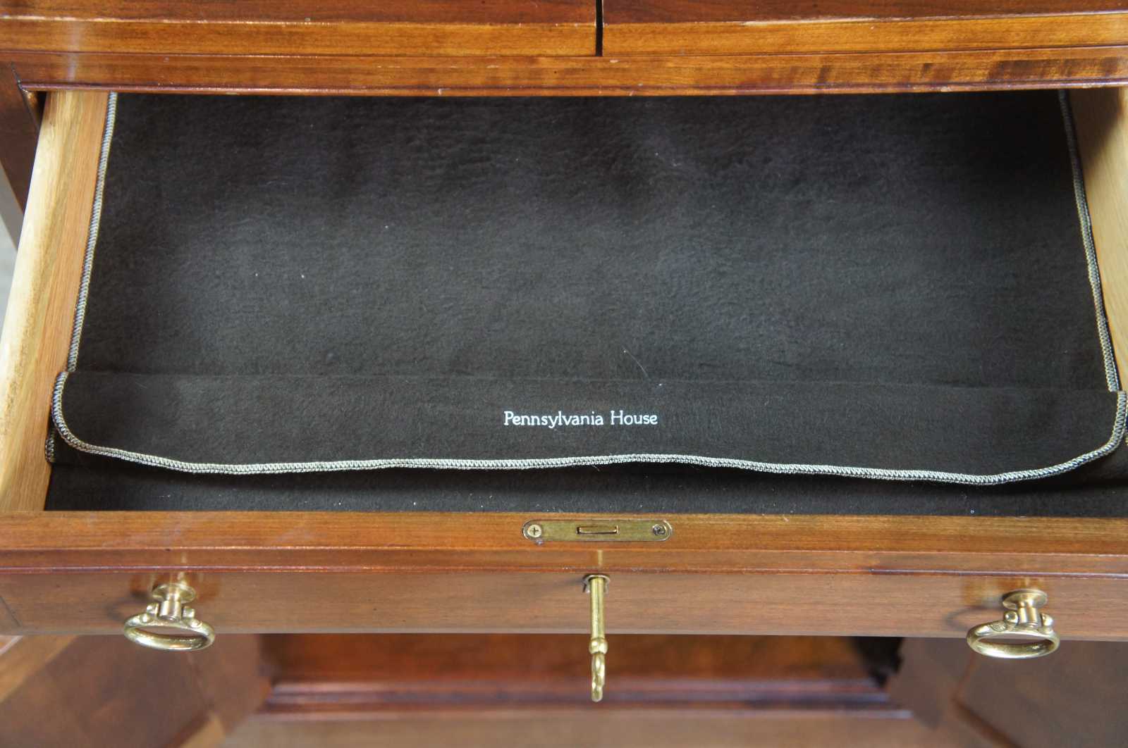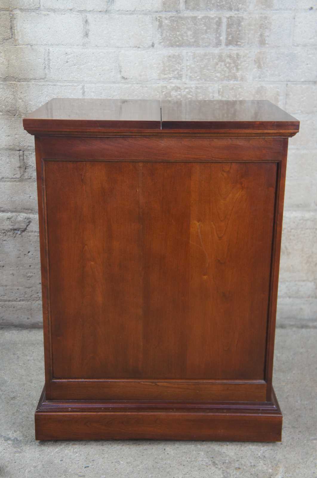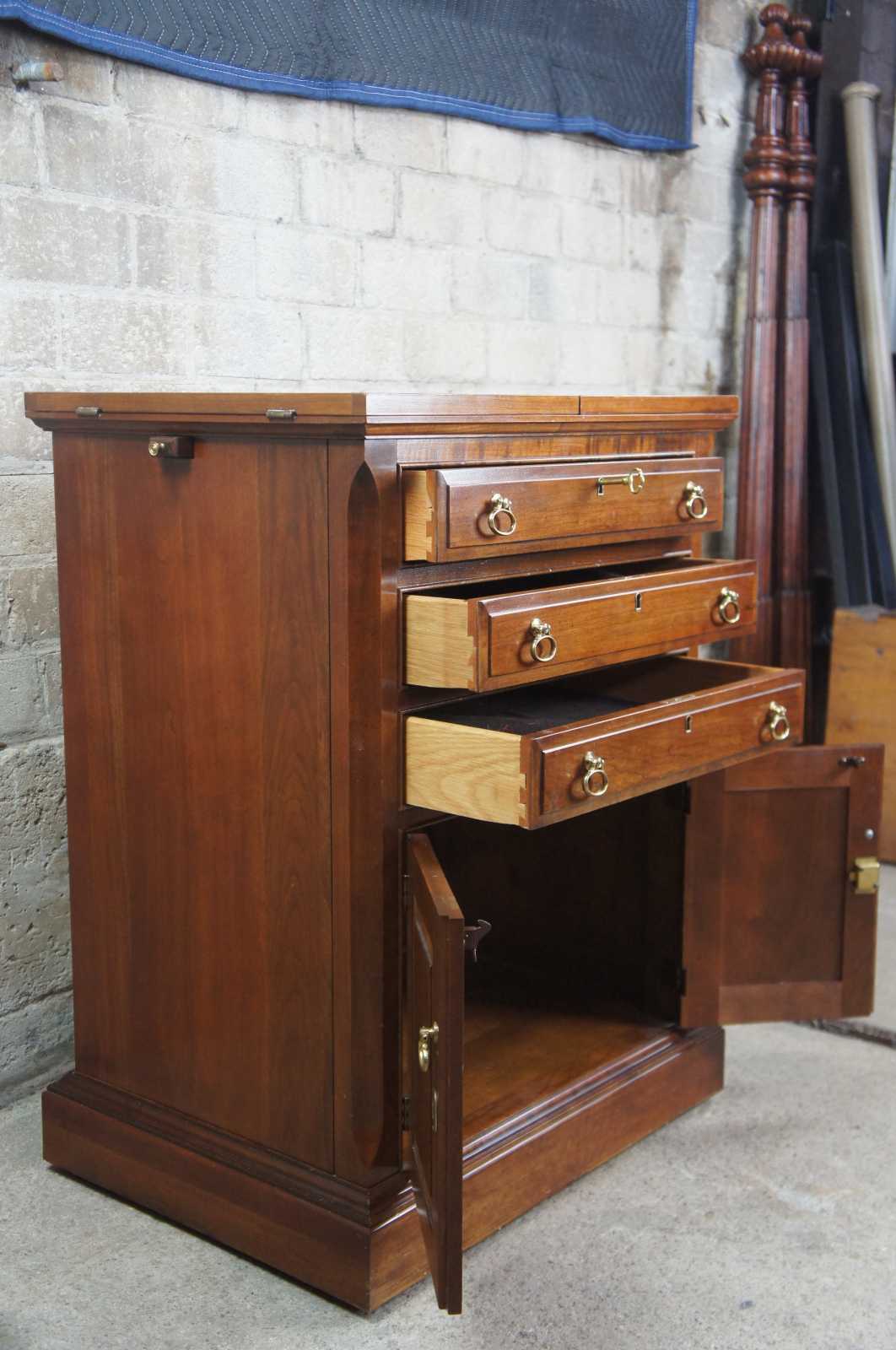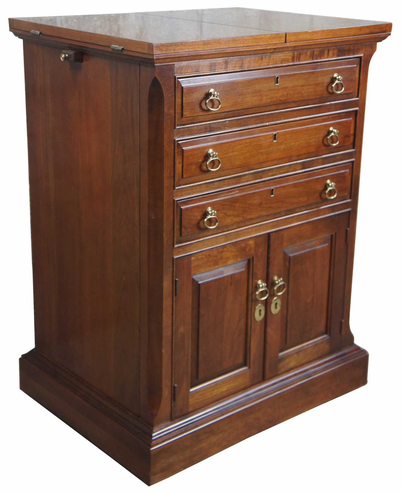 Circa 1970s Penn. House server or bar cabinet. Made from solid cherry with three drawers, lower cabinet and flip top. Features two cloth lined drawers, a key and brass hardware. Finished on all sides.
