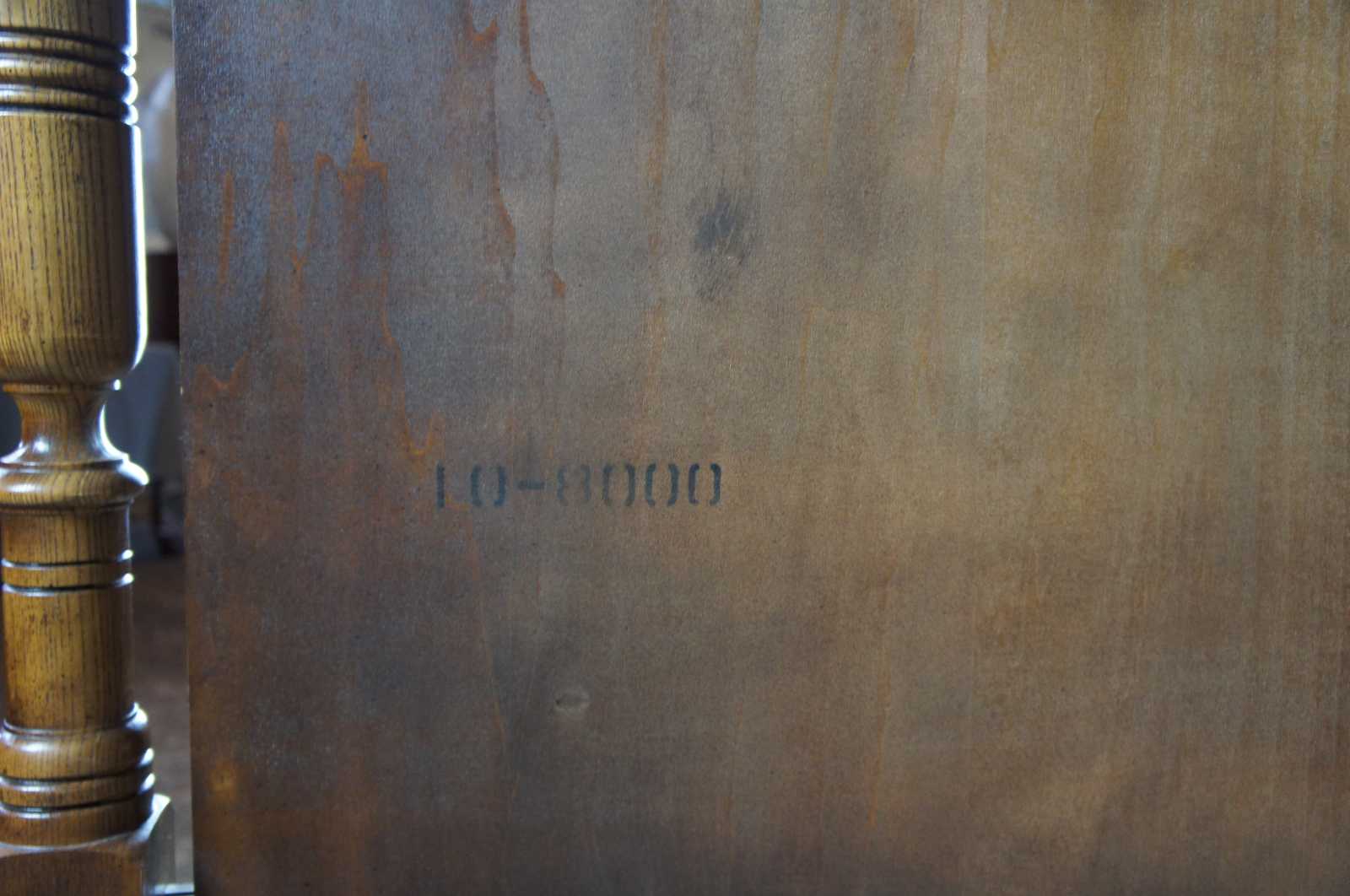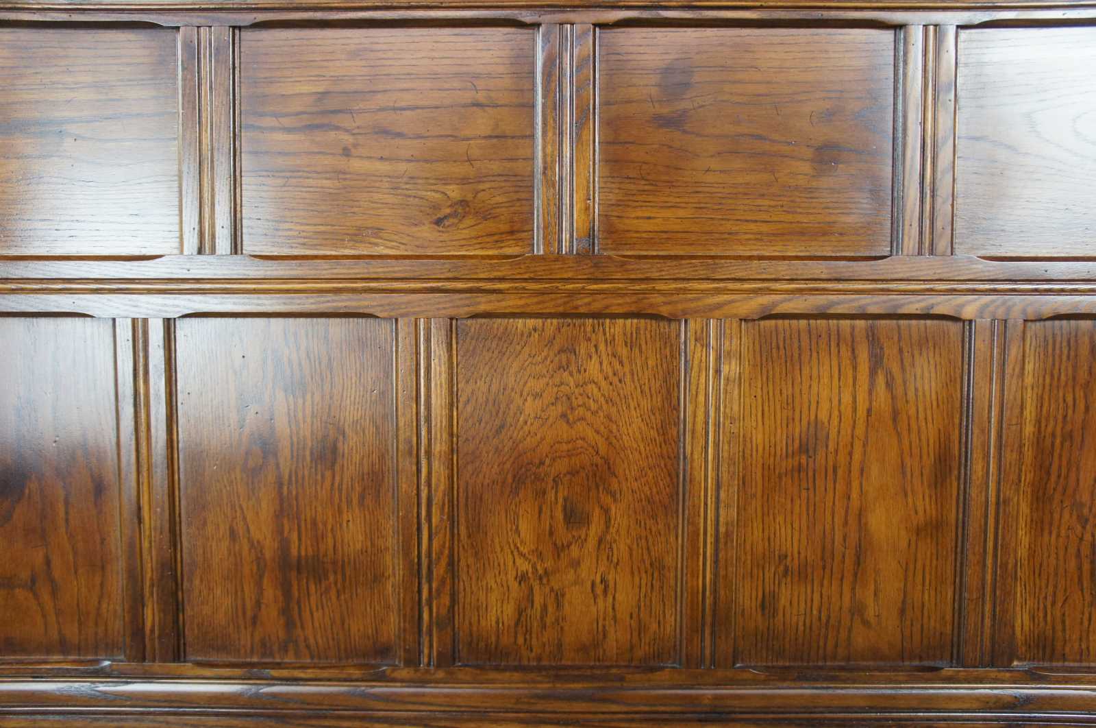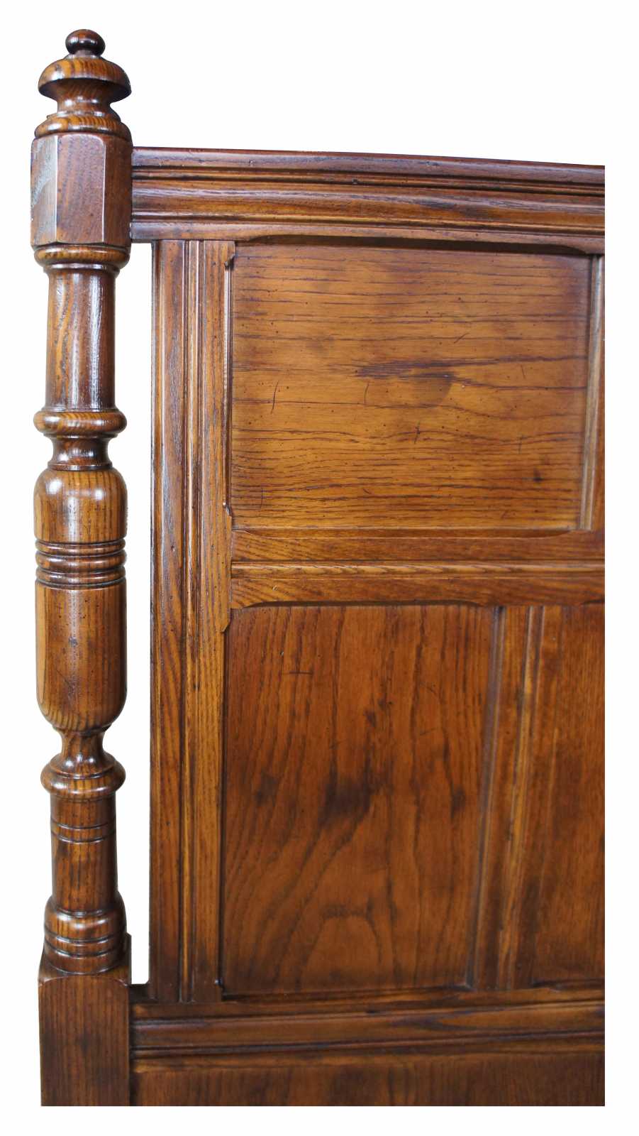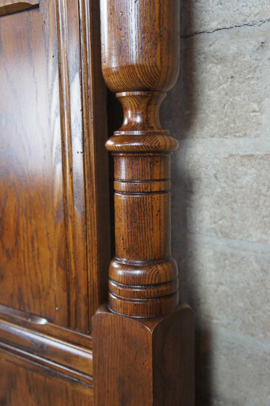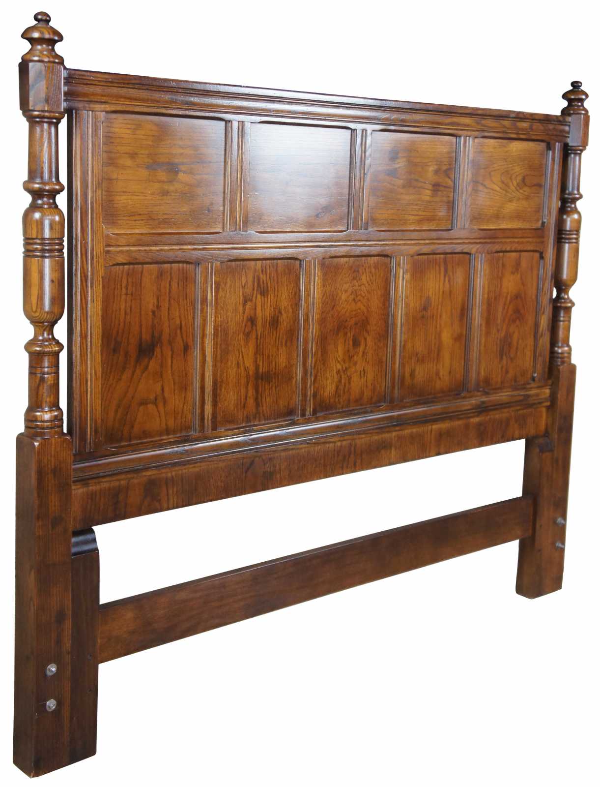 1979 Henredon oak queen or full sized headboard. Features 18th century design with turned ballister posts and paneled back.