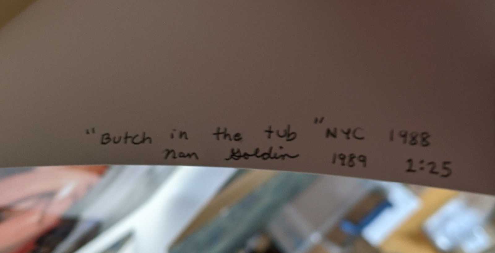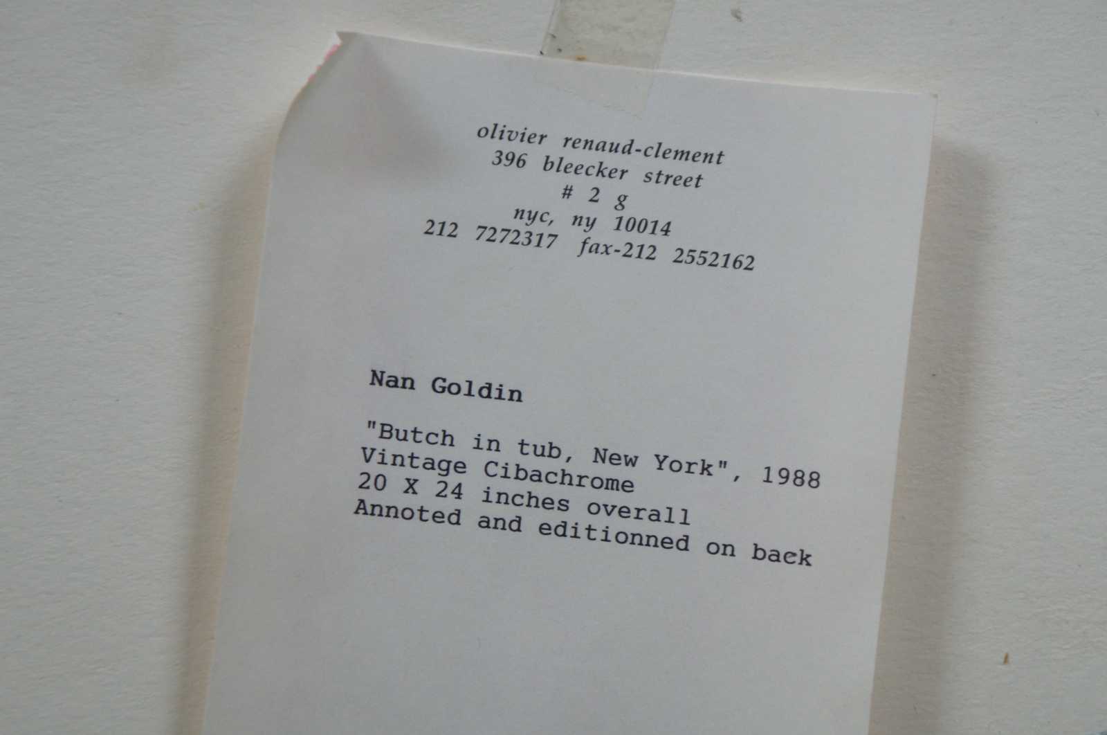 Nan Goldin's images of her friends: drag queens, drug addicts, lovers and family -- are portraits that, create a document a generation. Goldin once said that her work ""derives from the snapshot. It is the form of photography that most closely stands for love.""