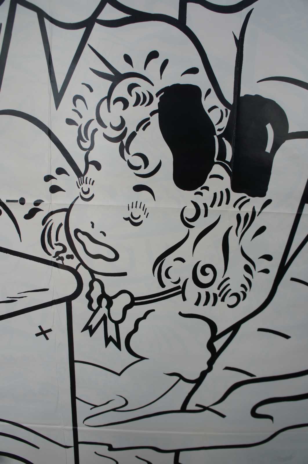 Since the 1970s Steve Gianakos has been reveling in sexism, kiddy porn, cheap comics and coloring-book-style renditions of television characters, and is described as serving it all up with irony, tawdry punch lines and visual puns.
