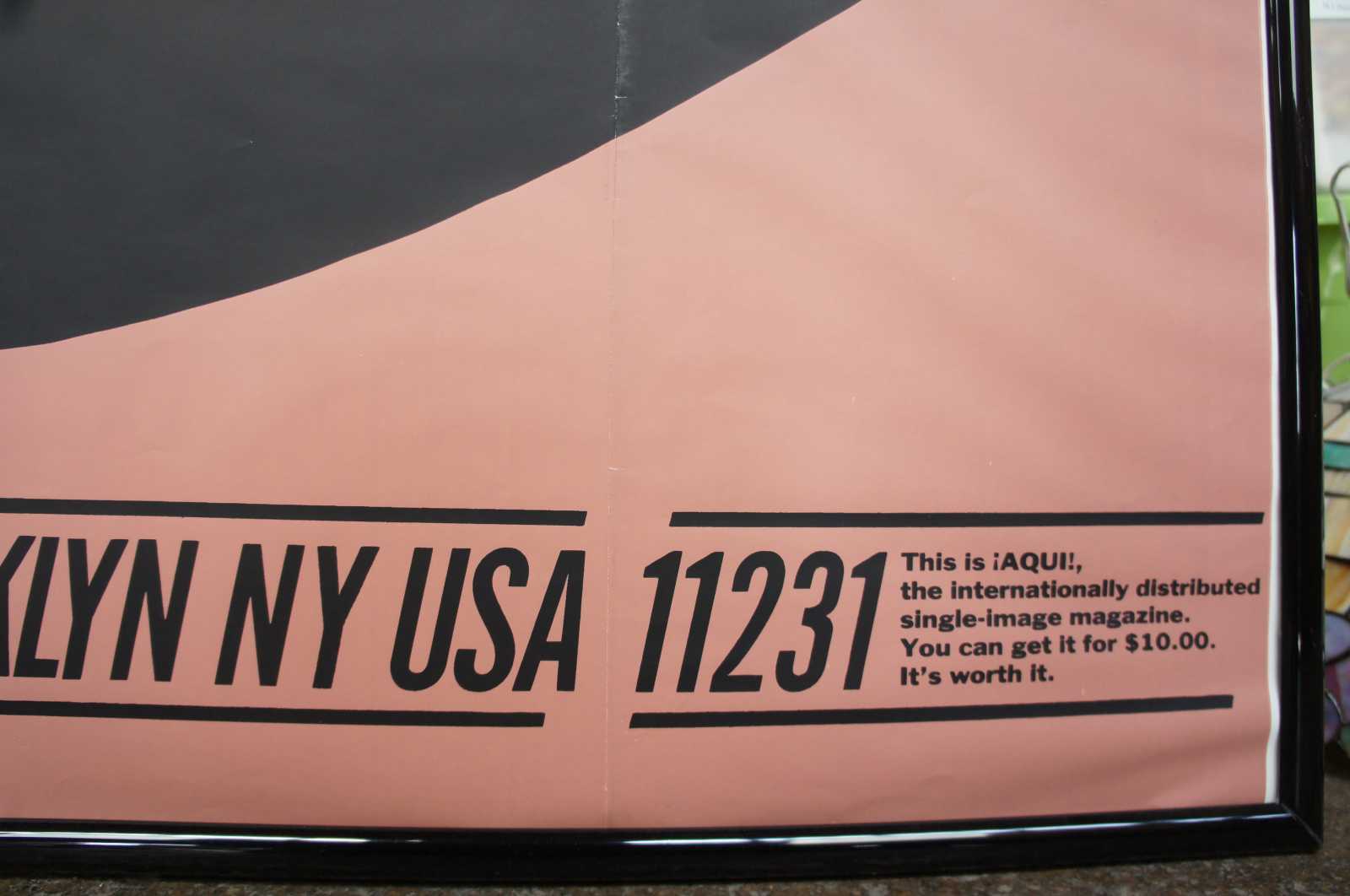 In small print: This is AQUI!, the internationally distributed single image magazine. You can get it for $10.00. Its worth it.