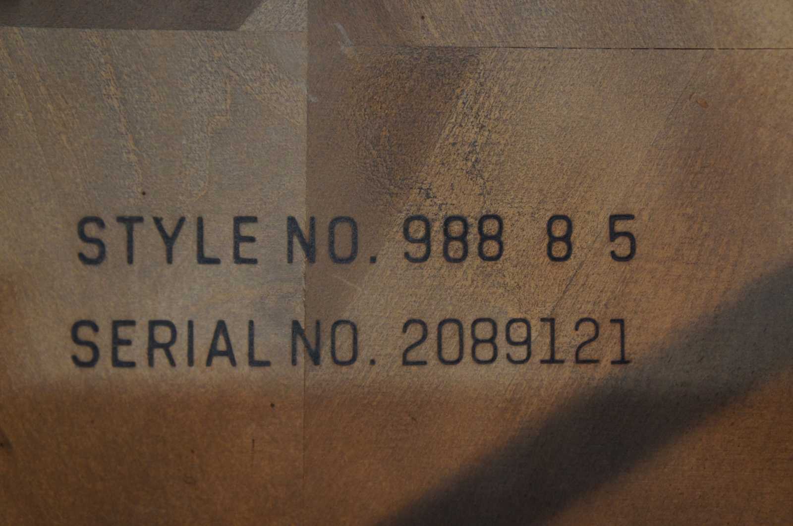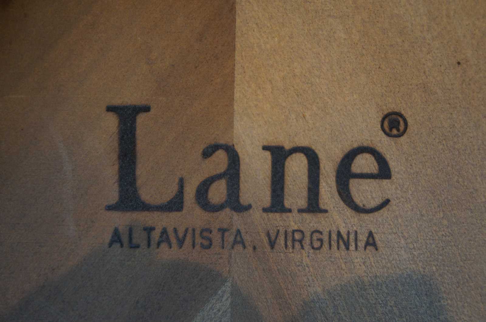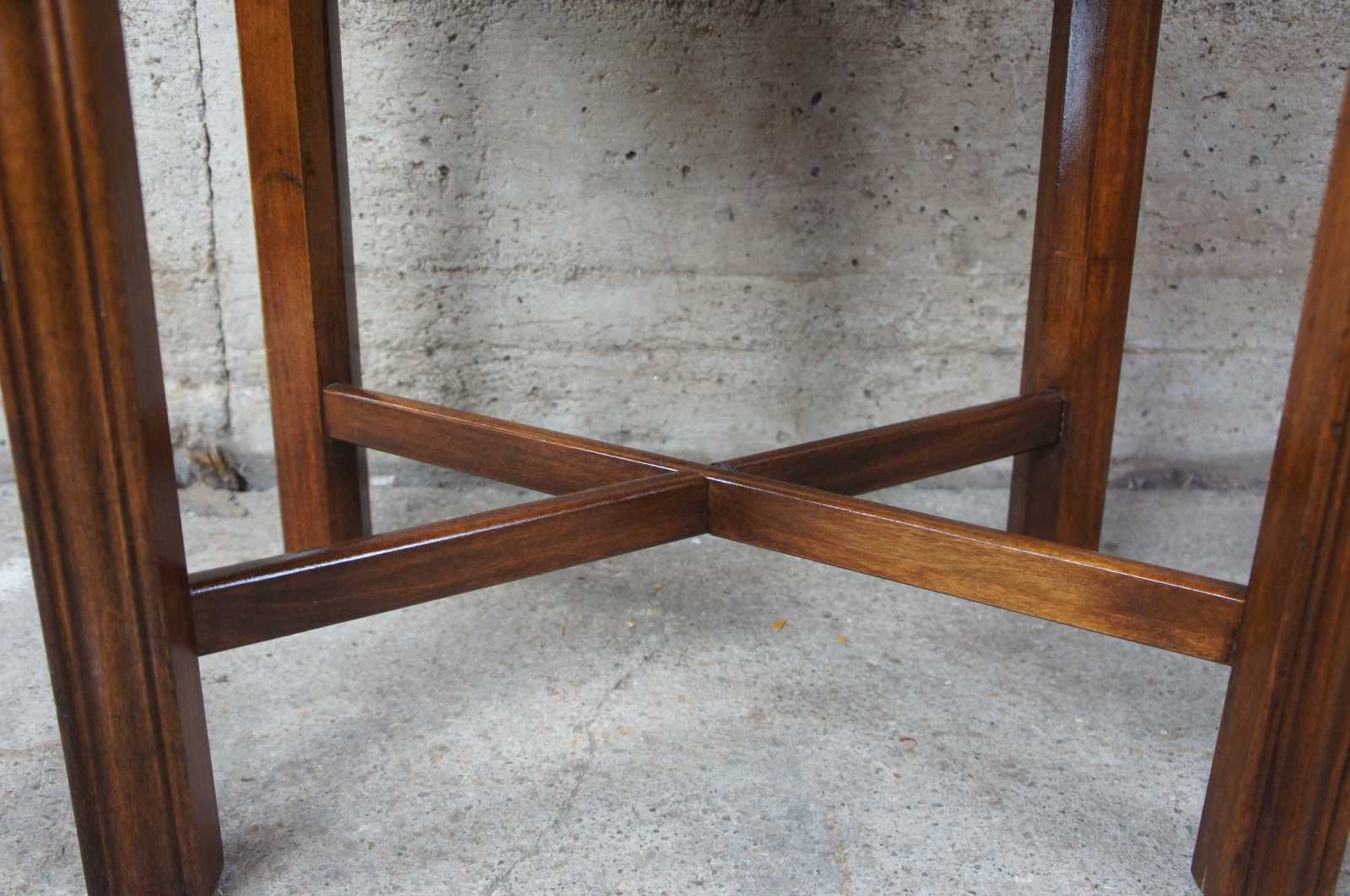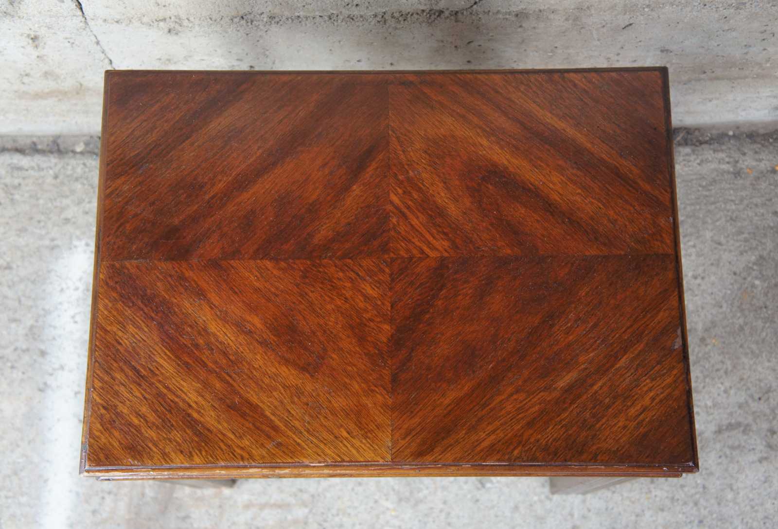 Chinese chippendale side table by Lane Furniture, circa 1980, Altavista Virginia. Made from walnut with a bookmatched veneered top over fluted legs connected by x stretcher.