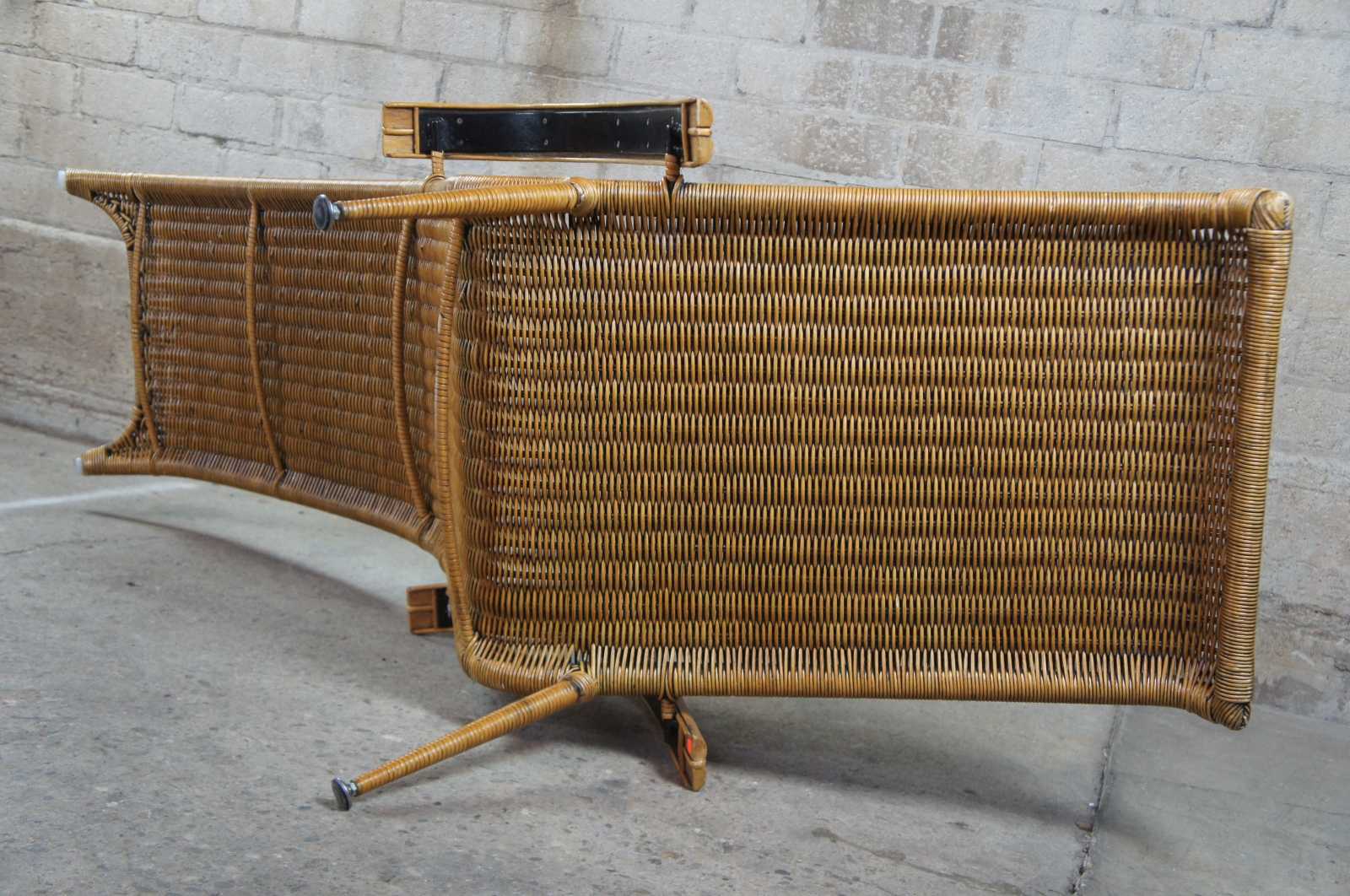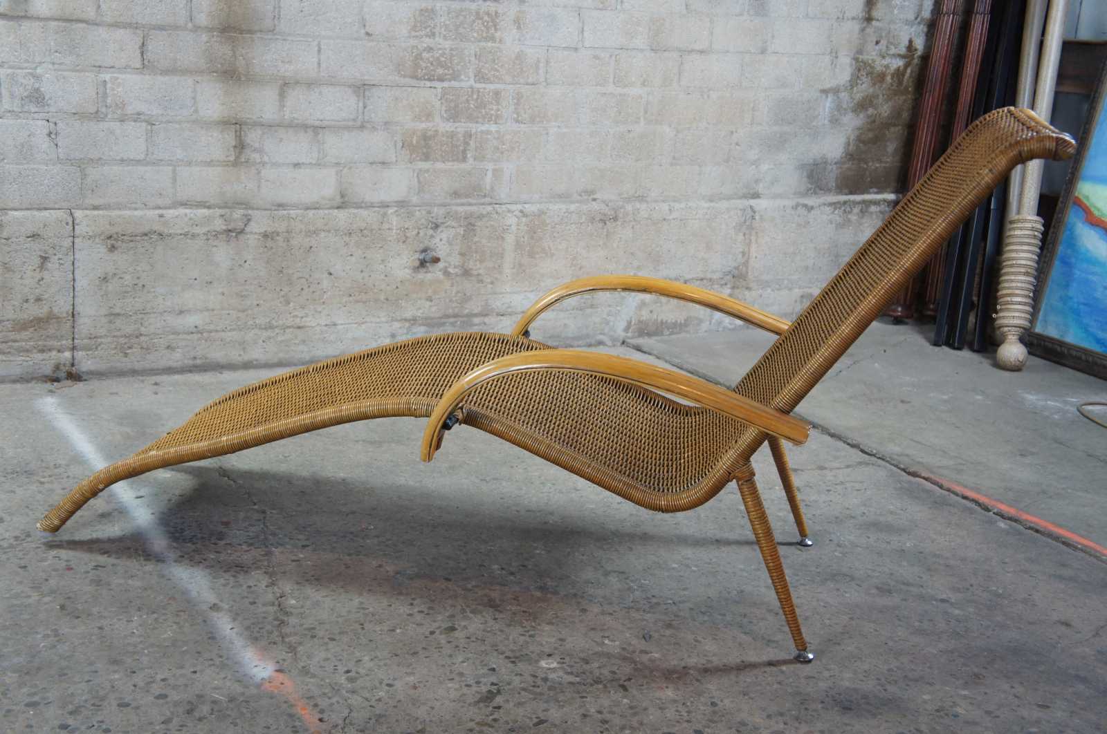 Mid century modern Bauhaus Italian cane and bamboo chaise lounge chair. The perfect fit to a minimalist or boho chic inspired space.